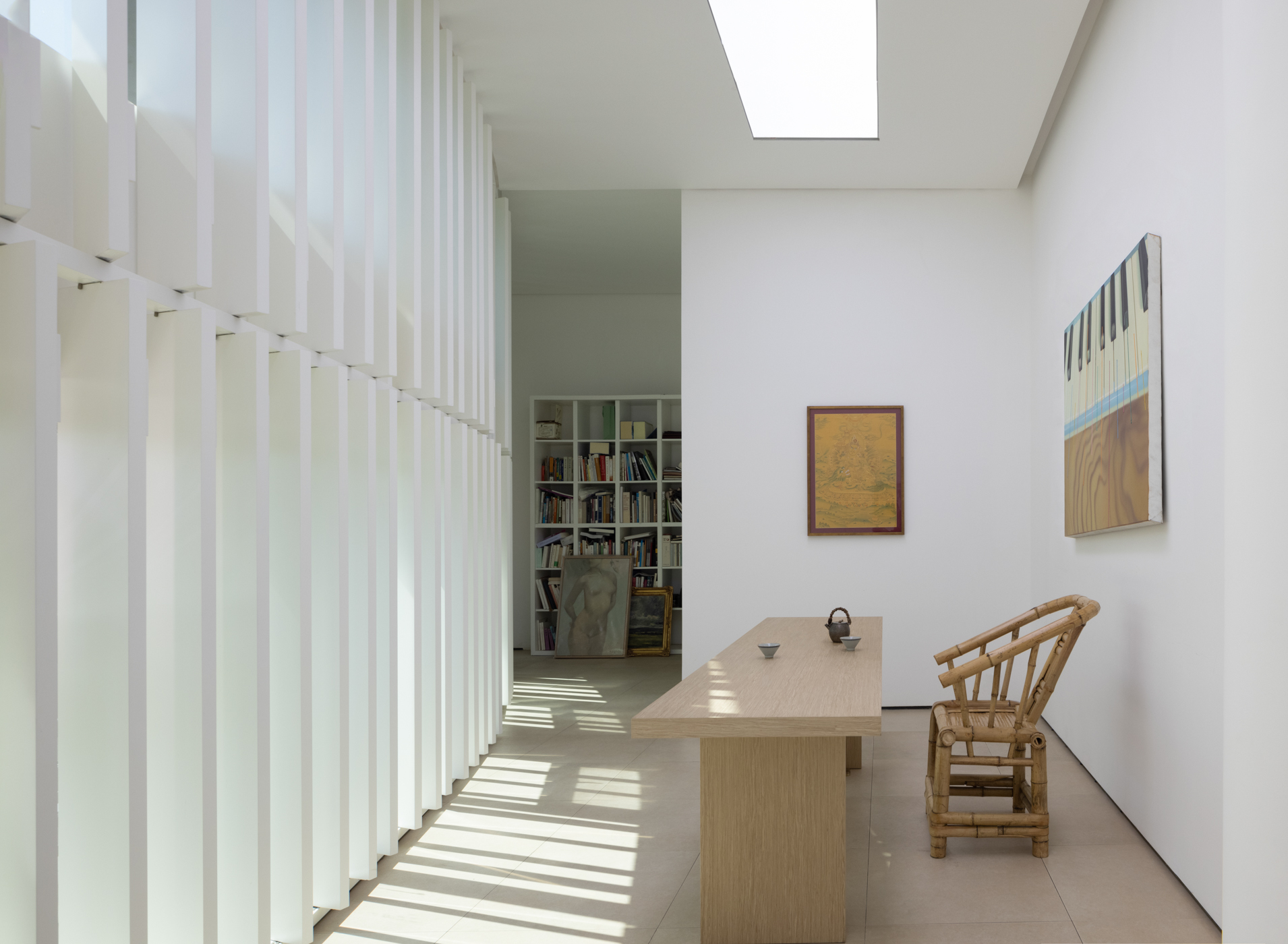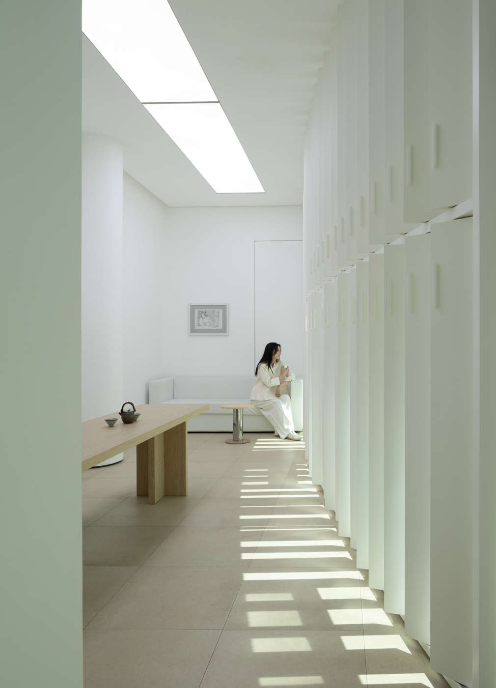사천 예술의 중심지인 청두는 아티스트가 모여드는 장소이다. 10년 넘게 청두의 예술 플랫폼 역할을 활발히 수행한 쑤이웨 미술관은 80년대에 지어진 오피스 건물을 리노베이션하여 이전했다. 기존 건축물에 조각처럼 새겨진 새하얀 파사드는 크리스토(Christo)와 장 클로드(Jeanne Claude)의 작품에 영감을 받은 디자인이다. 지역의 역사에 바치는 오마주이자, 청두의 앞날을 기록하길 바라며 계획했다. 새로운 미술관은 기존보다 좁고 긴 복도와 기둥이 많다. 건축가는 땅에서 돋아나 자라나는 대나무를 콘셉트로 오래된 건물에서 새 공간이 자라나는 이번 프로젝트를 디자인했다. 긴 복도는 작품을 감상하는 즐거운 여정이 됐고, 전시 공간은 레이아웃을 조정해 기둥이 눈에 띄지 않도록 다시 태어났다. 새로 계획한 창문에서는 사계절 내내 햇빛과 새소리가 가득할 것이다. 수직 조명, 벤치, 기둥 및 전시 공간도 대나무 형태를 반영해 일관성 있게 계획했다. 큐레이터 사무실은 다목적 공간으로 컬렉션 갤러리, VIP 리셉션, 차 마시는 공간 등으로 사용되며, 내부의 대나무 스크린은 중국의 전통 수채화와 같은 투명한 분위기를 낸다.
