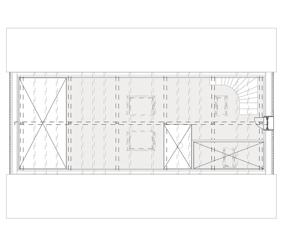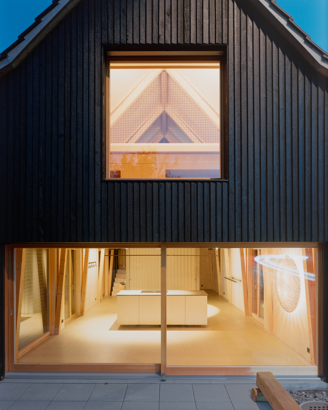 매스나 지붕 모양은 기존의 헛간 형태에서 크게 벗어나지 않았지만, 외벽에는 일본의 야키스기(Yakisugi) 기법을 적용한 전나무 패널을 새로 설치했다. 나무판자의 패널을 고열로 가공한 이 기법은 내구성을 크게 향상하므로, 이 집에서 몇 세대가 사는 동안에도 끄떡없을 것이다. 사생활 보호와 채광 조절을 위해 외부로 면하는 창문이 있는 건축물의 두 면에는 빛을 조절할 수 있도록 목재 창살로 만든 덧문을 계획했다.