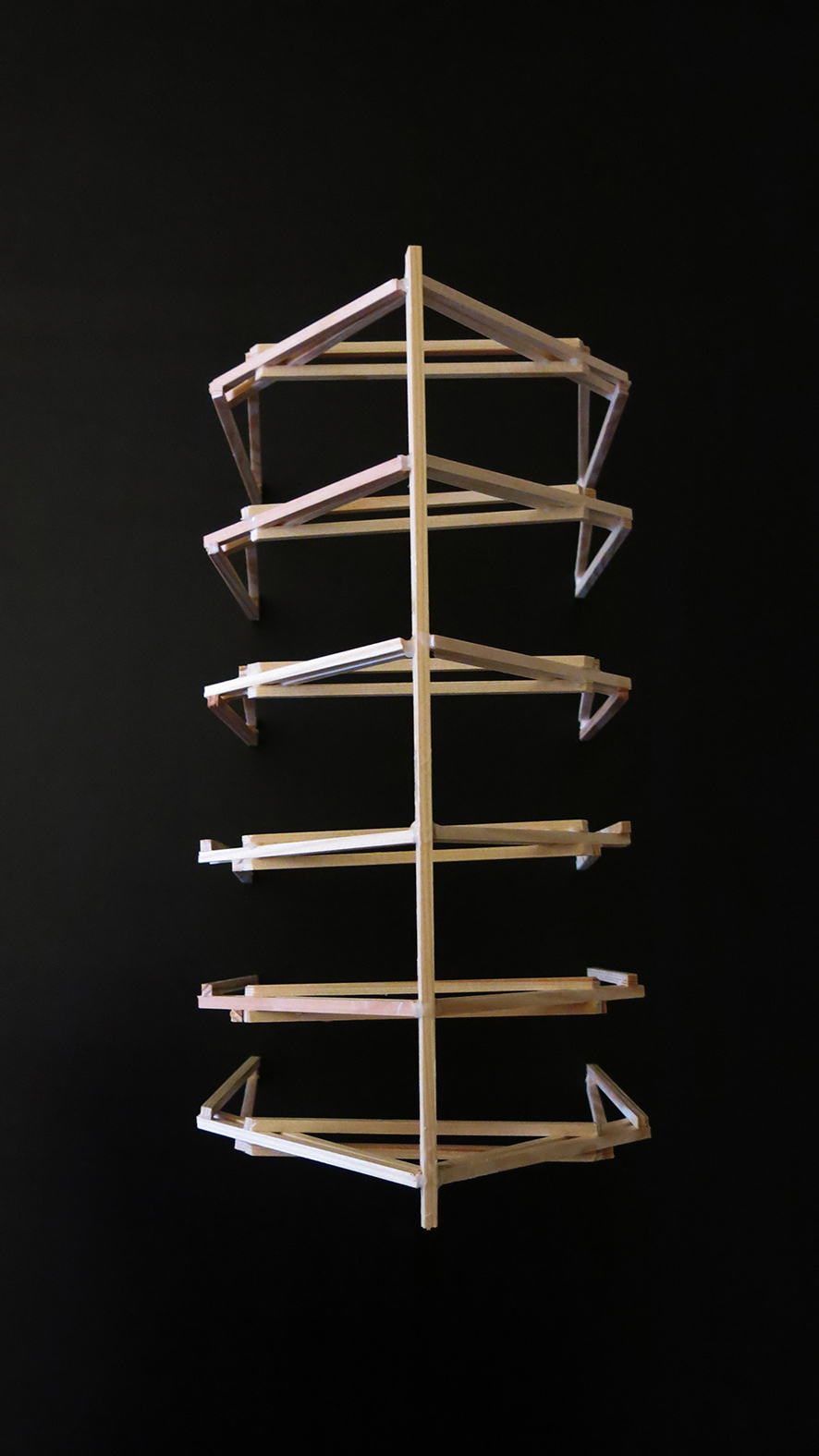 완성된 건축물은 지하에서부터 최상층까지 하나로 연결된 공간이다. 협소한 부지에 지어지는 미국의 주택 양식 중 하나인 ‘아메리칸 샷건 하우스(American shotgun house)’는 일직선으로 거실, 침실 및 주방이 연달아 나열된 집으로, 현관에서 뒷문까지 일직선으로 총알이 날아갈 수 있다는 아이디어에서 유래되었다. 건축가는 식스 프레임을 수직으로 연결된 아메리칸 샷건 하우스에 비유했다. 외부 창문이 없는 공간은 내부 창문과 그물망을 사용해 내부로 열려 있다. 지하의 작업실에서는 천창을 통해 상부 목조 주택 구조를 바라볼 수 있으며, 지상층과는 개방형 계단을 통해 연결된다.