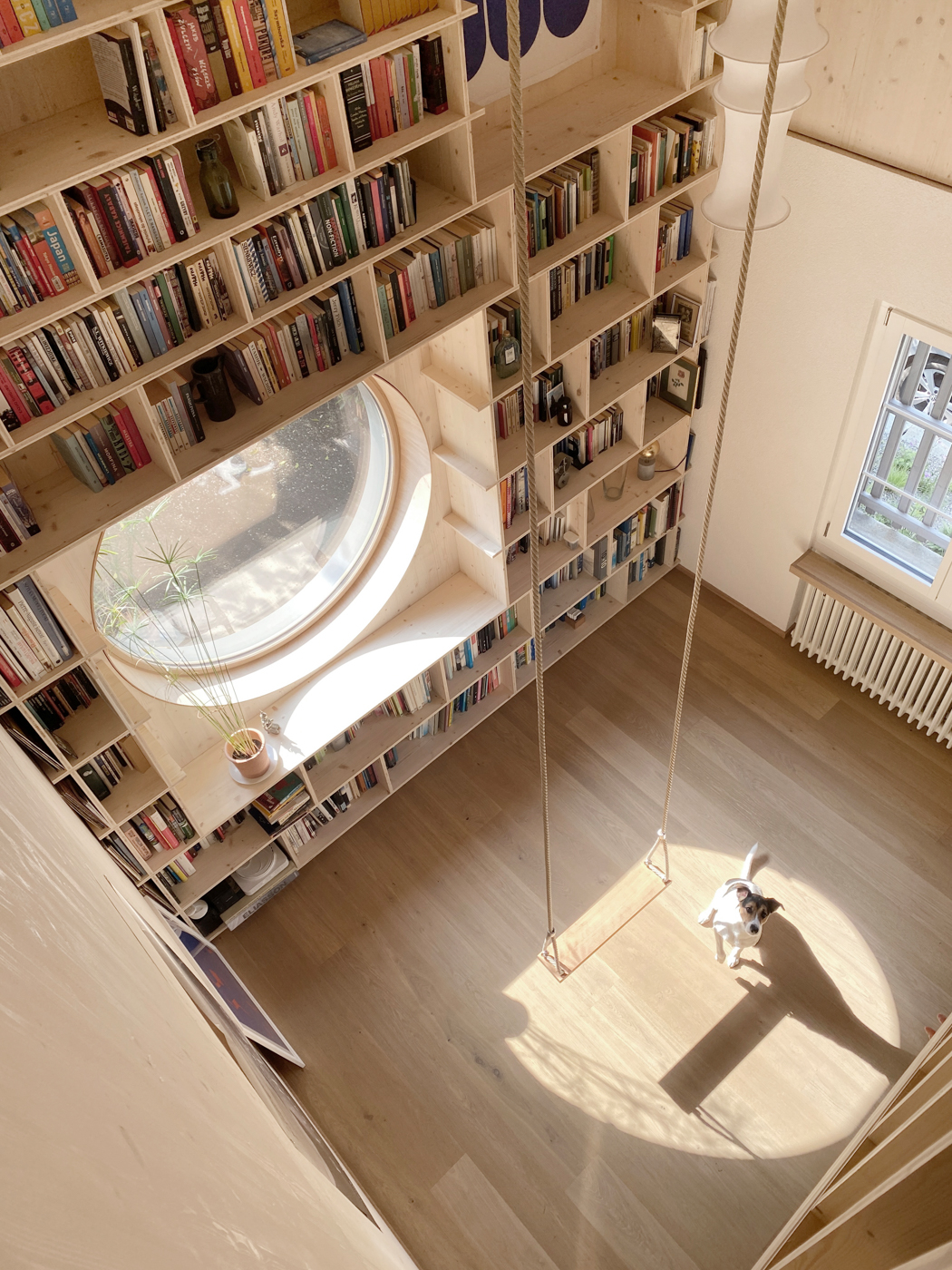 내부 공간에는 손님용 접객실, 그네가 설치된 아이 방, 500권의 서적을 보관할 수 있는 복층 도서관, 요가 및 명상실 등을 계획했으며, 옥상 테라스와 현관 부분도 증축했다. 전면 파사드에는 CNC로 제작한 눈(Eye) 형태의 3D 아트를 적용했다. 시간대의 변화에 따라 눈에 그림자가 드리워지면, 마치 건물이 살아 있는 듯한 느낌이 든다.