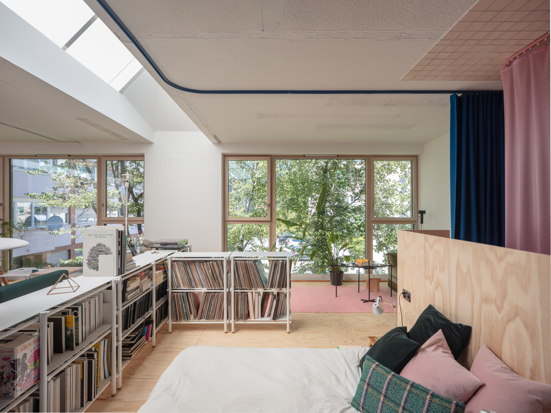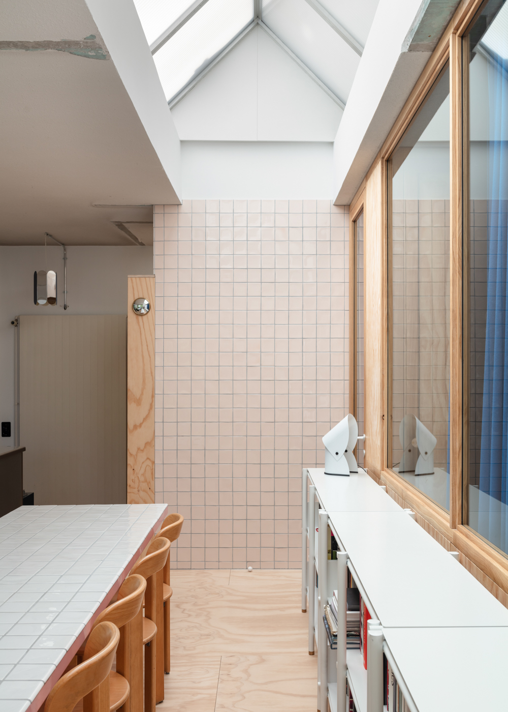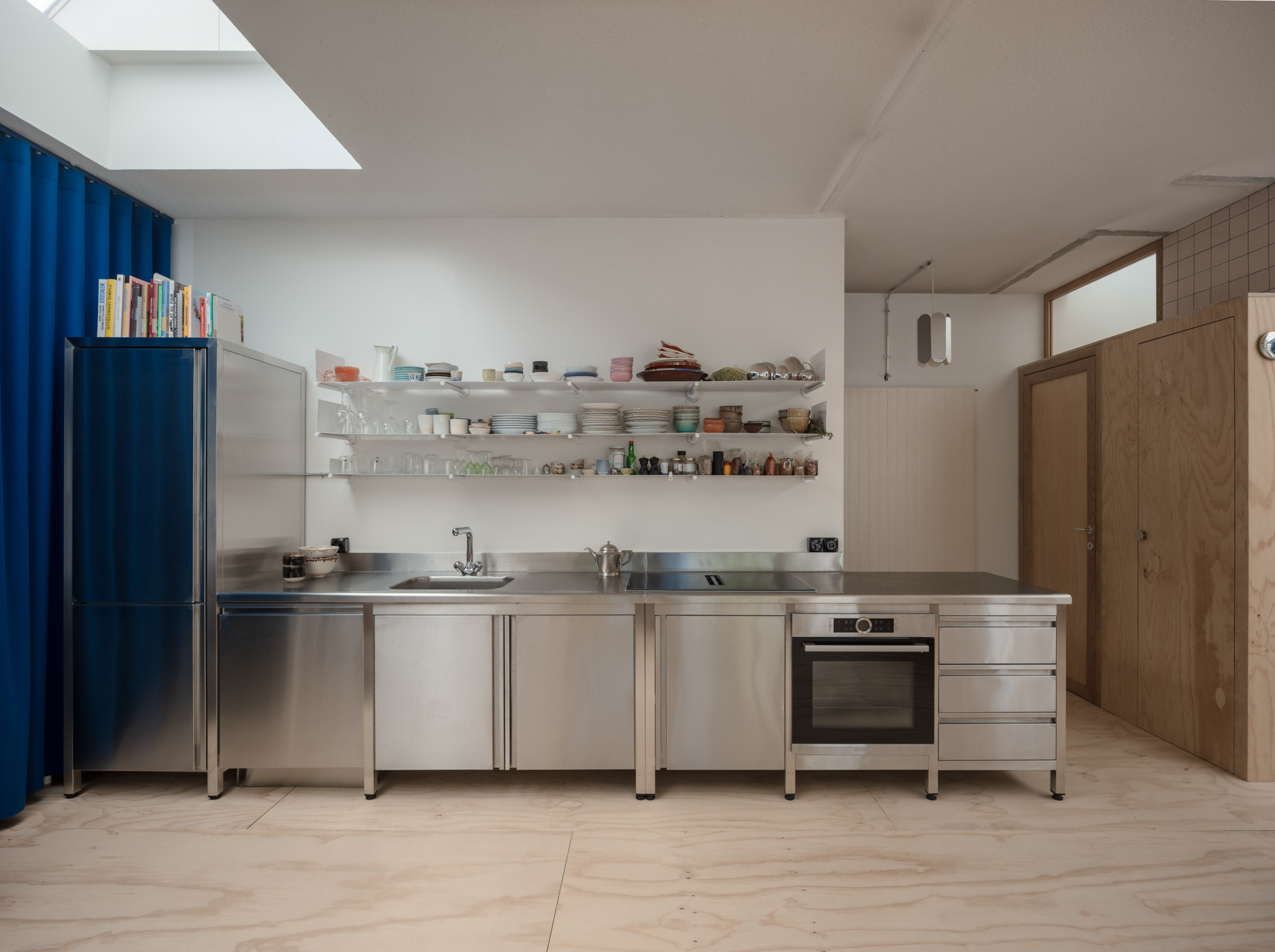 How do homes and houses absorb these expected movements of life? What architect Mary Otis Stevens described as the Flux of Human Life is just our very natural way of being, of grouping and ungrouping temporarily or permanently. Does the elasticity of the inhabitants as a group find spatial responses in our homes? In the case of this apartment, a former dentist cabinet, the attempt is to welcome that “flux” and stay open, to keep the possibilities of spatial evolution exposed to what might happen in time. The existing base helps. The space is structurally free, letting the light in through 2 transversal skylights, perpendicular to the important north-oriented openings.