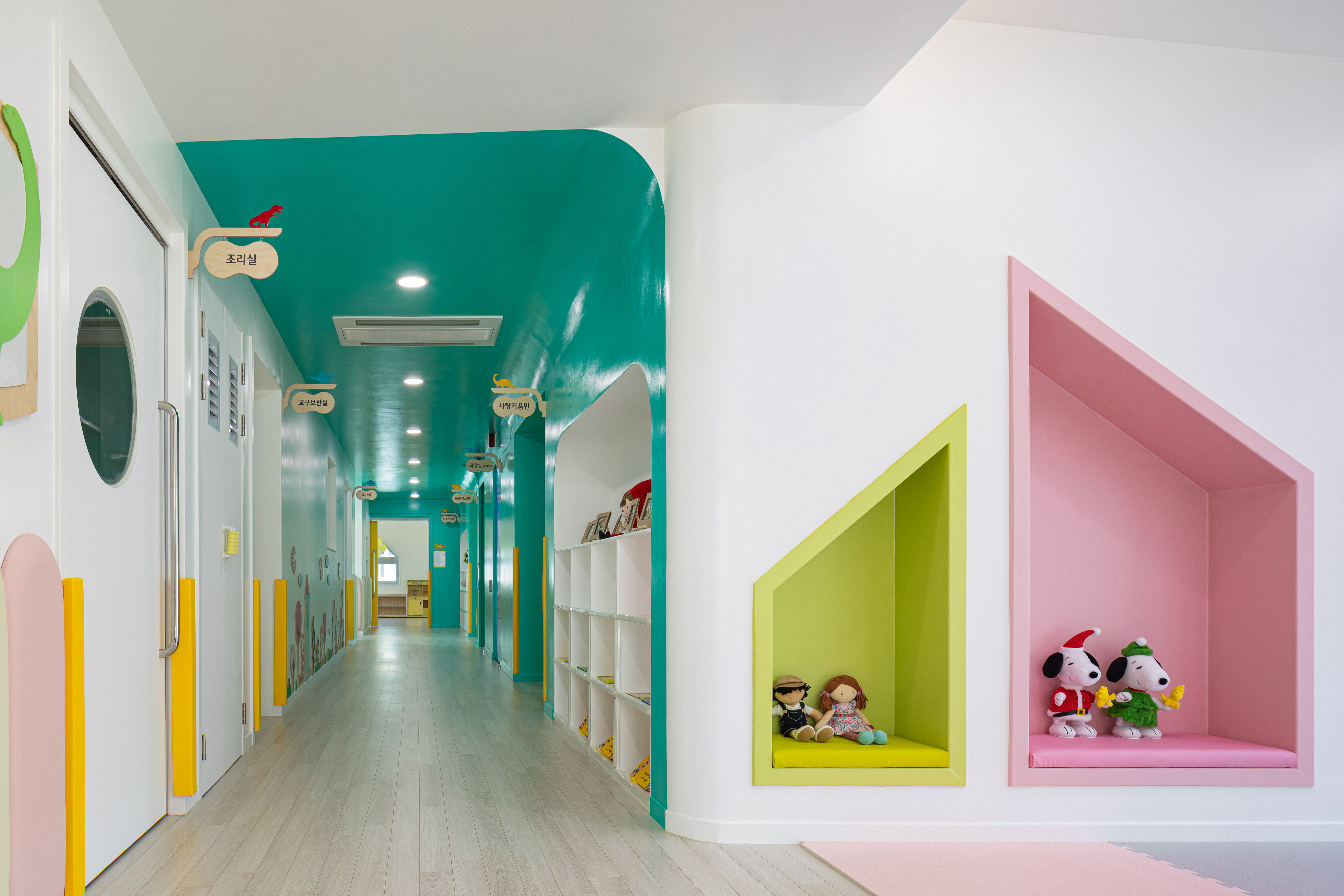 높이가 각기 다른 천정고를 통해 다양한 스케일의 공간을 경험할 수 있는 공간이 연속적으로 배치되어 있으며, 공간마다 배치된 다채로운 색상, 조명, 가구가 아이들의 상상력을 불러온다. 아이들의 시선에서 어린이집은 마치 생텍쥐페리의