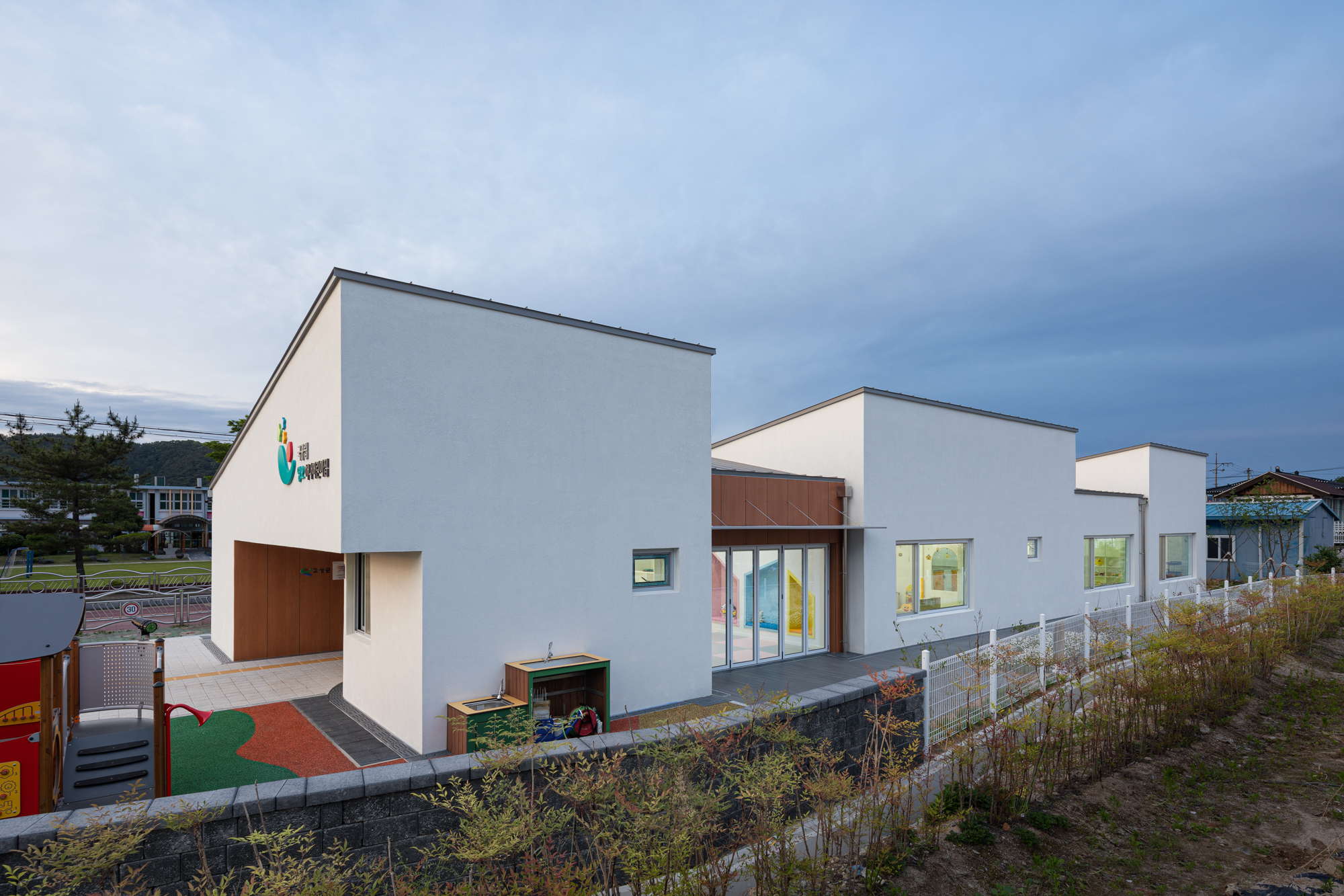 영오 하나 국공립어린이집은 하나의 커다란 놀이터처럼 느껴지도록 설계된 어린이집이다. 인간의 본질은 놀이(유희)이다. 아이들은 놀이를 통해 공간을 탐색하며, 공감각적 체험을 통해 호기심을 가지고 창의력을 키우게 된다. 건축가는 그러한 창의적 사고를 키우는 공간의 아이덴티티를 고민했다.