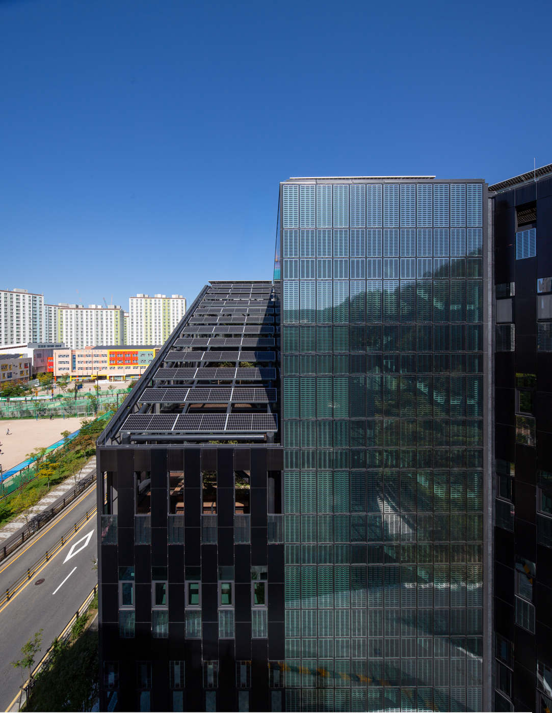 건축물이 지어지기까지 단열 계획, 기밀 계획, 폐열 회수 계획 및 창의 성능 향상을 위해 수차례의 테스트를 거치며 전 공정에서 미세한 오차까지 신경 써야 하는 과정이 이어졌다. 여러 번의 시뮬레이션, 그에 따른 매스의 변경, 디자인 변화에 따른 태양광 패널 수정 작업, 현장 골조와의 오차를 줄이기 위한 디테일까지 파사드 곳곳에 건축가의 노고가 담겨 있다. 이 프로젝트를 통해 국내 근린생활 건물에서 패시브, 엑티브 기법, BIPV 파사드 설계 등을 통한 ‘제로에너지빌딩 1등급’의 실현이 가능하다는 것을 보여 주었다. 에너지엑스디와이빌딩은 가장 기본적인 제반 기술을 총집합하여 건축물을 하나의 에너지 순환으로 인식하고, 무엇보다 디자인 단계에서 제반 공종의 원리를 통합적으로 적용해 완성도 있는 지속 가능성을 만들어 가는 사례가 될 것이다.