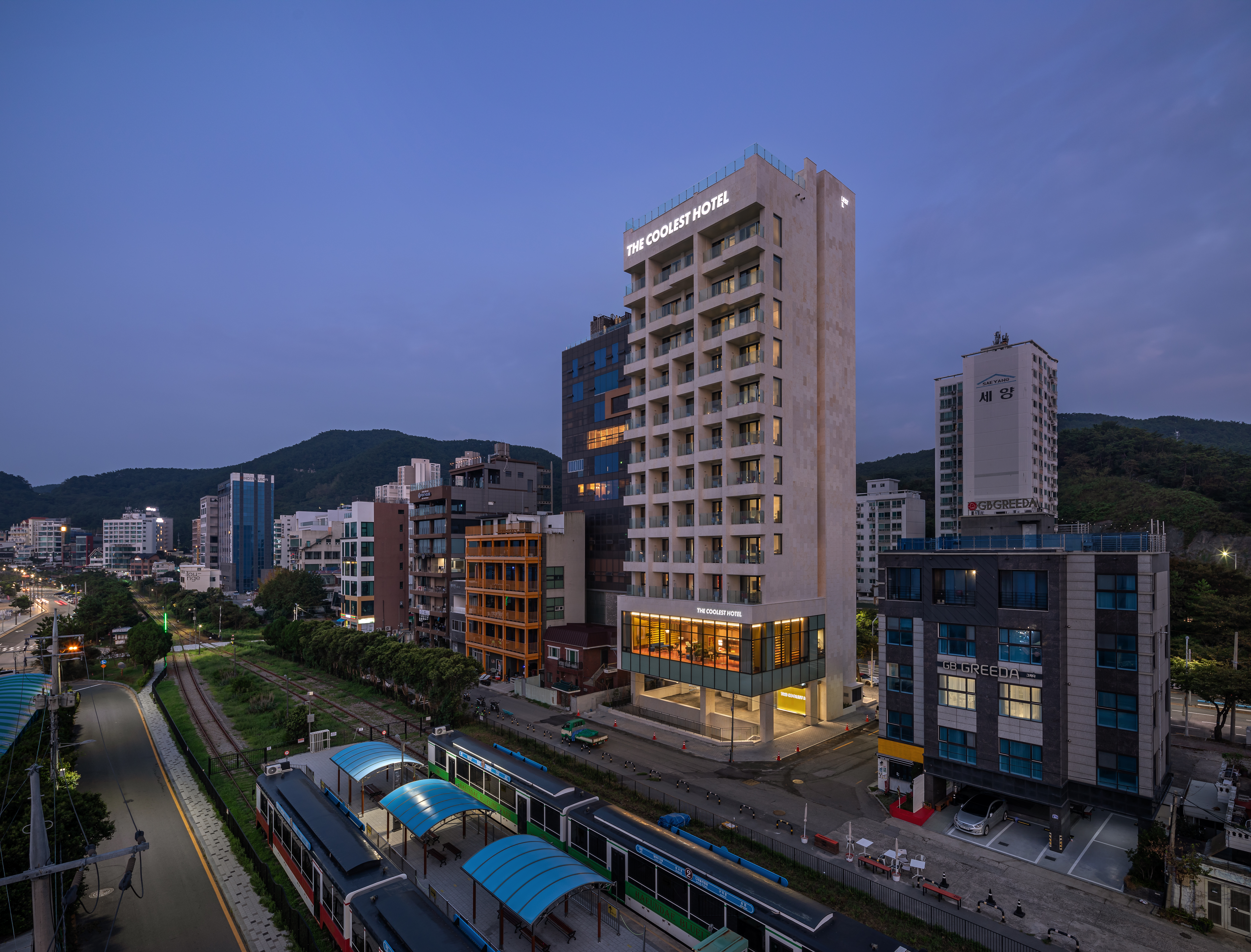 더 쿨리스트 호텔은 부산의 대표적인 관광지로 부상하고 있는 송정동에 위치하며 송정 해수욕장과 인접하고 있다. 송정 해안가는 사계절 내내 서핑이 가능한 온후한 기온으로 해안가 주변으로 서핑 관련 시설과 호텔이 밀집한 곳이다. 건축가는 자연환경을 기반으로 하는 호텔 건축을 진행하며 바다와 도시의 사이에서 건축 계획과 경제성에 대한 가중치를 나누었다. 결과적으로 전 객실의 오션 뷰를 적용하는 대신, 도시를 향한 입면은 닫힌 형태가 되었다. 동시에 ‘광어골 거리’라는 인접 관광지의 관계성을 고려하여 도시 측 입면에 폴딩을 활용하여 보다 입체적인 조형을 도입하고 지역 경관 형성에 의미를 담고자 했다.