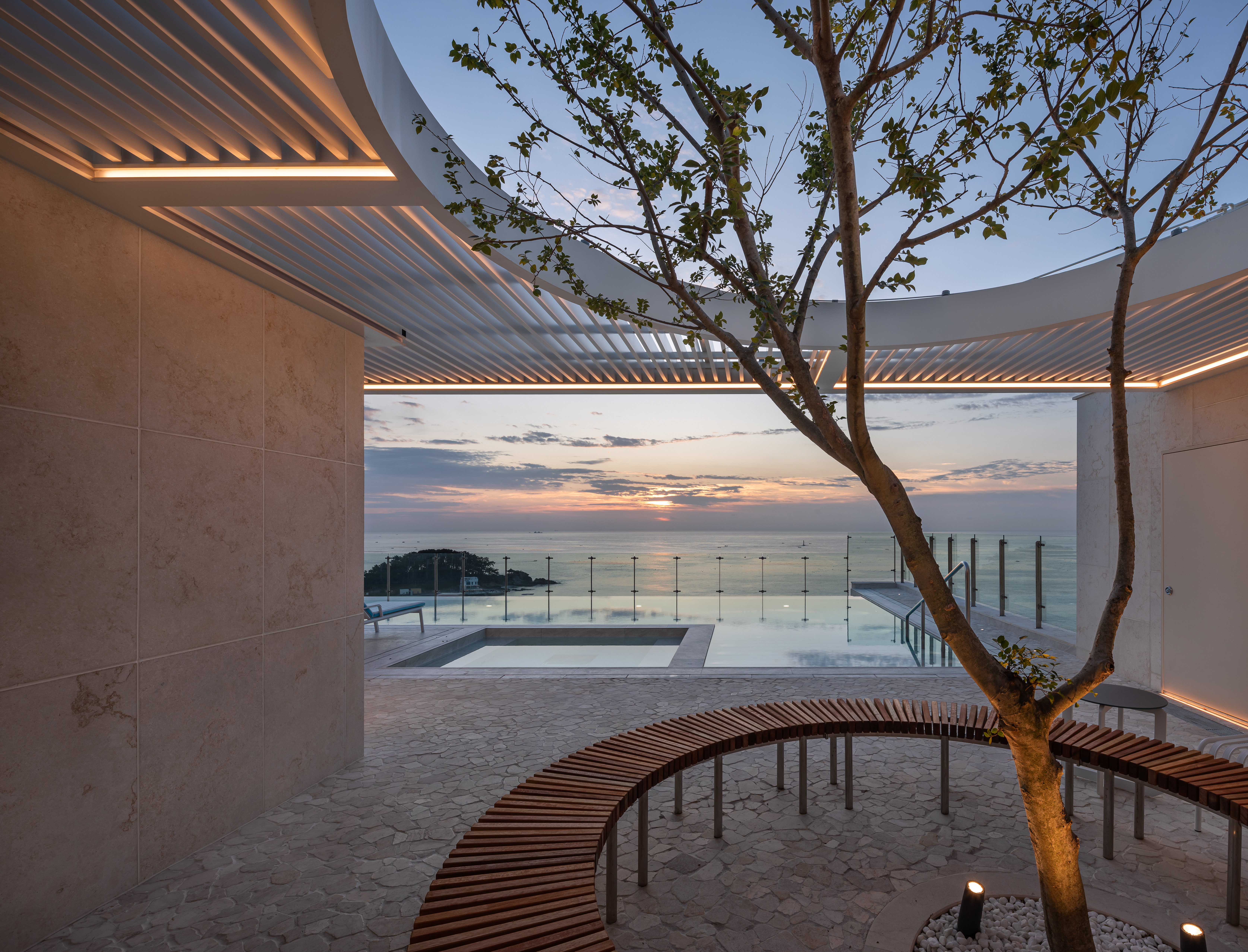 건축가는 소형 규모의 호텔이지만 고객들에게 좀 더 다양한 경험을 제공할 수 있는 방안을 고려했다. 옥상에 연계된 수영장과 비치 베드 공간은 도시 측의 파라펫을 높이 올리며 공간감을 확보하고 바다를 향한 배경도 확보했다. 지하층 주차 공간의 일부는 선큰을 도입하여 지하 근린생활시설의 공간적, 상업적 이용성을 높이며 1층의 필로티 공간을 풍성하게 만드는 요소가 되었다.