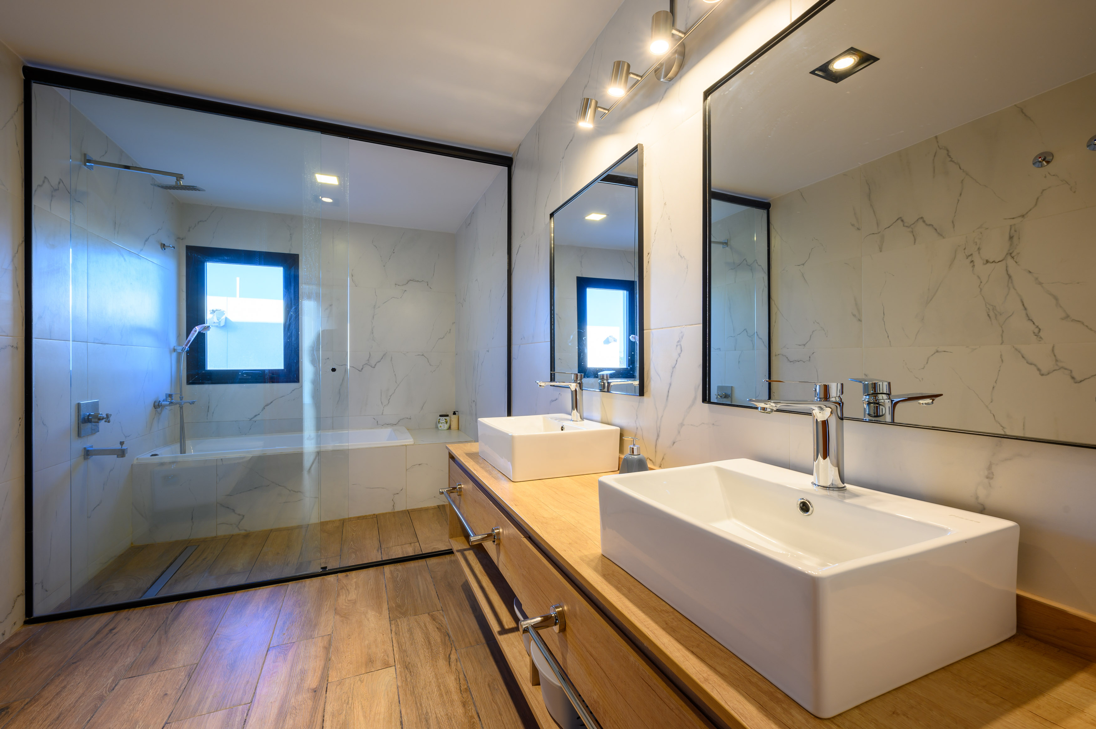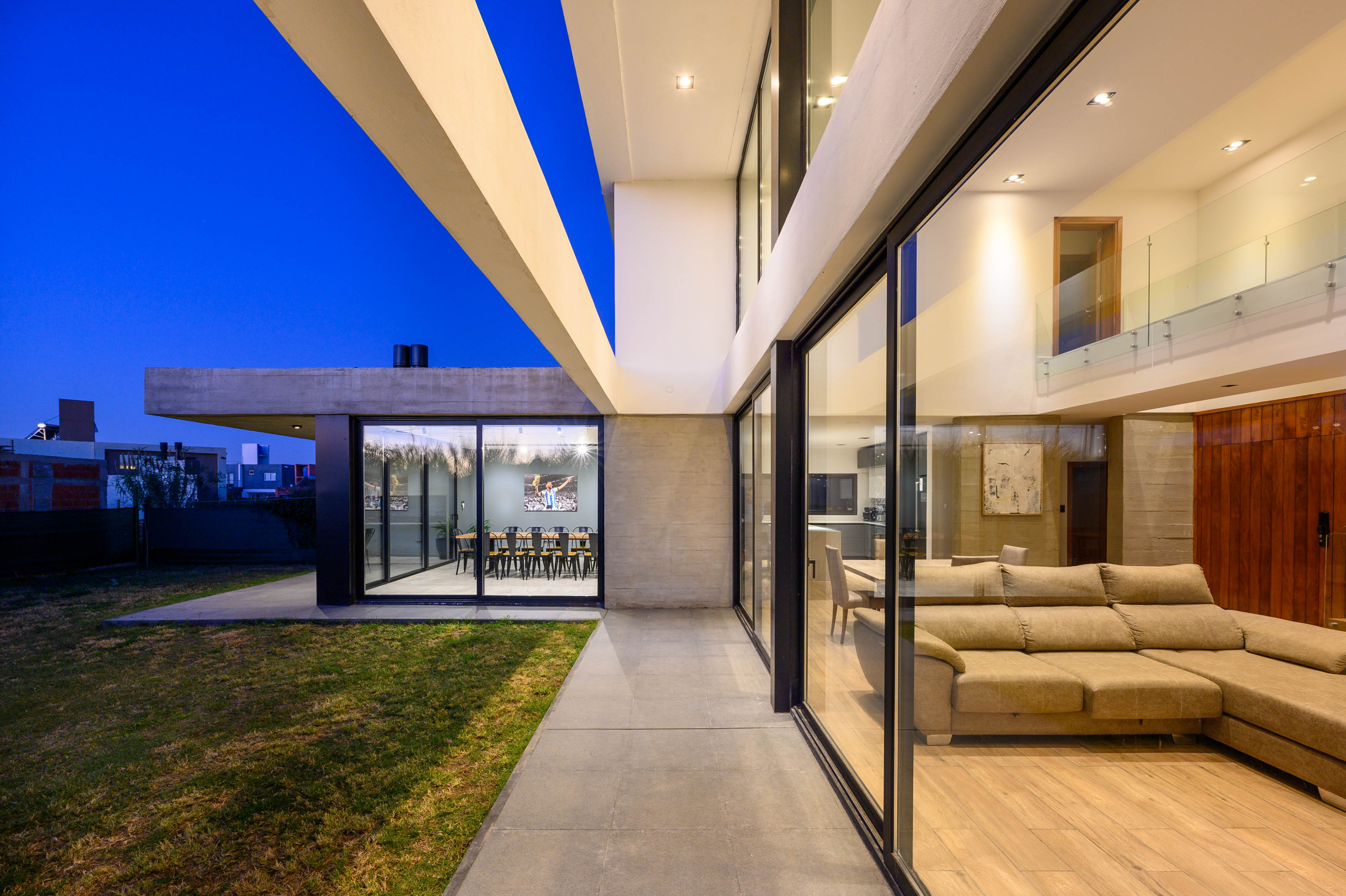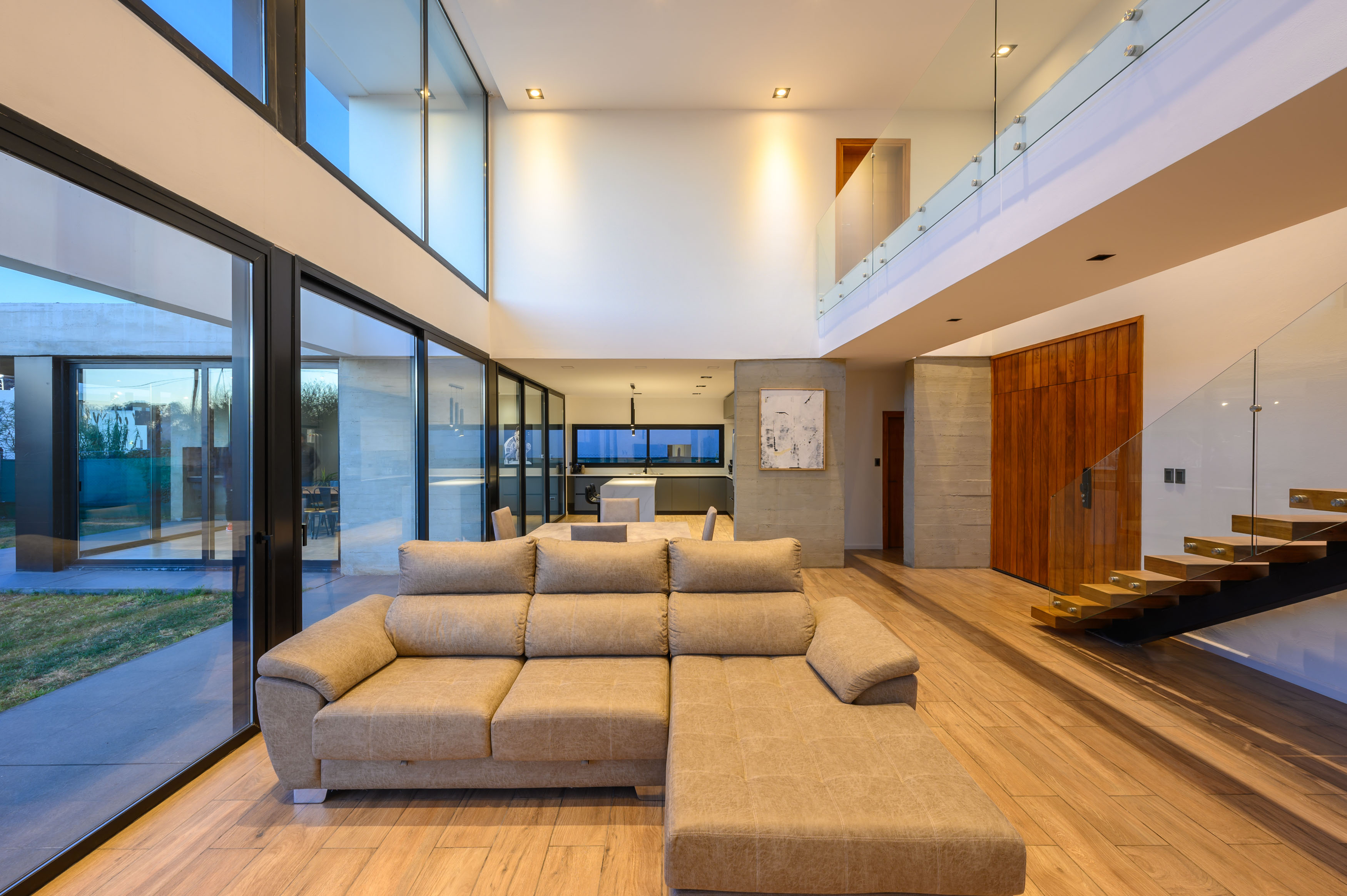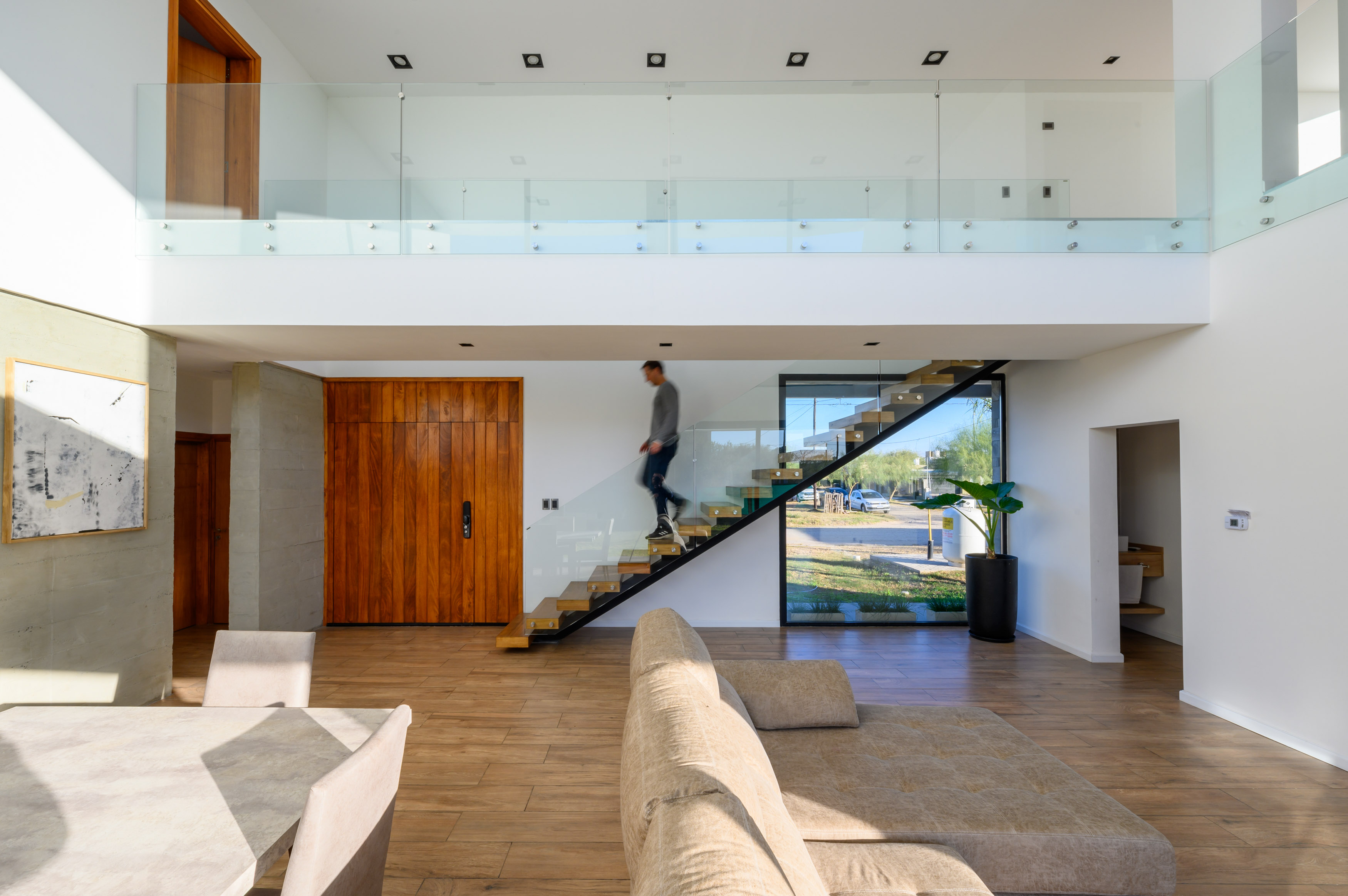 두 개 층 높이의 다이닝룸은 카사 씨티의 중심 공간이다. 1층은 L 자형으로 배치하여 주방이 야외의 바비큐 공간과 다이닝룸에 모두 연결되도록 계획했다. 자동차 두 대를 세울 수 있는 차고, 공용 화장실, 세탁실, 서재도 함께 구성했다. 2층에는 두 개 층이 오픈된 거실 겸 다이닝룸을 가로지르는 거대한 브리지가 있다. 다른 침실과 분리된 마스터 침실로 이어지는 이 브리지는, 유리 난간으로 되어 있어 발코니 역할도 완벽하게 겸한다. 조명은 목재와 콘크리트와 같은 재료로 선택해 따뜻한 느낌을 연출했다. 건물 외관은 흰색 캔틸레버 구조가 특징이다. 처마는 노출 콘크리트 파티션 옆의 출입구를 돋보이게 한다. 또한 카사 씨티는 효율적인 단열 계획을 적용하여, 겨울에는 난방을 사용하지 않고도 내부 온도가 약 24도로 유지된다. 아늑한 분위기만큼이나 실제로도 따스한 공간이다.