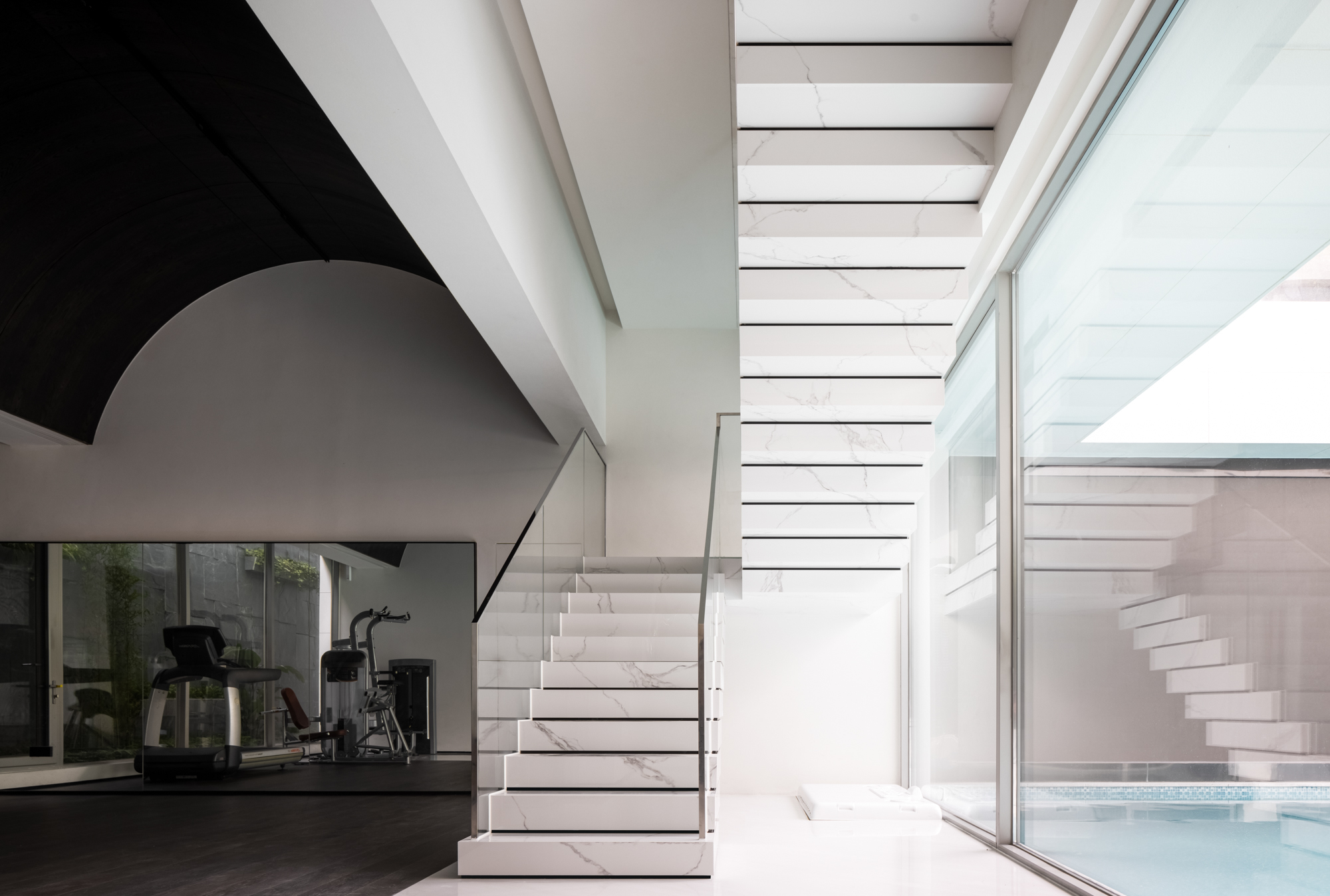 에이디 아키텍처는 건축과 인테리어를 결합하여 현대 도시 주택 개념을 탈피한 럭셔리한 빌라를 설계했다. 엘 하우스는 바다 어귀에 자리한 작은 섬에 있는 호화 주택가에 자리 잡고 있다. ‘L’ 자 형태의 배치는 동쪽에 있는 강의 풍경을 즐길 수 있는 전망대 같은 공간이 되었다. 화이트 톤의 절제된 건물은 바람, 물, 나무, 햇빛, 새, 어선 등 주변의 소리를 고스란히 느낄 수 있는 공간이다. 또한 간결한 디자인으로 공간을 넓게 사용할 수 있는 실용적인 집으로 계획한 것이 특징이다. 지하의 리셉션은 아트리움을 포함한 수영장을 계획하여 햇빛과 바람이 투명하게 드는 공간이다. 계단은 전체 공간을 아우르는 동선이며 사적인 공간과 공적인 공간을 잇는 역할을 한다. 건축가는 엘 하우스를 통해 자연과 인간이 어우러지는 평화롭고 조화로운 집을 제안했다.
