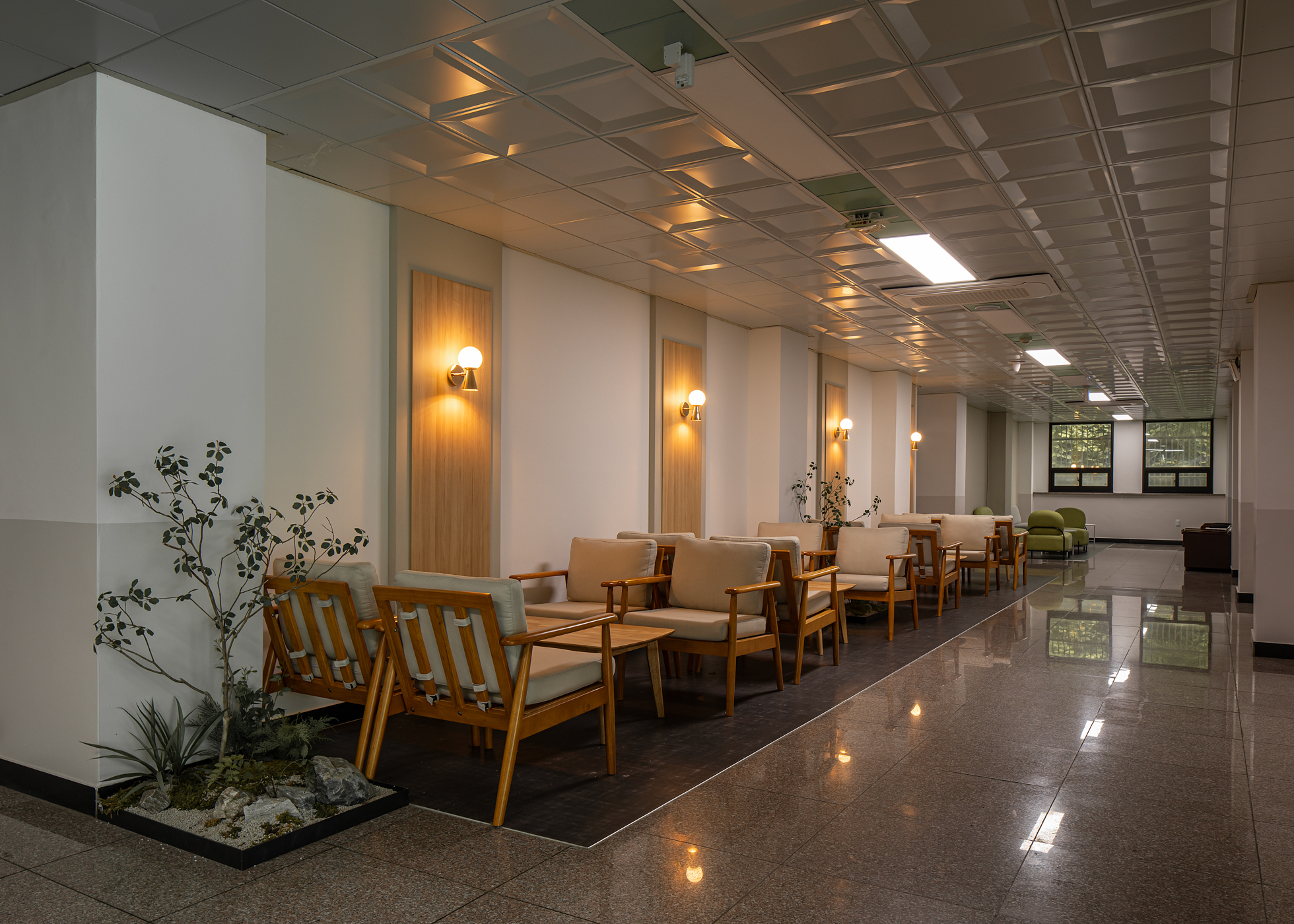 강서대학교는 60년 동안 기독교 정신을 바탕으로 한 학생 중심의 교육 이념을 실천해 오고 있다. 채셔관(도서관)은 세월의 흔적이 느껴지는 붉은 벽돌이 고전적인 분위기를 자아내며 오랜 역사와 전통을 말해 주고 있다. 현대의 도서관은 기존의 단순히 책만 읽는 공간이 아니라 새로운 아이디어와 영감을 얻을 수 있는 공간이다. 이에 따라 다양한 활동이 가능한 공간의 변화가 필요하다. 건축가는 여행을 가듯 설레는 마음으로 도서관에 방문할 수 있도록 여행(Travel)과 도서관(Library)의 합성어인 ‘트레브러리(Travelary)’의 콘셉트로 계획했다. 사용자는 아름다운 교정의 풍경을 바라보며 책을 읽고, 휴식을 취할 수 있다. 이러한 콘셉트에 맞는 플랜테리어는 심리적 안정을 줄 수 있는 요소이다. 본관에는 ‘새로움을 한 겹 더한다’는 콘셉트의 ‘레이어드 스페이스(Layered Space)’의 복합 문화 공간을 기획했다. 건물 외벽의 고전적인 분위기가 내부로 연결되고, 자연스러운 그린 톤과 차분한 우드 톤을 활용하여 안정적이고 편안한 내부 공간을 연출했다. 각 공간에는 체계적이고 전문적인 조도 계획으로 공간의 활용도를 고려하며 기능적인 측면을 더하였다.