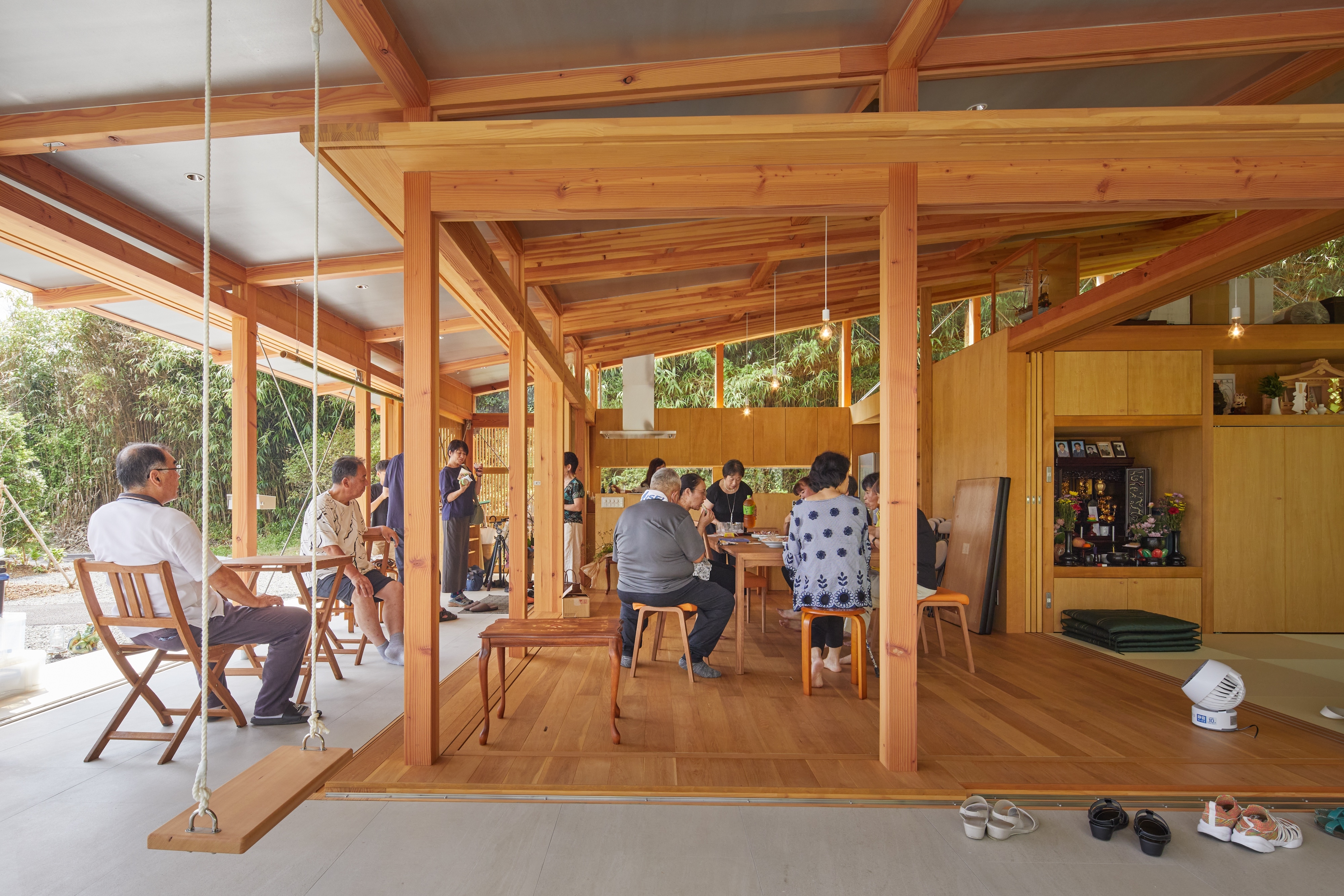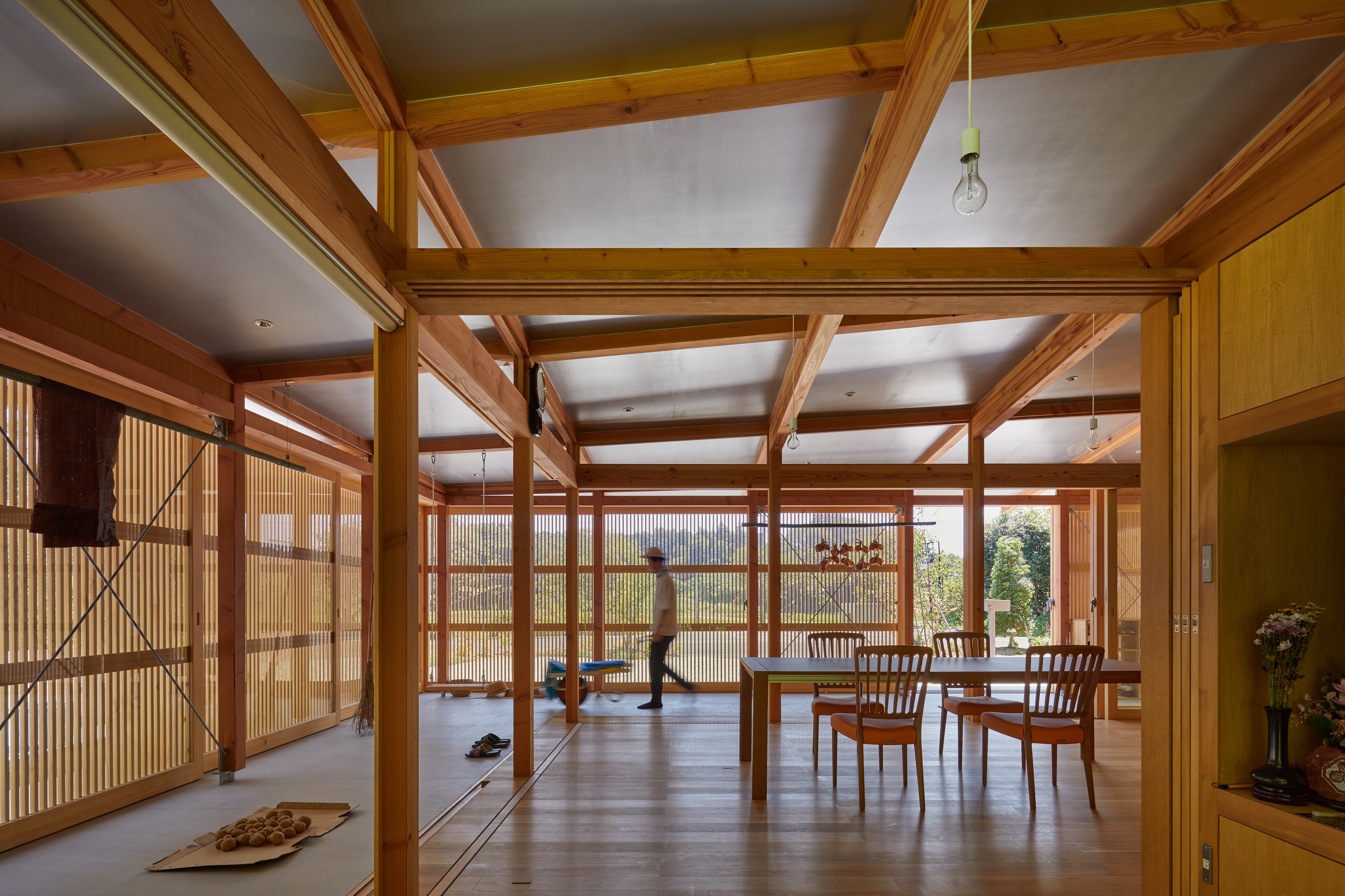 마운틴풋 베이스는 산 초입에 있는 주말 별장으로 고령화로 인해 인구가 줄어든 마을의 커뮤니티 공간이다. 친척, 친구 그리고 이웃과의 만남의 장소이자 행사를 진행하는 공간이 되기도 한다. 곡선 지붕은 산의 능선을 자연스럽게 닮았으며 반사가 되는 자재로 마감된 천장은 주변의 풍경과 내부에서 일어나는 활동을 담아낸다. 두 종류의 미닫이문도 특징적이다. 건축물의 경계는 바깥의 경치를 투명하게 담아내는 유리 미닫이문과, 햇빛을 조절하는 목재 루버가 부착된 유리 미닫이문으로 정의된다. 뒤틀린 형태의 독특한 지붕은 지역의 장인이 사용하는 공법으로 제작됐다. 지붕의 곡선을 구현하기 위해 빔의 각도에 조금씩 변화를 주었다.