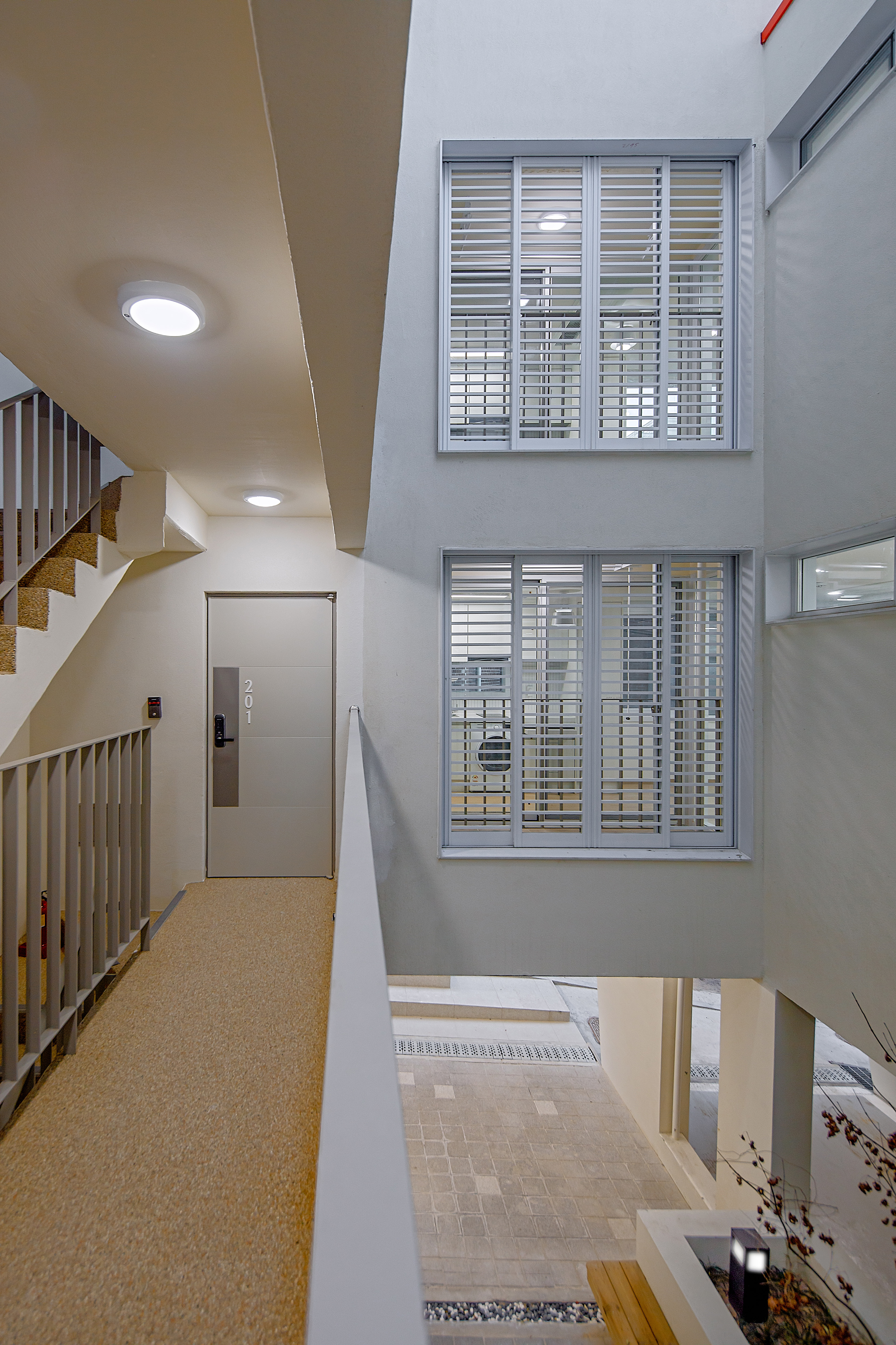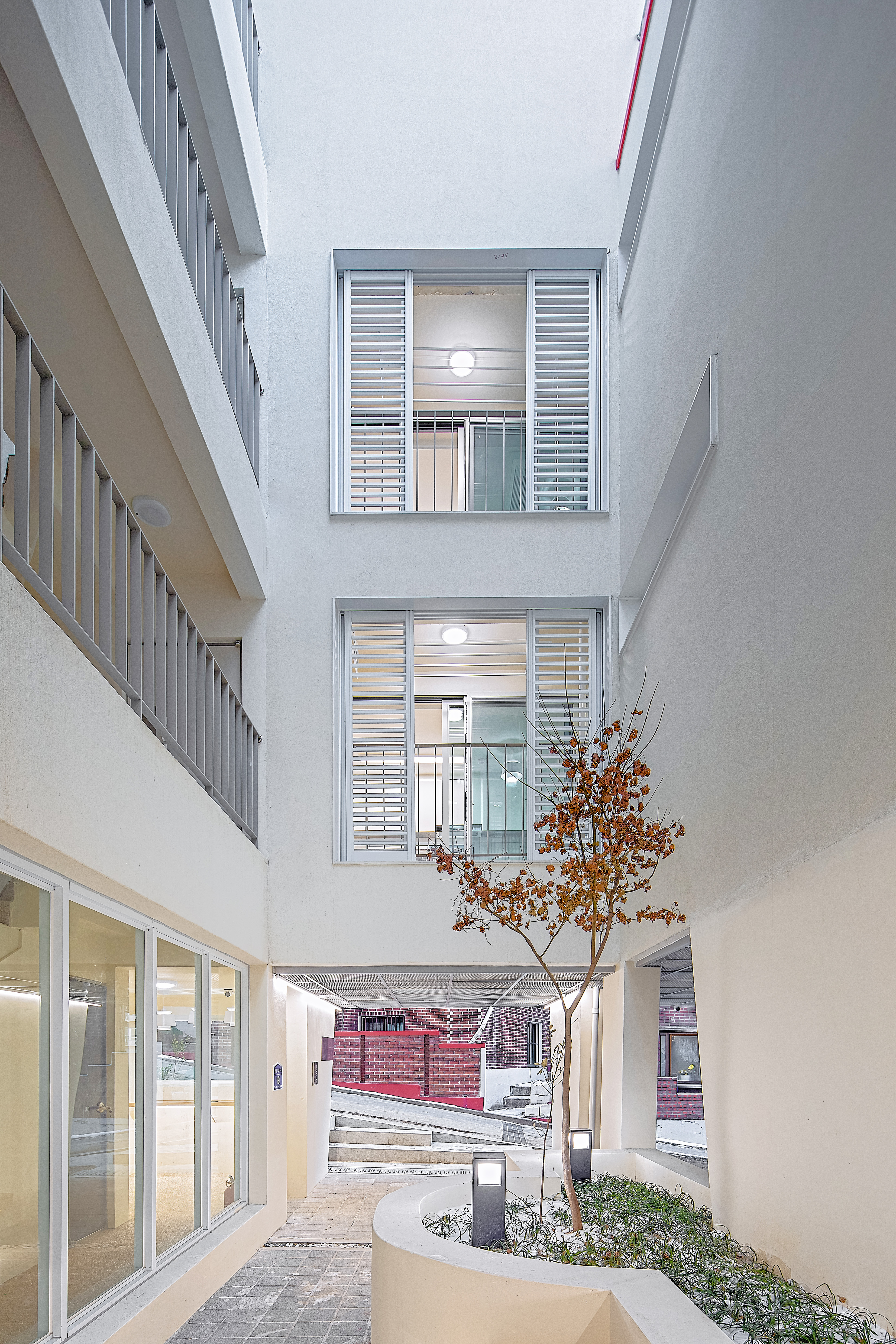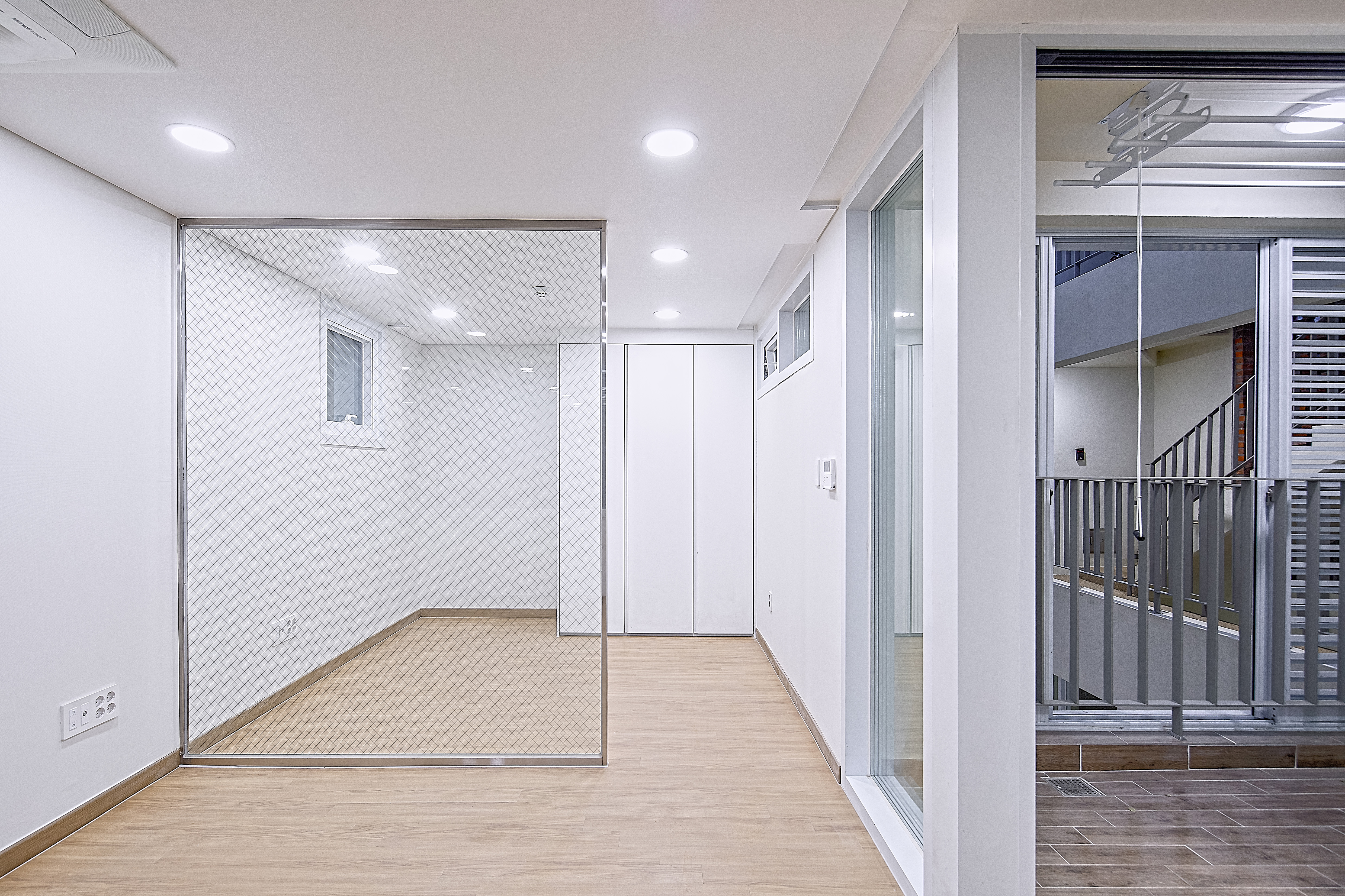 1층의 로비 전면에는 이웃 간 담소를 나누고 쉬어 갈 수 있는 바 테이블, 벤치, 화단을 배치하고, 내부 마당에는 단풍나무를 식재했다. 건축가는 이를 통해 이웃 간 담소를 나누고 쉬어 가는 공간을 마련하고자 했다. 거주자들은 중정 벤치에 앉아 짧은 휴식을 취하고 하늘을 올려다볼 여유를 가지게 된다. 이 집에 함께 사는 이웃들은 같은 시간, 같은 장소에서 마주하지 않더라도 느슨한 친밀감을 느낄 수 있을 것이다.