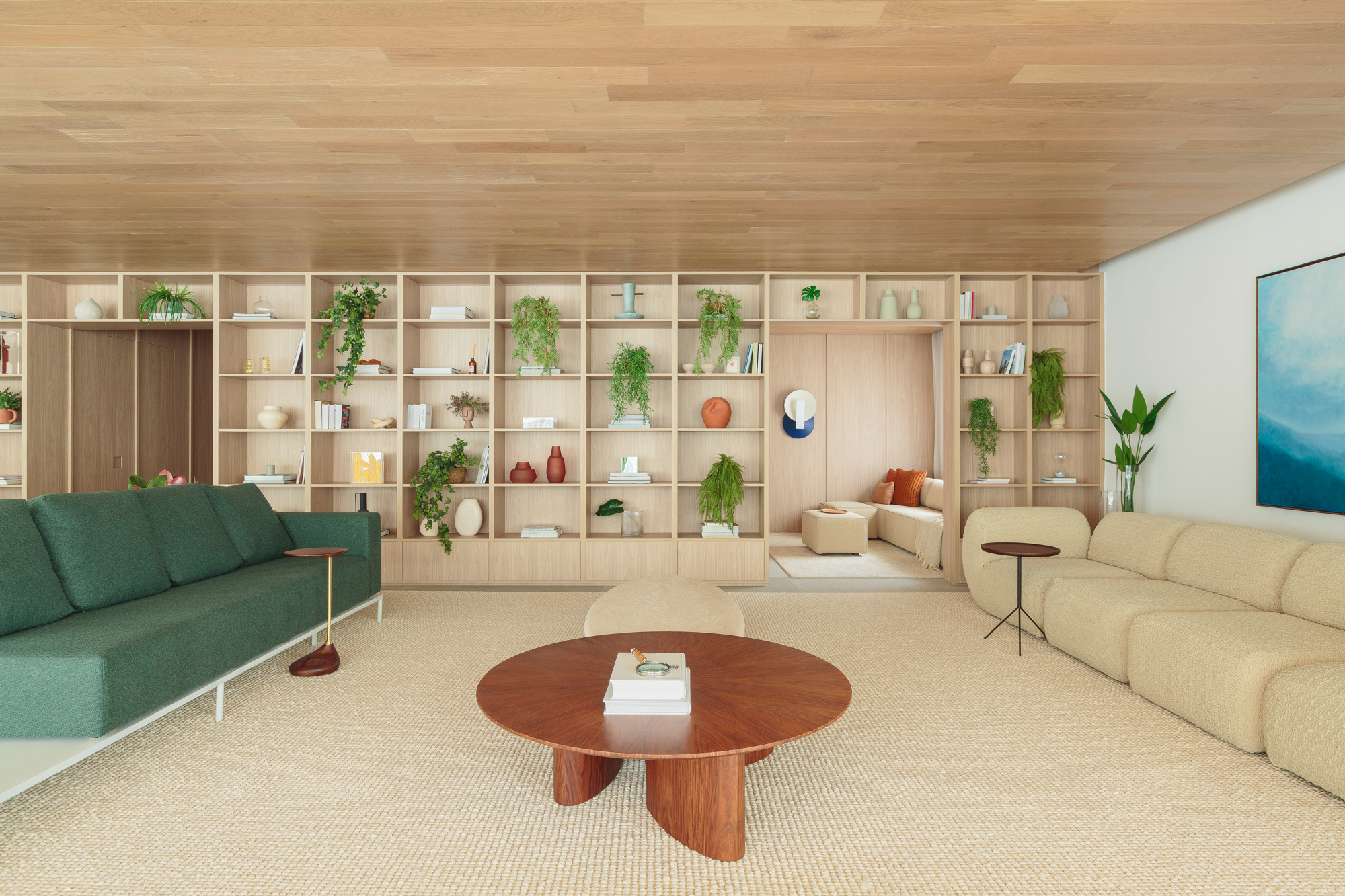 소셜 영역은 하나의 큰 공간으로 되어 있는 주방은 개폐할 수 있게 하여 다양한 연출이 가능하도록 하므로 공간과 용도의 통합을 우선시하였다. 창을 통해 보이는 전망과 인테리어의 핵심인 함께 방의 전체를 둘러싸고 있는 책장은 시각적 연속성을 보여준다. 거실까지 이어지는 발코니에서는 식사를 할 수 있는 공간이 있어 가족 행사도 할 수 있다. 바비큐 시설과 아일랜드 식탁을 갖추고 있으며 거실과 다이닝 공간과도 연결되어 있다. 또한 주방과 거실 사이에 대형 카운터를 배치하여 개폐가 가능하도록 하여 보다 프라이버시하고 정리된 환경을 조성할 수 있도록 하였다. 거실은 넓고, 사람들과 모임을 가질 수 있는 편안한 좌석들이 있으며 부부의 와인 컬렉션이 전시된 와인 저장고도 놓여 있다. 거실 옆으로는 책장 안에 있는 것 같은 느낌을 주는 프라이빗하고 아늑한 영화관람이 가능한 홈시어터가 있다.
