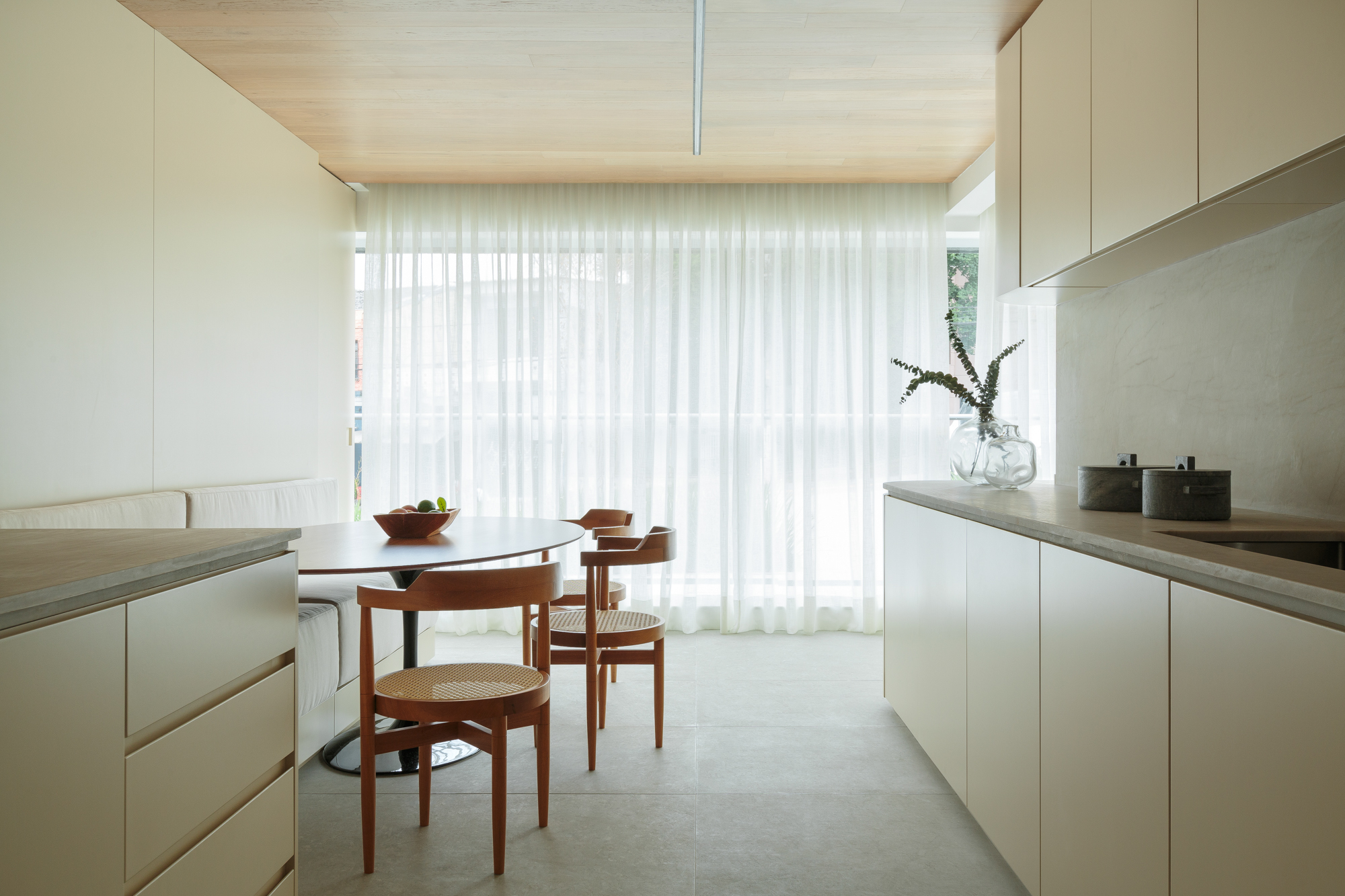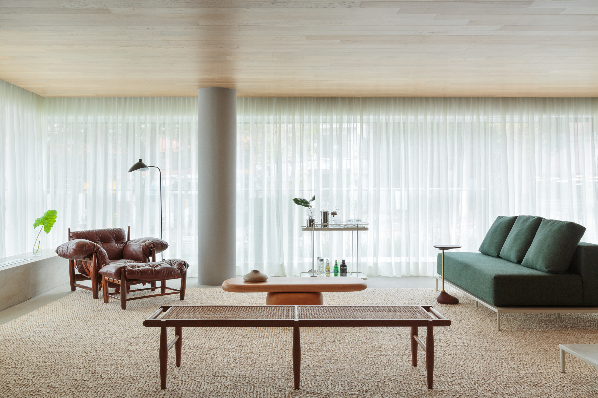 The general concept of this Interior Design took into consideration some initial conditions, such as the architectural project with its materiality and mood (pure lines, wooden surfaces, green vegetation and stone). This would allow the apartment to be a proper extension of the whole experience provided by the Casa Alto de Pinheiros building. The lifestyle of a family of four (a couple with 2 kids of different ages) was also taken into account, along with the common habit of welcoming friends for events at home; Activities such as receiving, working, studying, relaxing, sleeping and cooking are all considered as essential dynamics in contemporary living, and were here absorbed for the design of environments.