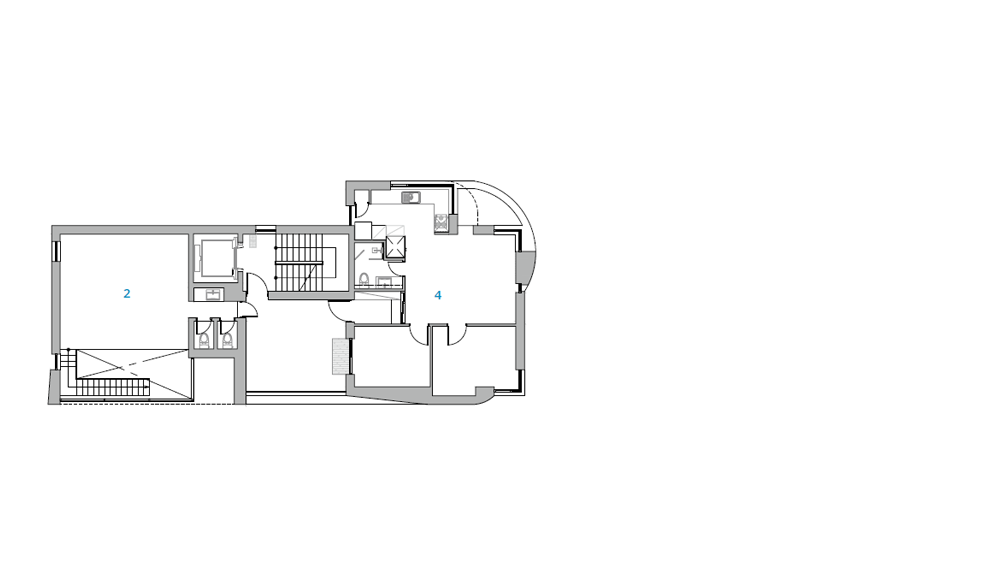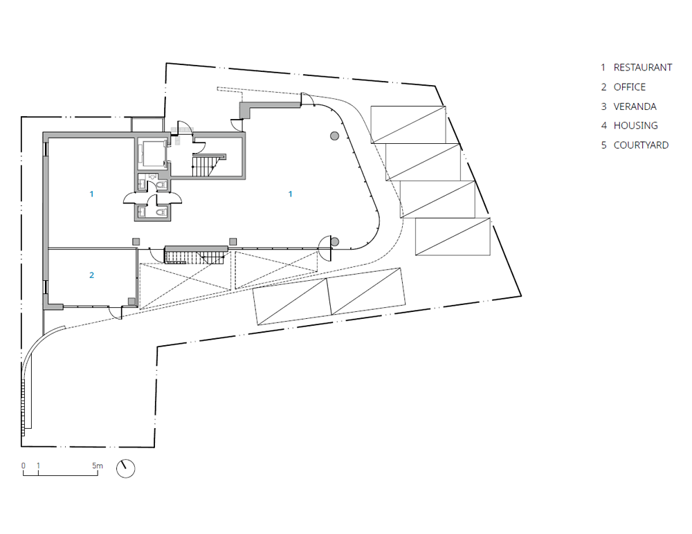 Giyeon-ga is a commercial/residential building. Although the commercial area is larger than that of the house, this is where the clients will live, which makes this their home. We don’t enter other people’s houses without permission and are reluctant to enter the house of a stranger. This may be the reason why a house has the significance of ‘place’ only for the family. We hoped that the house would be considered ‘Giyeon-ga Miyeon-ga (Gin-ga min-ga[1])’ by those who visit it, and that the ambiguity of whether it was a house or not would let the visitor’s guard down. The four-story house has a yard according to the owner’s wishes. The courtyard naturally divides the house into a private area with a bedroom, and the public area with a living room and kitchen. The backyard, which is connected to the bedroom, is an exclusive space that belongs to the lady of the house and can be filled with a vegetable garden and her favorite flowers and trees. We considered ‘giyeon (strange fate)’ as a password to enter from ‘non-place (local road)’ to ‘place (Giyeon-ga)’. Just like a deep relationship that we hold on tight to through the act of sharing a half necklace, we hope that this divided house would become a place where unrelated people could be tied together.