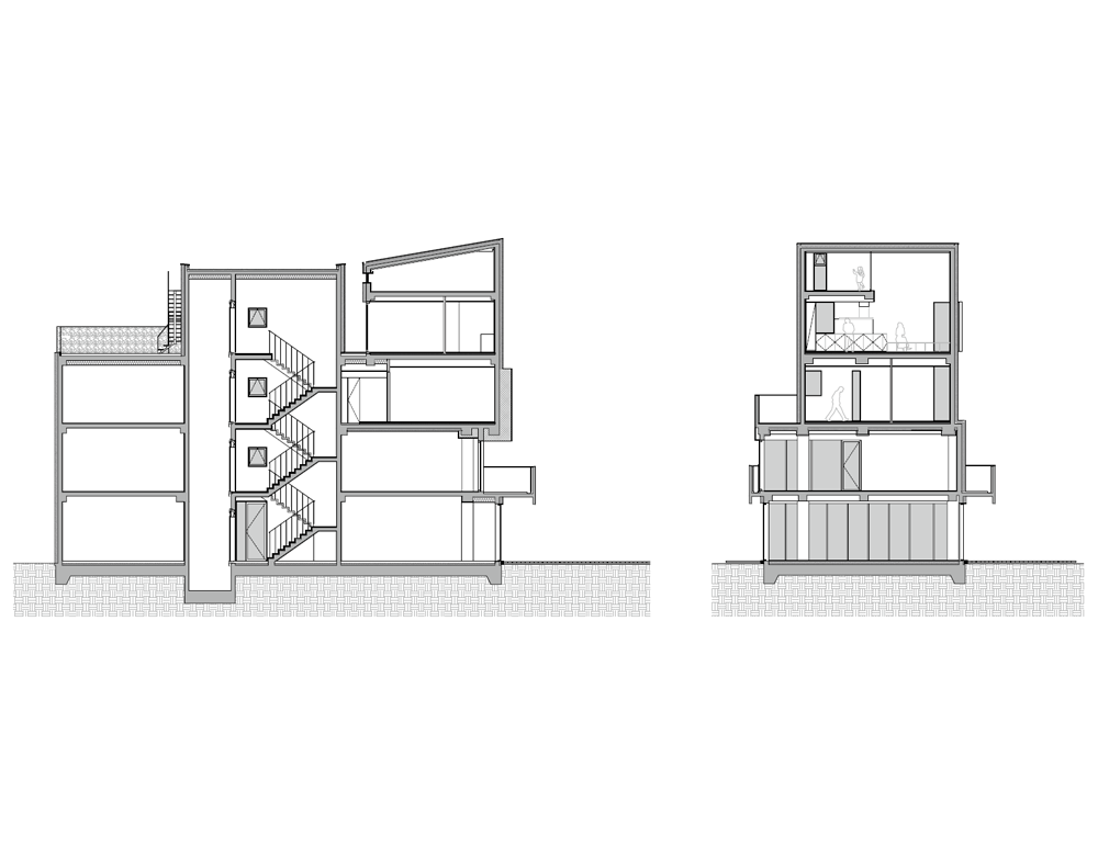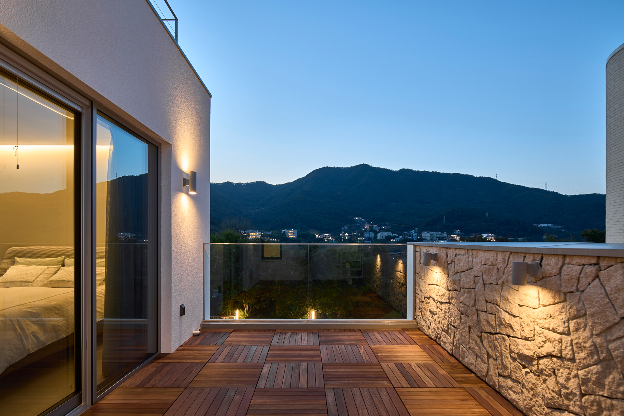 Giyeon-ga is a commercial/residential building. Although the commercial area is larger than that of the house, this is where the clients will live, which makes this their home. We don’t enter other people’s houses without permission and are reluctant to enter the house of a stranger. This may be the reason why a house has the significance of ‘place’ only for the family. We hoped that the house would be considered ‘Giyeon-ga Miyeon-ga (Gin-ga min-ga[1])’ by those who visit it, and that the ambiguity of whether it was a house or not would let the visitor’s guard down. The four-story house has a yard according to the owner’s wishes. The courtyard naturally divides the house into a private area with a bedroom, and the public area with a living room and kitchen. The backyard, which is connected to the bedroom, is an exclusive space that belongs to the lady of the house and can be filled with a vegetable garden and her favorite flowers and trees. We considered ‘giyeon (strange fate)’ as a password to enter from ‘non-place (local road)’ to ‘place (Giyeon-ga)’. Just like a deep relationship that we hold on tight to through the act of sharing a half necklace, we hope that this divided house would become a place where unrelated people could be tied together.