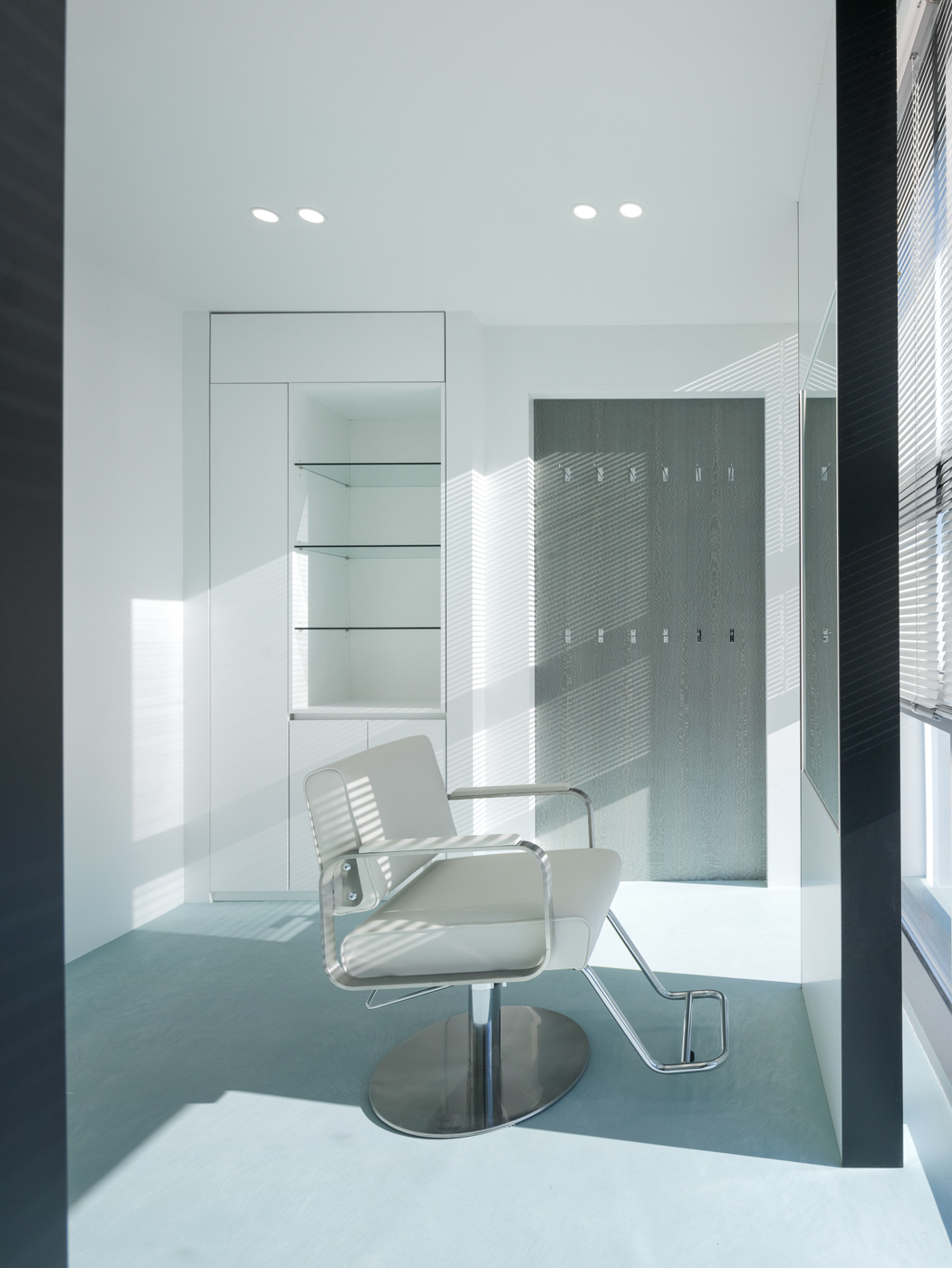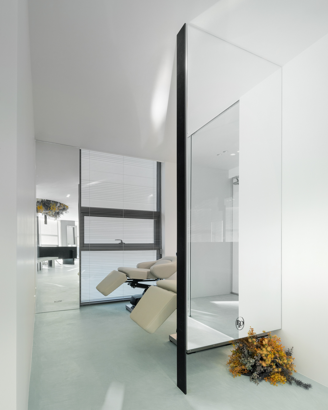 ‘PULIDO’는 스페인어로 '청초한, 정성을 들인' 의미를 갖고 있다. 고객이 가장 오래 시간동안 머무르는 대기공간을 최우선 주안점으로 두어 홀 중앙으로 과감하게 배치했다. 대기 공간은 대기좌석과 시술좌석 두공간으로 나눠지는데, 파티션을 중앙에 두고 양쪽으로 영역을 공유하도록 디자인했다.