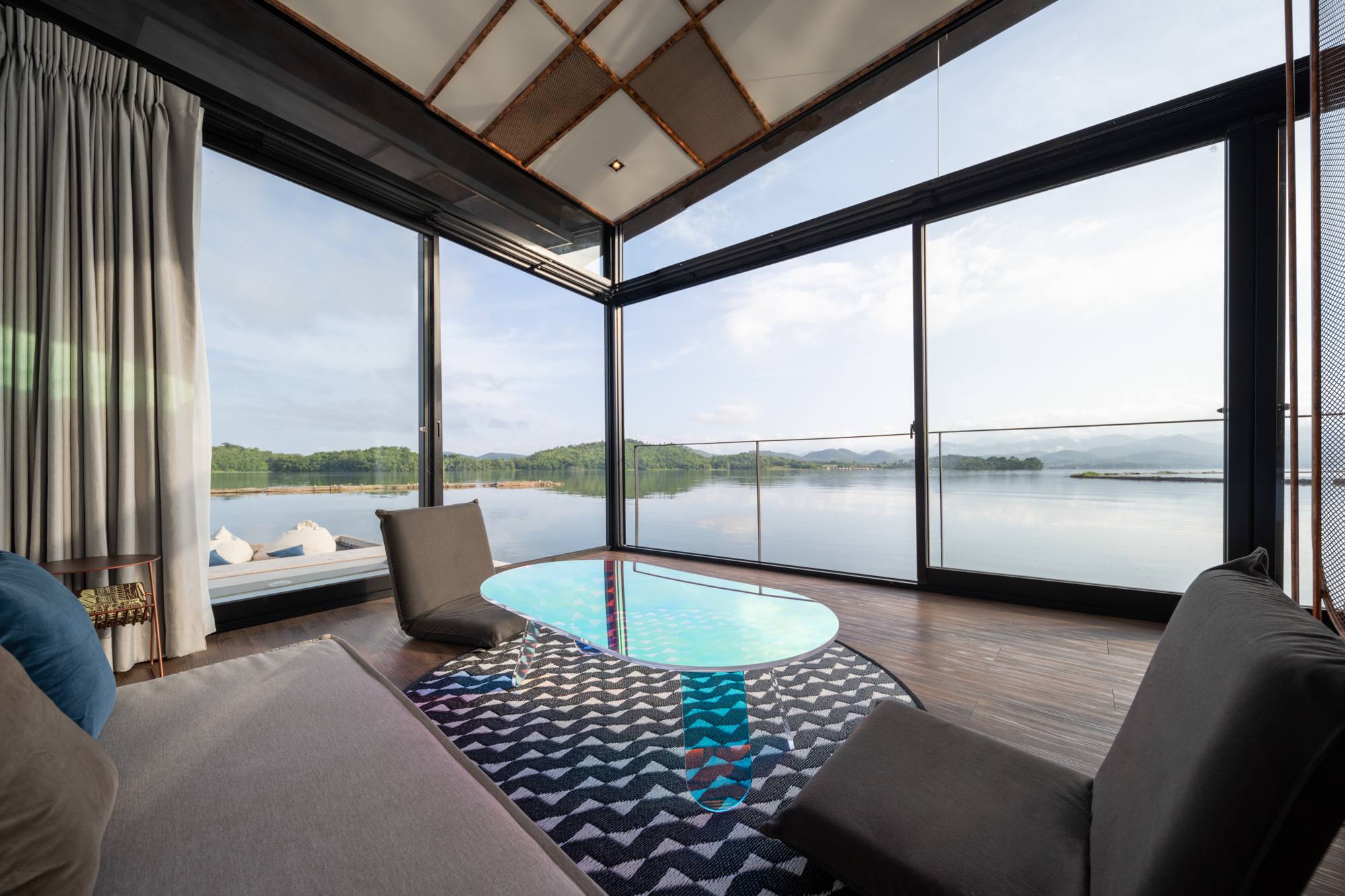 플라 투 수상 리조트는 댐이 있는 곳 근처에 뗏목 위에 설치되어 있다. 다양한 종류의 물고기가 있는 독특한 대지 특성을 파악한 건축가는 ‘거대한 가물치’ 개념을 이용하여 리조트를 설계했다. 활동에 적합한 형태를 만들고, 그것을 공간에 맞게 변형하면서 내부와 외부에서 상호적 연결이 가능한 공간을 만들어 냈다. 건물 안으로 들어가면, 물속에서 역동적으로 움직이는 물고기를 떠올리게 한다. 입구 홀에서 두 가지 방법으로 접근할 수 있는데, 외부 데크에서 들어오는 곳은 선과 빛으로 공간에서 극적인 것을 가지고 있다. 낮에는 다르게 밤에는 방들이 분리된다. 리조트는 목재와 경량 철강을 통해 만들어졌다. 건물의 색은 물고기를 떠올리게 만든다. 뿐만 아니라, 건축가는 수상에 지어지는 공간인 만큼 건축물의 무게가 가벼워지도록 가벼운 자재, 폐쇄형 SAT 탱크 시스템을 설치하여 마무리했다. 해안 근처에 있는 경우의 전기를 사용할 수 있으며, 바다로 멀리 나가면 발전기를 이용하여 전기를 사용할 수 있다. 실내에는 다양한 활동을 위한 조명들과 뗏목 내부에는 이야기를 나눌 수 있는 공간들이 있다. 실내의 낭만적인 분위기를 즐길 수 있는 공간도 곳곳에 마련되어 있다.