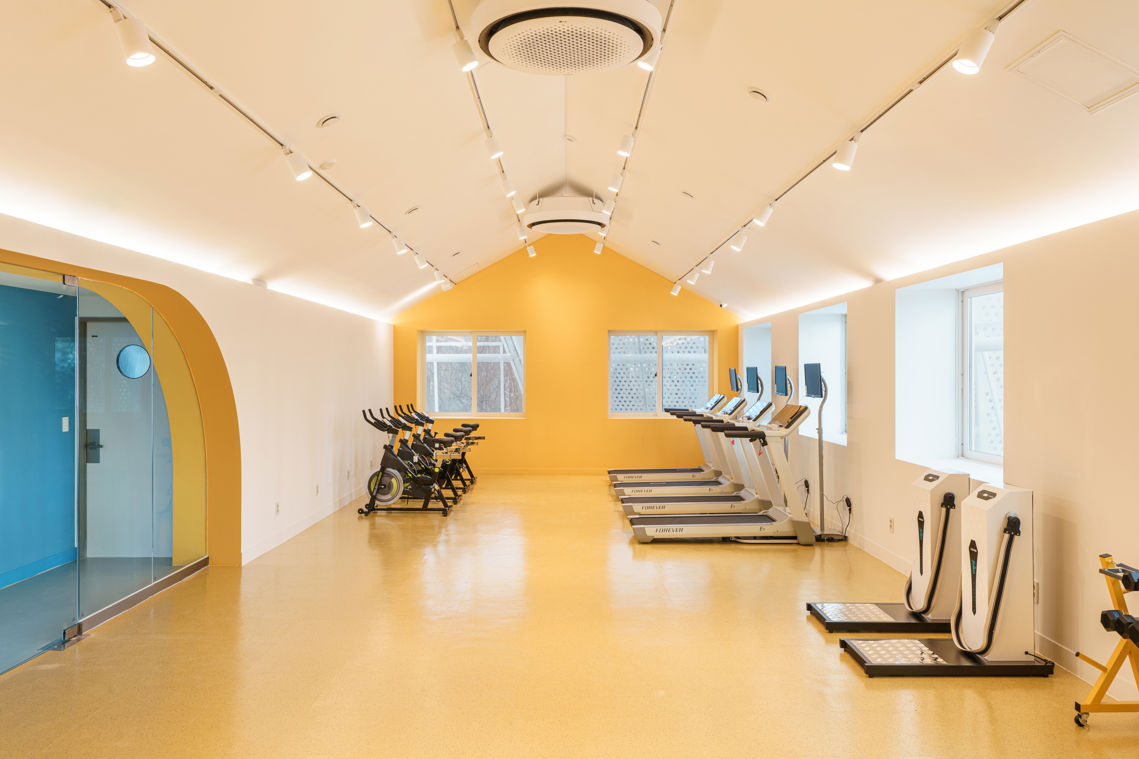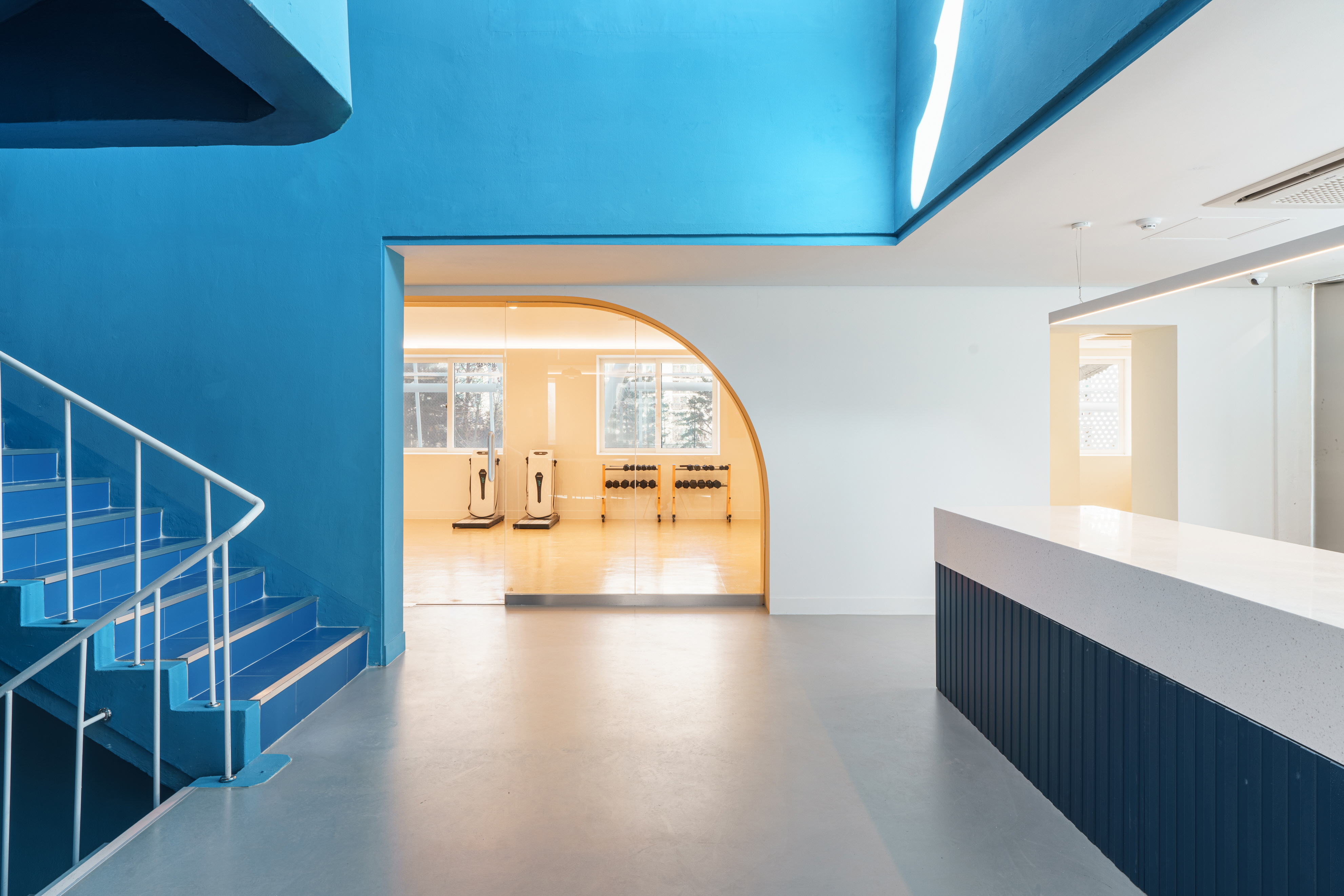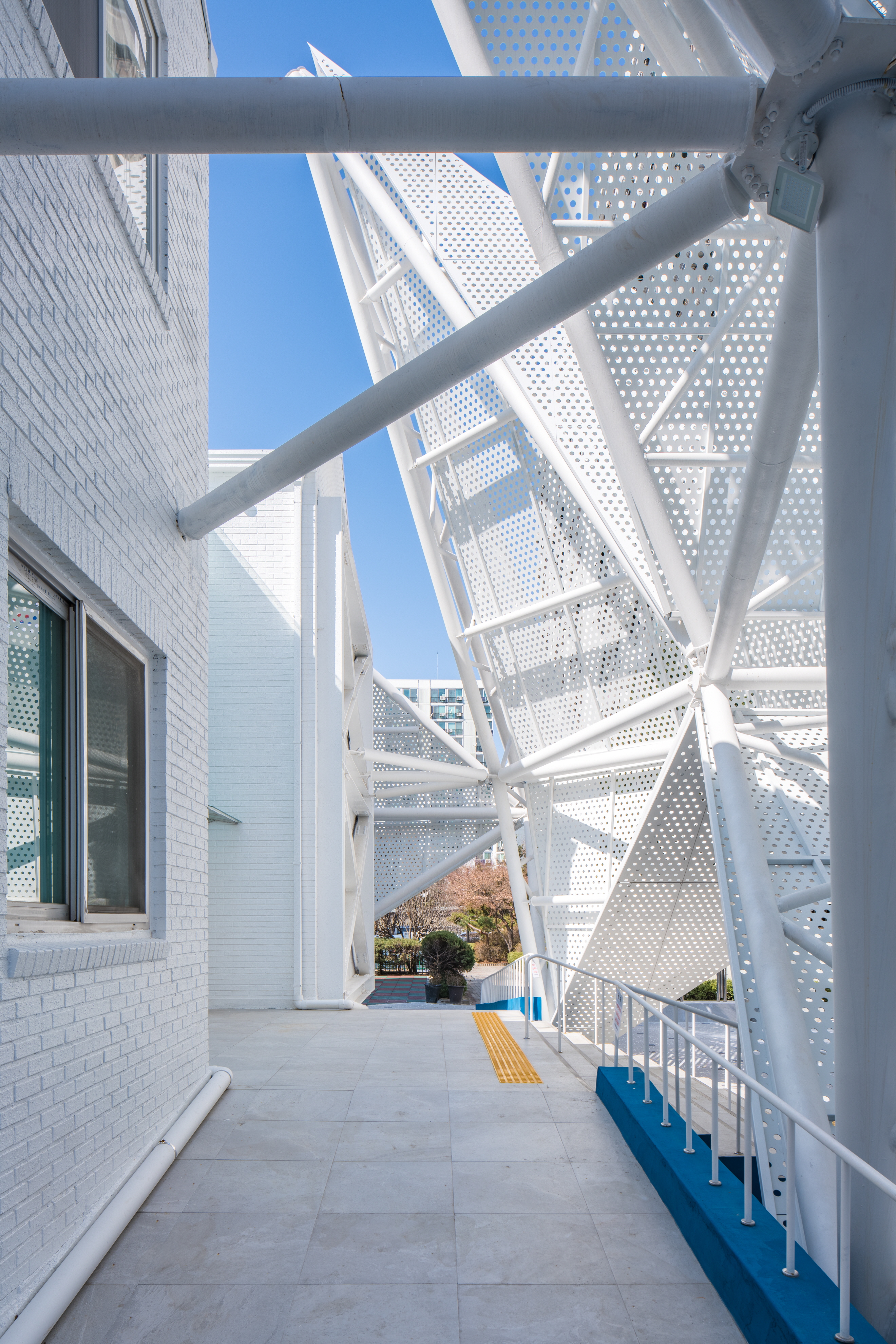 Gayang 8 Complex rental housing is an old apartment complex that is 30 years old and has 1,110 units, but only a management building exists as a community facility. SH Seoul Housing Corporation requested that the reading room space on the second floor be converted into a small library, including structural reinforcement and exterior improvements. Reading a book is like a journey of exploring knowledge. The architect wanted to make the small library into a space that feels like one is traveling. Through consultation with residents, the basic functions of the existing facilities on the first floor were maintained, and the interior space of the senior center was reorganized. In addition, the library and book café were arranged as a major program so that it could be visited and enlivened by people other than residents of the complex.