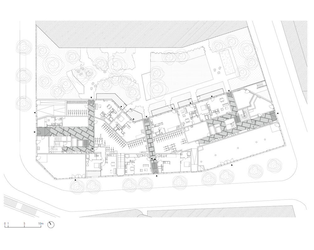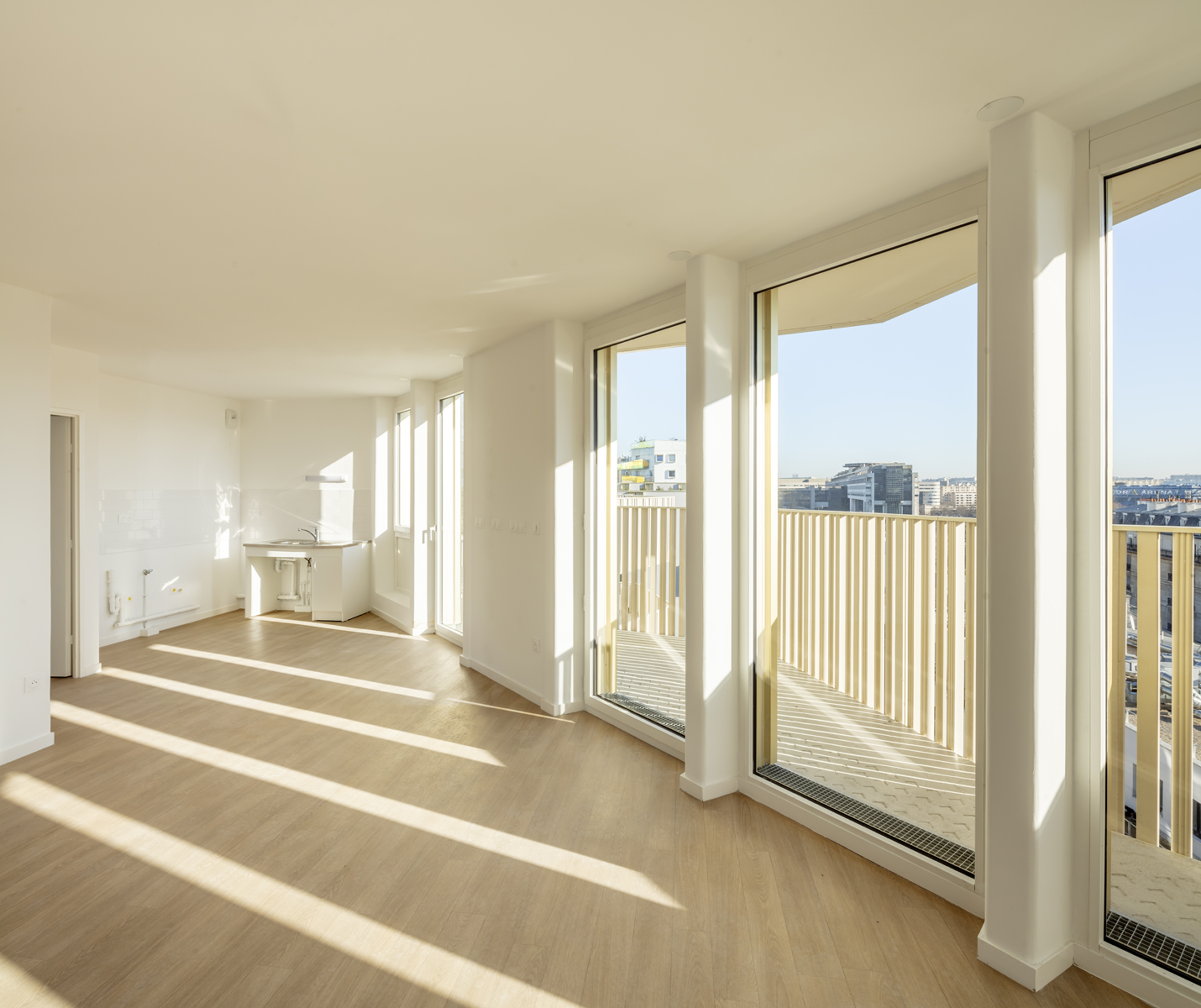 Located south of Paris' Osteritz Station, the ZAC Fulton A5A2 residential complex stands as an architectural manifestation of the rapidly changing urban landscape in this area. Positioned in the heart of a city block, this residential complex integrates commercial and residential facilities. The residential component contains 55 units for general residents and an additional 65 units tailored for socially vulnerable individuals. Given the advantage of overlooking the Seine River from an urban setting, the architect has strategically designed loggias, balconies, and terraces throughout the residential areas, allowing residents to enjoy outdoor areas within the complex.