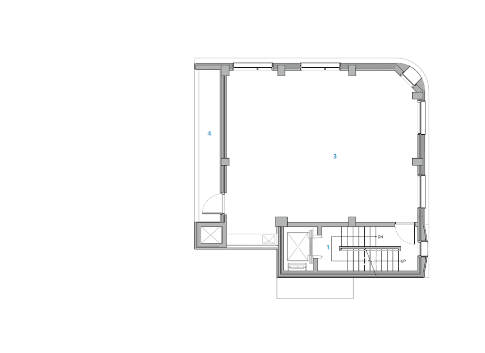 노후화 된 해당 건물을 처음 봤을 때 보존을 해야 할 요소가 많지 않다고 판단했고, 대수선은 기존의 뼈대와 전체적인 스케일감을 적정 부분 유지한 채 새로운 옷을 입히는 방향으로 결정했다. 이 건물의 가장 큰 특징 중하나는 입면의 네 부분이 모두 서로 다른 프로그램과 관계를 맺고 있다는 것이다. 가장 메인인 남측은 로데오 중심 가로와 면해 있었으며, 동측은 학교와 생활가, 서측은 인근 아파트 단지, 북측은 인근 다가구주택과 마주하고 있었다. 주재료나 형태는 주변과 동일한 매스감을 가지되, 각각의 입면은 서로 다른 입면을 가질 수 있도록 설계하여, 건축물이 가지고 있는 위치적 특성을 입체적으로 표현하고자 했다.