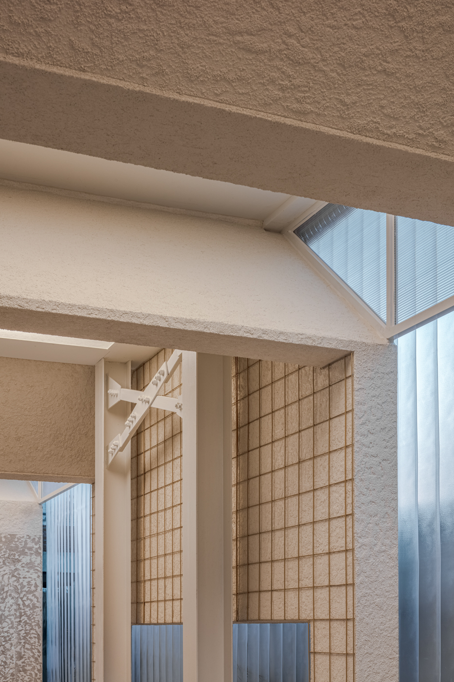 The north wing, where the café counter is located, is the only indoor space that is insulated and climate-controlled. The middle building was demolished on all but two sides and a metal lattice wall was installed in place of the existing walls to allow light to pass through. The ground was dug up to create a sunken garden, creating a courtyard where people can walk among trees and grass. The inner walls of the southern building were preserved while the outer exterior walls facing the central building and the park were torn down to create a space like a daecheong-maru[1] so that people could enjoy the surrounding natural scenery. On the east side, a single passageway was created to connect the three existing buildings, allowing visitors to experience the changes in each building