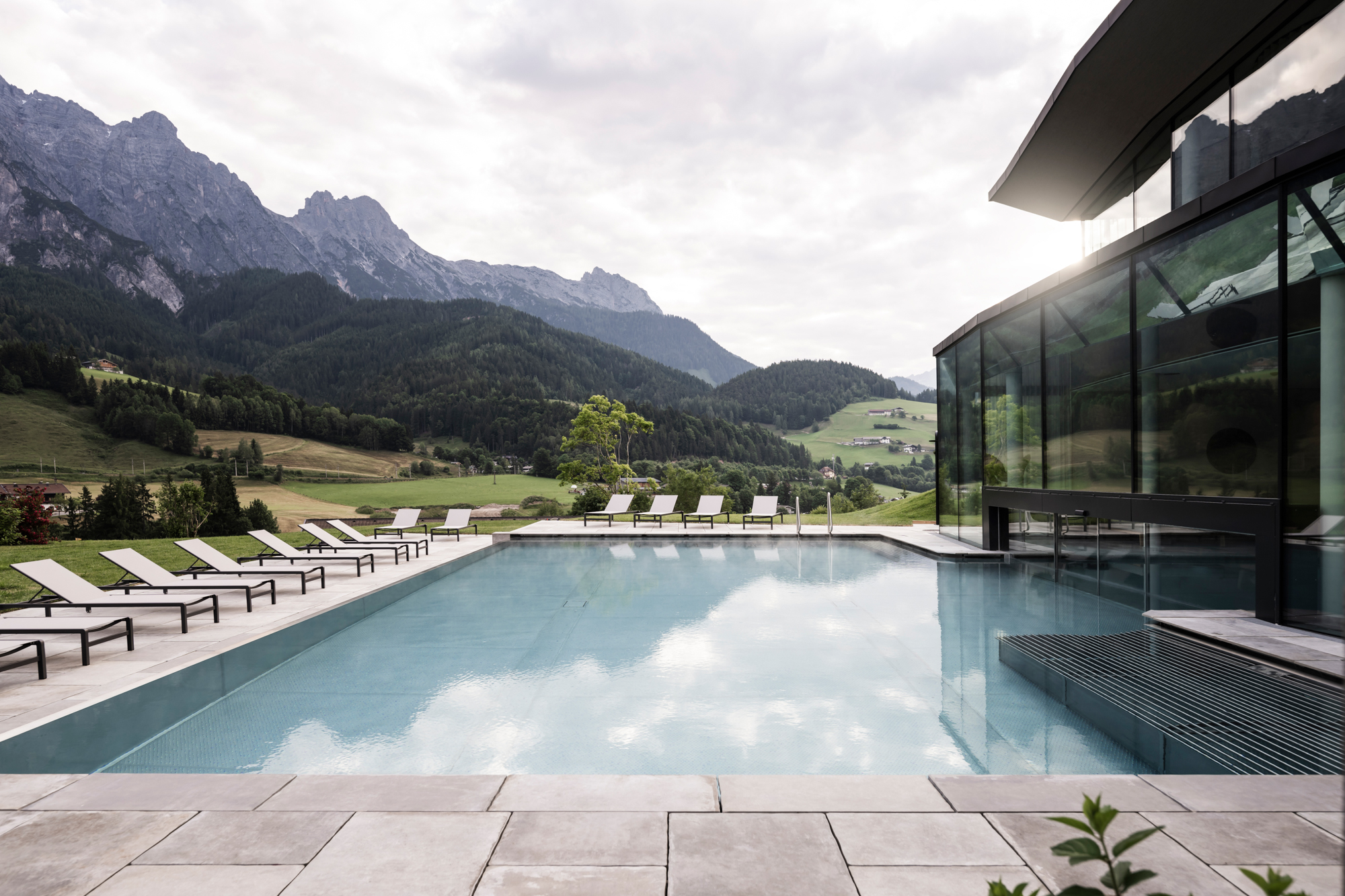 Puradies is a nature resort in Leogang, Salzburg, where panoramic mountain scenery, lush green meadows, small lakes and an abundance of fresh air add vitality. The family-run resort lives up to its name, offering heavenly facilities for relaxation seekers and sports enthusiasts. A former farm building with guest rooms has been converted into a resort and is now a haven for skiing, biking, and hiking enthusiasts to rest after a day in the mountains.