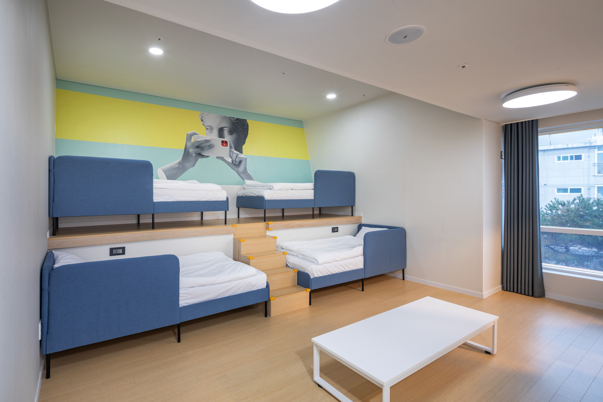 The atrium (Youth Hall), was inserted into the exterior space between the buildings to create an open, airy public space that would be appealing to youth. The playsteps inside the Youth Hall and the variable exterior walls connect the second level with the exterior seating and outdoor courtyard. Inside, the performance hall and recreation facilities were expanded into a large space connected as one, maximizing flexibility so that they can be used individually when necessary. The four areas of dance, recreation, office space, cafe/restaurant, and accommodation space were clearly zoned to ensure that the program functions smoothly. In particular, the dance performance hall is a space designed for professional performances, directing, and recording. The atrium, which regulates sunlight and wind, also affects the environment of each room and provides the optimal environment for youth to be active. The annex utilizes the mass (space) of the floating building by placing the seminar room in a place with a panoramic view of the Bukhangang River, providing the best view to enjoy nature.