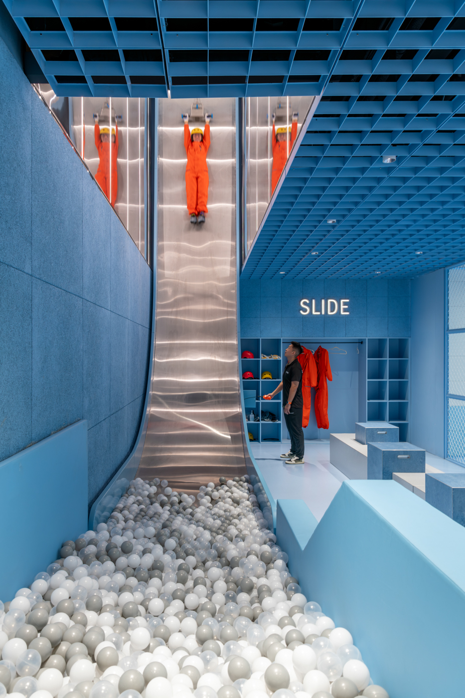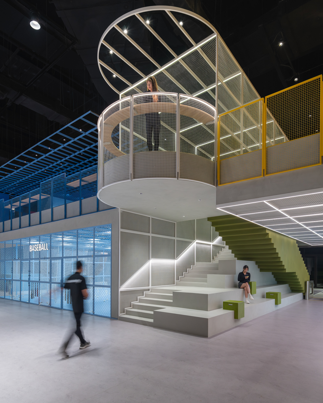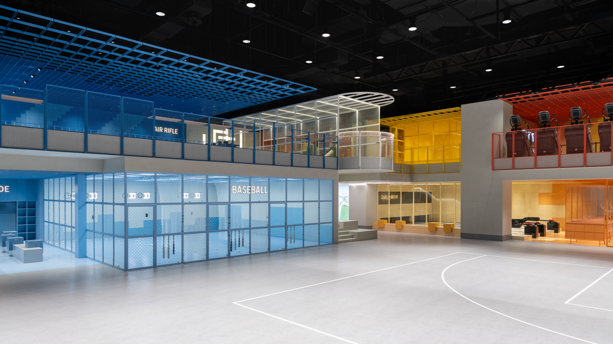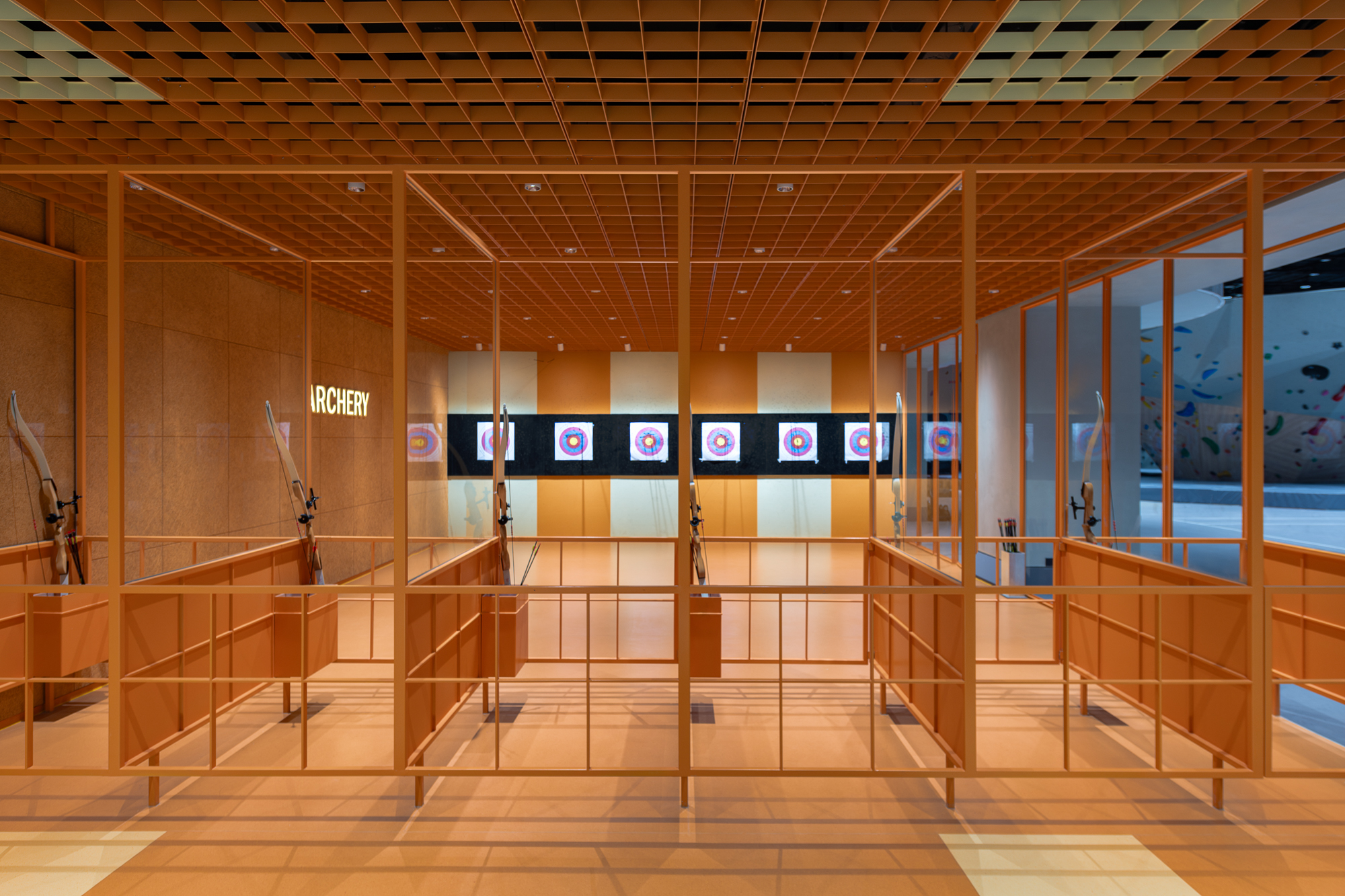 A cross between sports and entertainment, BeInfinity is a platform fulfilling diversified needs of training, playing, decompressing and even online content-sharing. Adopting a clear geometric order with bold colours and friendly materials, Lukstudio has created a playful escape, reminding every visitor their energetic and creative self while enjoying the beauty of sportsmanship. Drawing inspiration from the video game Tetris and the psychology of colour, each activity area is designed as a “dopamine block” that sets a certain mood. Energetic red is paired with the equipment gym; soothing blue is an ideal backdrop for the air rifle and baseball batting; joyful yellow is applied to ballgame areas. Apart from evoking emotions and inspiring reactions, the visual approach also helps with wayfinding, giving clear navigation guidance to visitors.