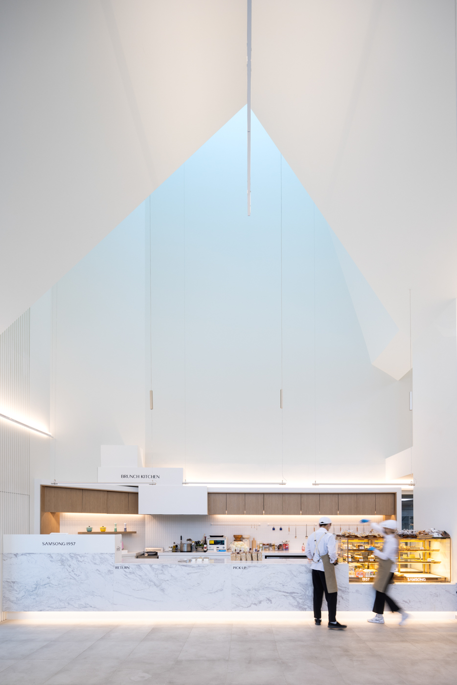 상업 건축의 가능성은 방문하는 사람에게 상상과 몰입감을 부여한다는 데에 있다. 주거, 업무 등 일상적인 공간과 건축에 비해 다름(차이), 낯섦, 동질적 공간감, 광장성에 대한 건축적 실험을 통해 사람들이 시시때때로 어떻게 반응하는지 여실히 담고 있다는 점에서 가장 촉각적이고 현대성을 지닌 건축이다. 외부의 건축 재료는 짙은 회색의 징크 지붕을 쓰고, 내부는 흰색의 벽과 천정으로 마감해 색감과 재질에서 극명한 대비를 담았다. 시간과 빛의 방향에 따라 크고 작은 그림자의 변화를 통해 시간의 흐름을 담은 풍부한 대비와 명암이 생기고, 열린 풍경을 만들어 낸다. 낮의 풍경에서 짙은 회색 징크는 자연의 흙빛, 유리의 푸른 빛, 프레임의 자유로운 연계를 통해서 하나의 커다란 인공의 자연을 은유한다. 그러나 밤이 되면 내부의 빛에 의해 내부적 풍경과 빛과 이벤트와 장소가 결합되면서 흰 빛의 캔버스가 밖으로 무한히 팽창하고 입체적인 흰색의 파노라마가 주변으로 확장된다. 부유하는 삼각형의 흰 공간들은 유기적으로 공간을 점유한다. 사람과 음식과 만남과 이벤트는 흰색의 입체적 공간에서 자유롭고 여유롭게 저마다의 개성으로 관계한다. 두 개의 천창과 높은 고측창에 들어오는 자연의 빛은 공간의 입체적 형태와 연계된다. 이 빛과 그림자의 공간을 찾는 사람들이 단순한 소비를 넘어 확장된 감정과 풍부한 상상을 경험하기를 기대한다.
