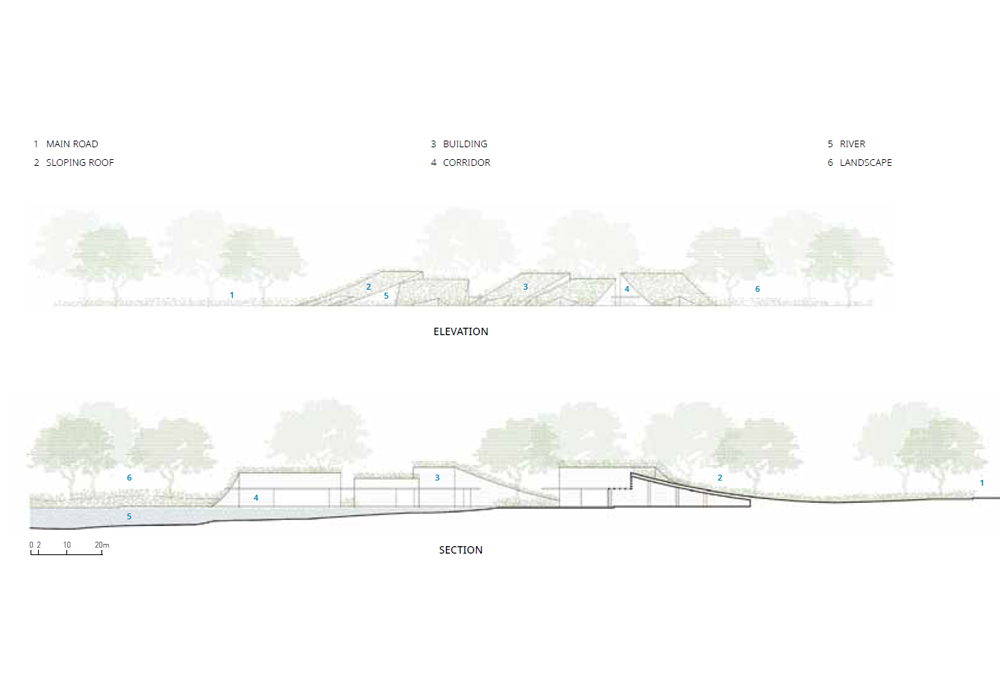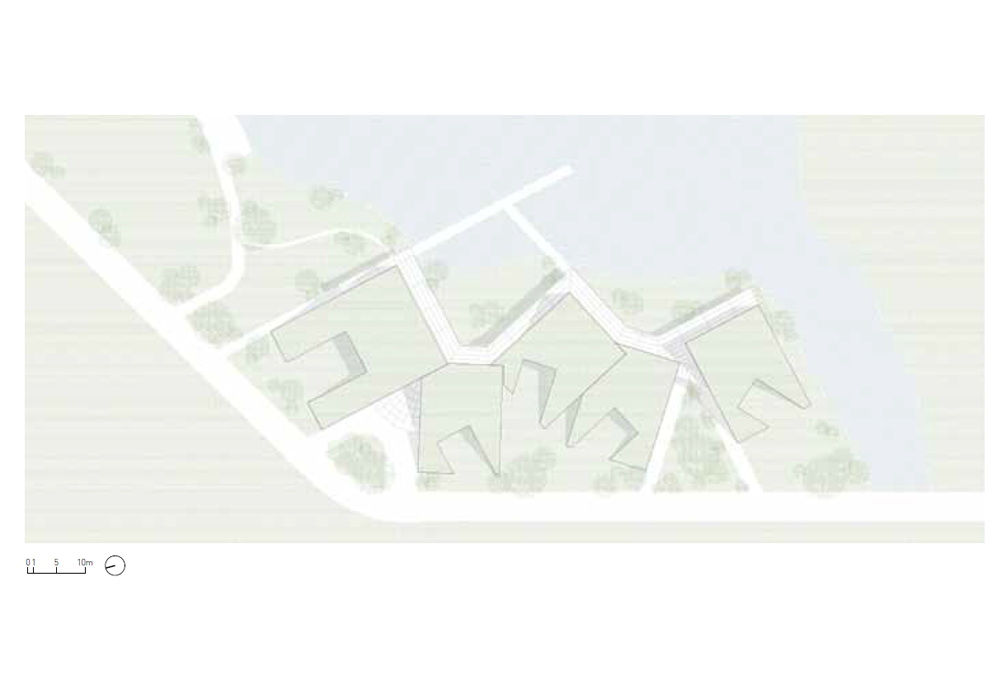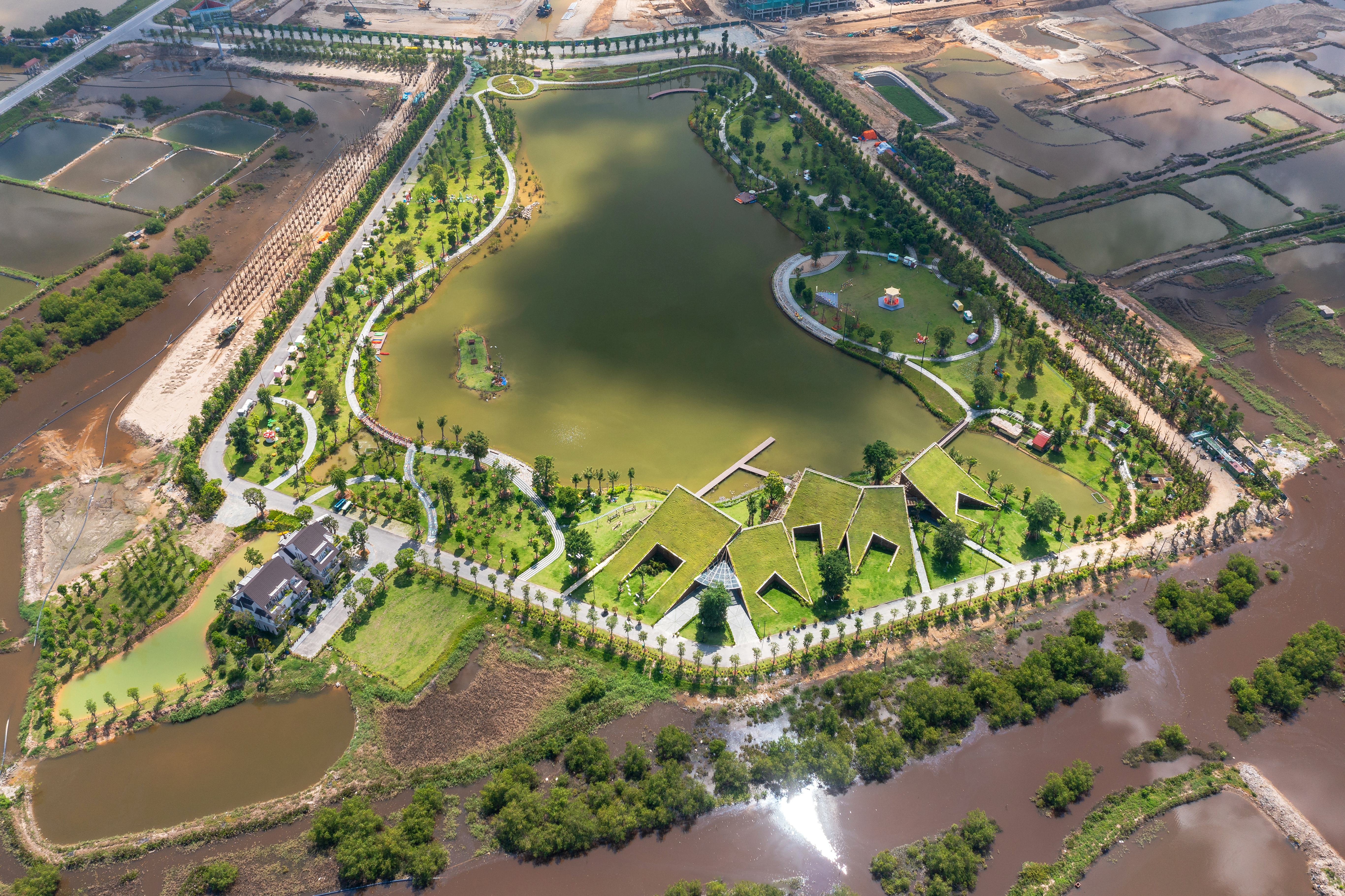 더 파크의 건물은 기능적인 영역을 섬세하게 확장하고 호수를 향해 시야를 두었고, 건축 블록 사이의 정교한 상호 작용을 통해 건물의 배치를 결정했다. 언덕 위 정원에는 열린 공간을 도입하여 열대 지방의 건축물에서 느낄 수 있는 자연적인 환경과 맑은 공기를 경험할 수 있게 했다. 조각적인 파사드는 건물의 미학을 향상시키는 중요한 특징이 되며, 인접한 호수 표면의 빛 반사와 결합되어 밤 시간에 매혹적인 느낌을 자아내는 랜턴과도 같은 이미지를 준다. 이러한 점을 통해 주변의 야간 조명 문제를 해결할 뿐만 아니라, 낮 시간의 햇빛으로 인한 눈부심을 2/3 정도 완화시킬 수 있다. 이러한 주변 경관과 건축에 대한 사려 깊은 융합을 통해 지역 사회와 도시 환경에 의미 있는 독특한 공간을 제공한다.
