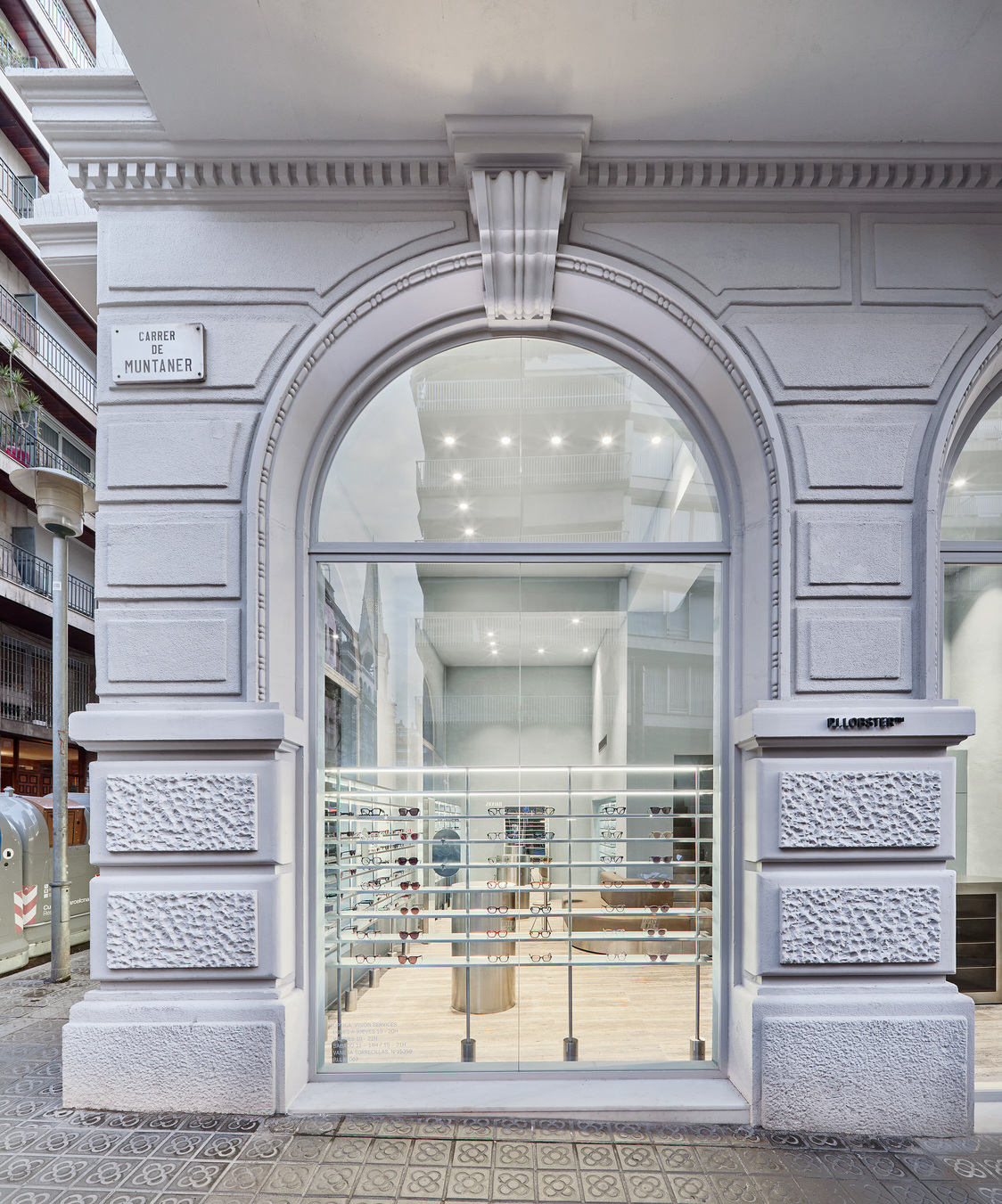 Following recent openings in Madrid and Barcelona, the architecture and interior design studio El Departamento launches the latest optical boutique for PJ. Lobster in the Eixample district of Barcelona. In an ancient noble building with eclectic Catalan style from the early 20th century, the space harmonizes the high-tech nature of the brand with a strong rationalist character, blending minimalism with substantial materiality. It is a dual space that embodies the maturity point El Departamento has reached.