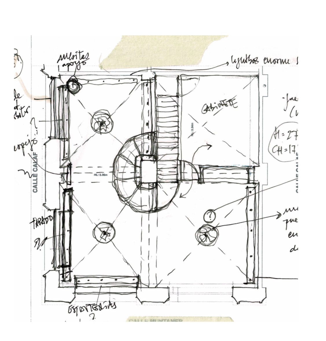 공간의 벽은 청회색으로 하였으며 역사적인 석회 모르타르로 코팅하였다. 역사적으로 이 지역에 있던 바르셀로나의 상류층과 귀족 가문의 집단적인 유대를 암시하는 듯한 건축학적 특징을 가지고 있다. 스테인레스 철제로 만든 가구, 거울, 선반과 계단에 이르기까지 하나의 거대한 덩어리로 통합되어 조화와 일관성을 이룬다. 공간이 갖고 있는 고귀함은 은색 석회 바닥까지 이어져 회색 빛 톤의 수직 표면, 천장, 철제 가구와 함께 조화를 이룬다.