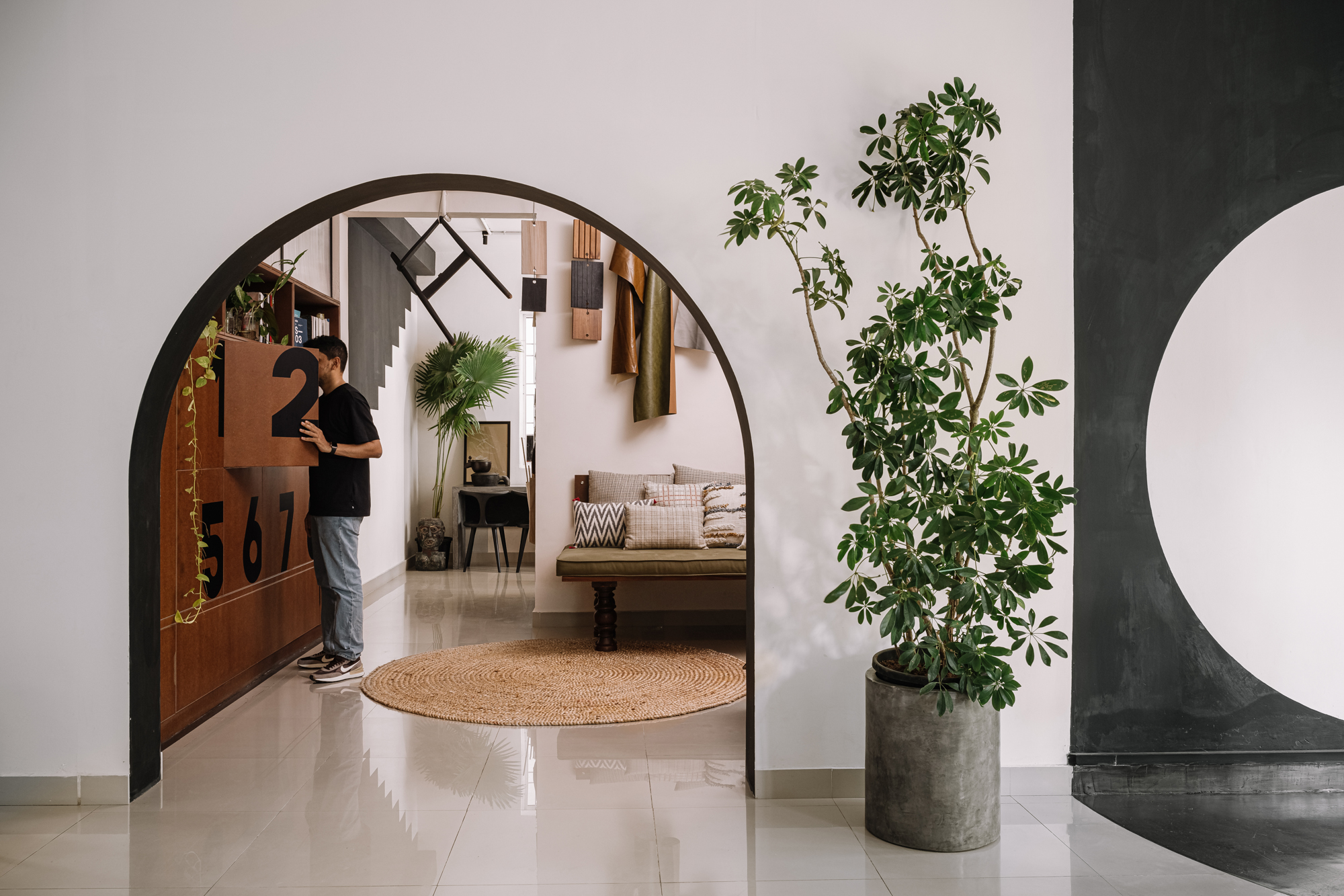 재료들은 지속가능성과 쓰레기 관리에 초점을 두고 이러한 미적 특질을 반영하기 위해 사려 깊게 선별되었다. 시멘트 콘크리트, 고밀도 섬유판, 그리고 연강봉은 그들의 다용도성, 내구성, 그리고 환경적인 이점들로 선택되었다. HDF로 만들어진 샘플 보관 보드는 지속 가능한 디자인에 대한 스튜디오의 헌신을 나타내는 중심적인 특징이다. 스튜디오의 혁신, 영감, 영향의 기질을 구현하는 역동적이고 촉각적인 중심축 역할을 한다. 100여 종의 열대 식물 화분을 창의적으로 통합함으로써 구성원들의 웰빙을 증진시킬 뿐만 아니라 사생활 보호, 분위기 개선, 공기의 질 및 자연적인 소리 흡수에도 기여한다. 스튜디오에는 시멘트 산화 마감이 된 독특한 240cm x 120cm 크기의 페로시멘트 테이블이 특징으로 있어 협업을 촉진하면서도 개인 작업 공간도 가능하다. 자연 환기 및 공기 정화 식물을 활용해 에어컨 사용을 최소화해 에너지 소비를 대폭 줄였다.