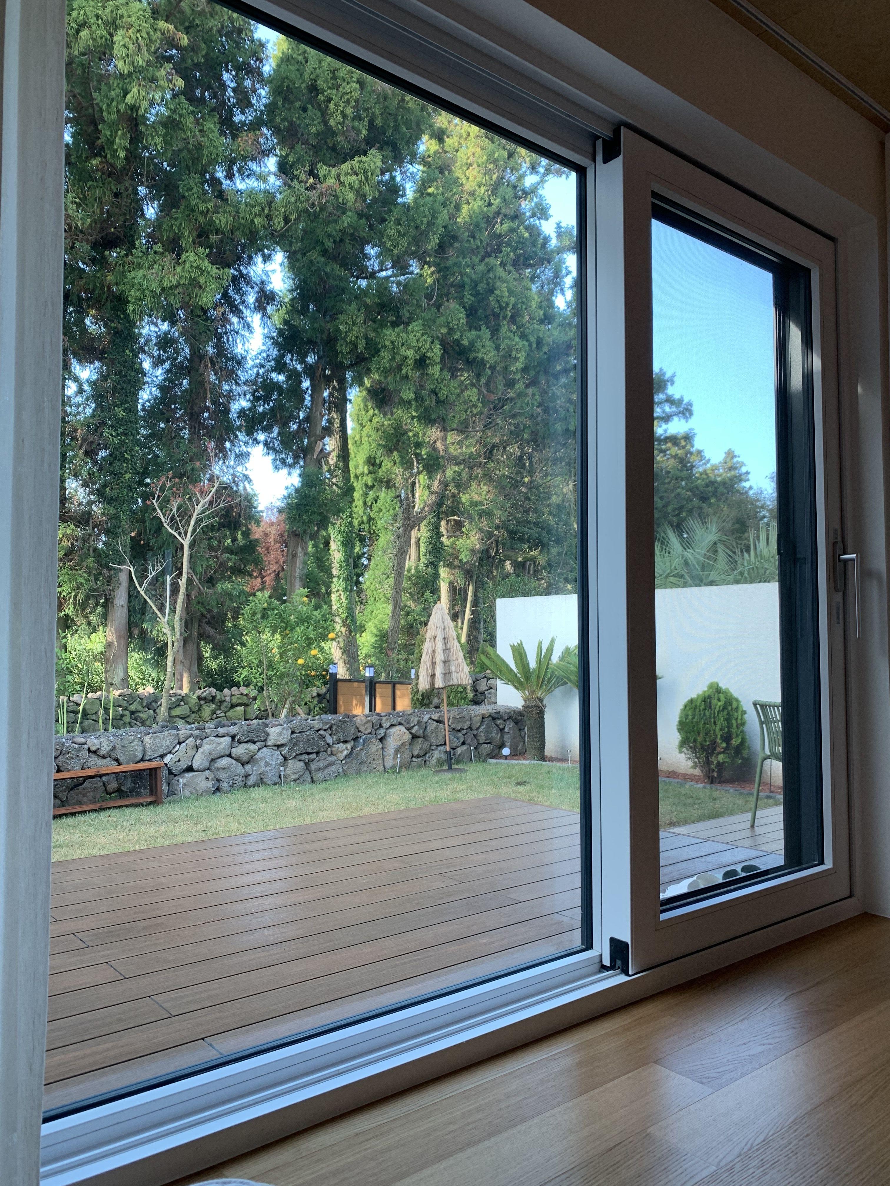 3가구로 구성된 다가구주택으로 주택의 특성상 세대별로 프라이버시를 유지하면서, 제주의 자연을 품을 수 있는 계획이 관건이었다. 설계적 장치로 각 세대를 벽과 자연으로 분리하였다. 개인 마당을 만들고, 귤밭과 제주 돌담의 디테일에 평면을 분해하여 실별, 세대별 간격을 벌려, 각 세대의 외피 면적을 늘렸다. 벽과 실들 사이에 생성된 ‘사이 공간’으로 새로운 풍경이 연출되고, 공간 사이의 마디로 리듬을 부여하였다. 만들어진 ‘사이 공간’은 도시에서 느낄 수 없는 마당으로 숨 쉬는 공간이다. 건축주는 ‘사이 공간’과 ‘구석’이 많고 거실과 안방 사이에 물의 요소인 POND(연못)를 설치하였다. 두 공간을 연결하는 복도 알코브 공간에 연못에 마주하여 책을 읽을 수 있는 미니 서재를 만들었다. 후정 쪽 사이 공간에는 남쪽 귤밭의 밝음과 대비되는 서늘한 음의 공간을 만들었다. 휴식 공간은 야외 가든파티, 다양한 이벤트를 할 수 있는 후정 데크와 연결된다. 내부에서 체험하는 풍경의 변화는 거주자에게 지루함을 없게 하고 창의성에 자극을 줄 것이다. 공간 사이에 생성되는 변화 풍경이 무의식적으로 적재되어 ‘공간에서의 모차르트 이팩트’가 된다. ‘제주 하뭄’은 신체적으로나 정신적으로 삶의 풍요가 생성되는 건강 주택이다. 그뿐만 아니라, 펜션 방문객은 도시에서 느낄 수 없는 자연의 구석들을 기억으로 담고 갈 것이다. ‘제주 하뭄’에 방문한 사람들은 경쾌함의 기억을 몸에 각인하여, 도시 생활에서도 그 풍요로움을 연장한다.
