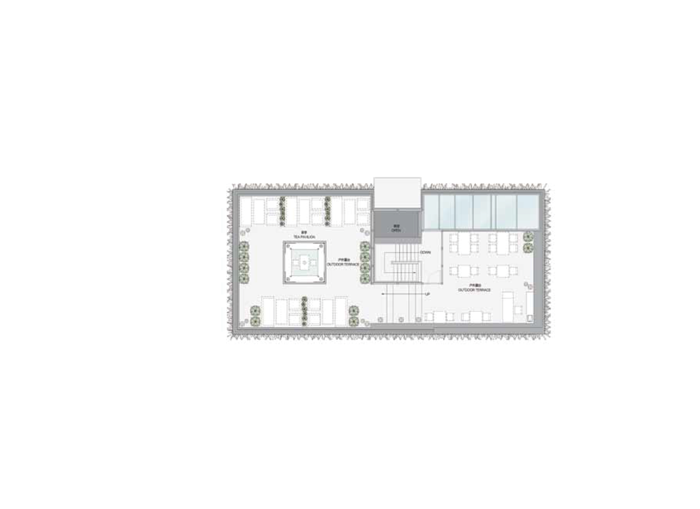 블루레이크 티하우스는 리두 가든(Lidu Garden)의 북문으로 들어서서 서측으로 펼쳐진 호수를 따라 길게 이동하여 만날 수 있는 위치에 자리잡고 있다. 북측에 마련된 새로운 문이 열리면, 기존에 설치되었던 남측 문은 서비스 입구로 사용하여 방문객에게 ‘입장식’의 경험을 부여한다. 구불구불한 길은 사람들이 긴 시간 동안 걸으며 티하우스에 대한 감정을 느끼고 이어질 경험에 대한 준비를 할 수 있는 여유를 준다. 건물 자체에 초점을 맞춘 새로운 입면 디자인은 주변의 경관을 하단으로 밀어내어 건물과 수평이 되고, 바깥으로 밀려나 주요 구조물 사이의 부드러운 분리를 만들어냈다. 건물에 설치된 2m 폭의 플랫폼은 복도의 형태로 뻗어 있으며, 그 주변으로는 일본식 정원처럼 자갈과 물, 돌이 고리를 이루어 마치 호수 위를 떠다니는 섬과 같은 자연적인 풍경을 제공한다. 건물의 코어에는 하늘의 빛을 투과시키는 열린 유리 지붕으로 이루어져 풍부한 자연광을 건물 안으로 들이며, 벽면에 설치된 5개의 창문은 빛을 통해 야외의 풍경과 더불어 건물 내의 사람과 자연, 공간을 엮는 역할을 한다. 베이지, 그레이, 우드톤의 내부 마감, 나무 그릴로 단단히 연결된 내부의 계단, 불규칙적인 배열의 철망 램프와 같은 요소는 단순하면서도 강력한 구성 요소가 되어 아늑하고 쾌적한 실내 공간의 분위기를 만든다.