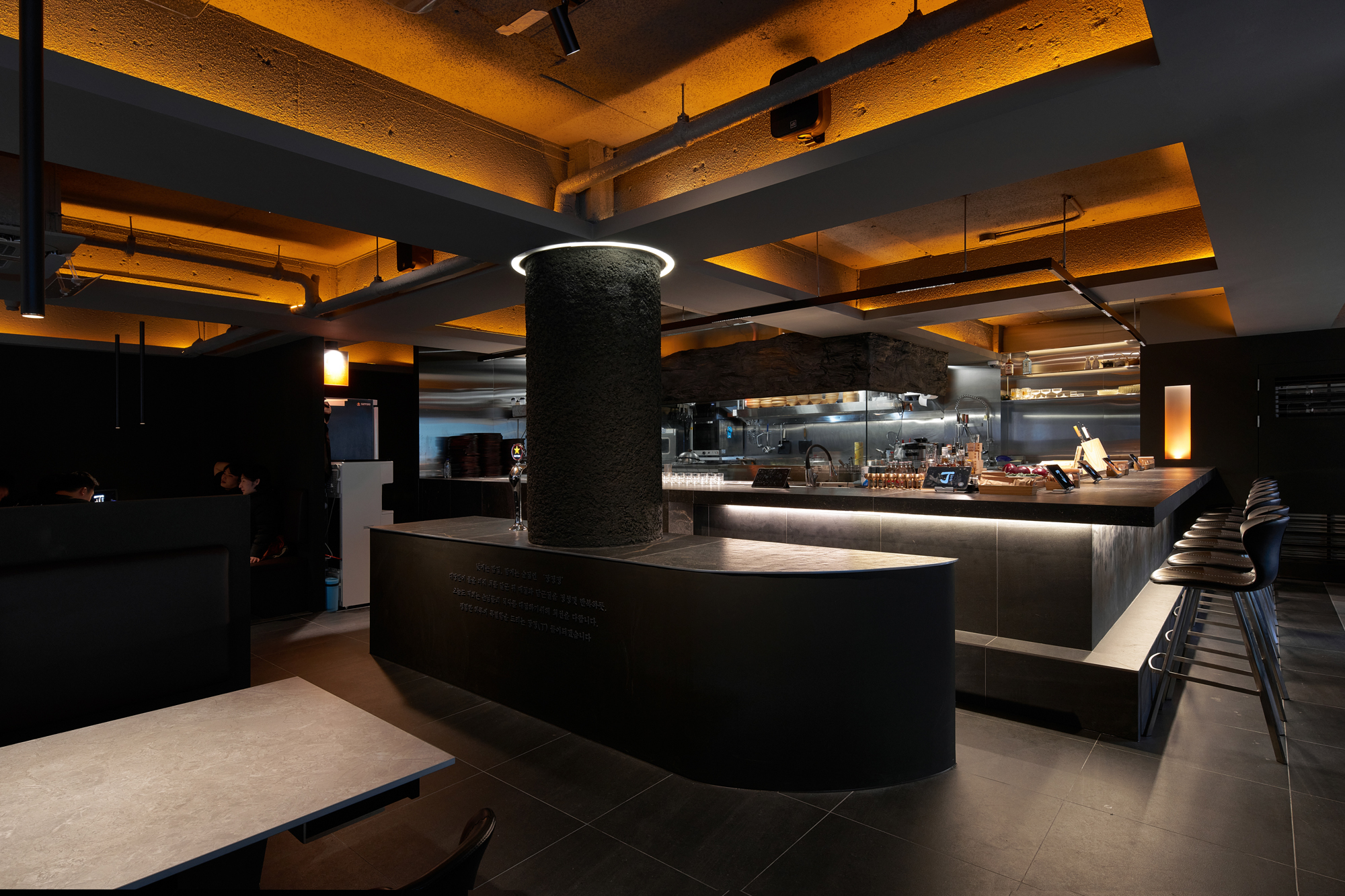 ‘장정정’이라는 이름을 들으면 젊고 기운 좋은 남자들이 일하는 모습과 열정 가득한 장정들이 모인 주방에서는 칼과 불을 사용하며 맛있는 요리를 준비하는 모습이 연상된다. 이러한 특성을 반영하기 위해, 아틀리에소우는 장정정을 연상시키는 재료를 사용하여 ‘대장간’이라는 콘셉트로 공간 디자인을 진행했다. 구조와 가구, 마감재에서 느껴지는 모습은 장정정의 아이덴티티를 건축 외관부터 내부 구조, 가구까지 그 정체성이 드러날 수 있도록 시각화했다. 공간에서 그들의 정직한 마음, 열정 가득한 마음을 방문한 손님들께 고스란히 느껴질 수 있는 모습을 상상했다. 그 상상은 장정정의 바테이블에서도 힘껏 표현된다. 불과 쇠, 열기의 조합은 우리가 나아가는 방향성에 있어서 중요한 요소가 된다. 이처럼 불, 쇠, 돌이라는 물성을 가진 물체들이 하나로 교차하는 지점에서 장정정의 이야기가 완성된다. 장정정 선릉점을 찾는 고객들에게 장정정의 맛과 함께 공간이 주는 이야기를 전달하고, 소통하며 방문해주신 분들에게 새로운 감동을 주는 장소가 되길 바란다.