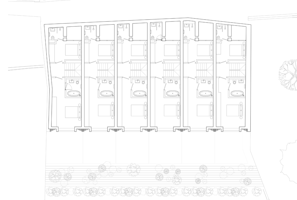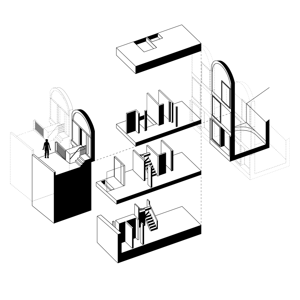 아치는 런던 북서쪽에 있는 다트머스 공원 보존 지역에 있는 6개의 계단식 타운하우스 단지다. 그 장소는 우리가 생각하기에 런던에서 가장 아름다운 조지아식 테라스 중 하나인 유명한 작은 숲 테라스에서 바로 아래에 있다. 우리의 초기 디자인 아이디어는 하이게이트 로드를 따라 펼쳐진 녹지 공간의 역사적인 녹색 폐에서 영감을 받아 만들어졌으며, 캠든과 처음 논의한 것은 이 부지의 양쪽에 있는 두 개의 열린 녹지 공간을 다시 연결하는 것이었다. 이것은 녹색 폐를 1873년의 상태로 되돌리는 것을 의미했다. 미래지향적인 빅토리아 시대의 환경을 되살려 보자! 이 새로운 녹지공간은 하이게이트 로드에서 단층으로 보이는 6개의 마구간 같은 집 뒤에 제안된 건축물을 위한 완충재 역할을 하며, 거리에서 바라볼 때, 끊기지 않은 선명한 녹색 선을 보존한다. 이 주택들의 출입구는 빅토리아 시대의 건축미를 돋보이게 하기 위해 '칼리지 레인'에 있다. 게다가 이 도로를 따라 남쪽으로 더 멀리 떨어진 다른 오래된 역사적인 주택들과 어울리게 하기 위해서다.