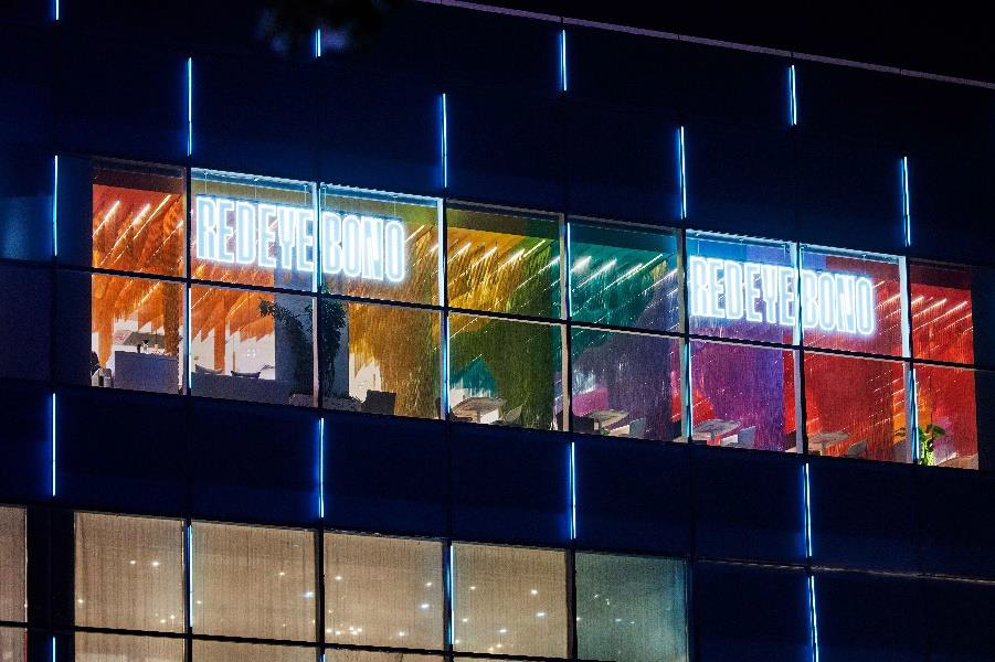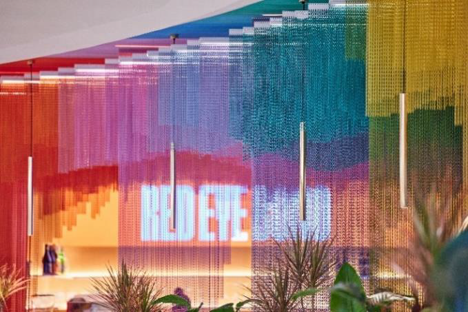 시선을 사로잡는 거대한 '무지개'가 풍부하고 선명한 색감으로 천장에서 흘러내리며 꿈같은 몰입감을 자아낸다. 커다란 예술작품을 안은 채 식사를 즐기듯 식사 공간을 감싸며 손님들에게 특별하고 기억에 남는 경험을 선사한다. 레스토랑이 제공하는 대륙 음식과 그 장소의 환경에서 나오는 풍부한 자연광에서 영감을 얻은 디자인이다. 우리 팀은 손님들이 창가에 앉아 햇빛의 따뜻함과 편안함을 만끽하기를 기대하며 지중해의 밝은 햇살을 모티브로 삼는다. , 투명, 굴절, 유동성은 다시 팀의 대표 디자인 언어로 사용되며 시적으로 화려하고 반투명하며 환기를 시키는 분위기를 구성한다.