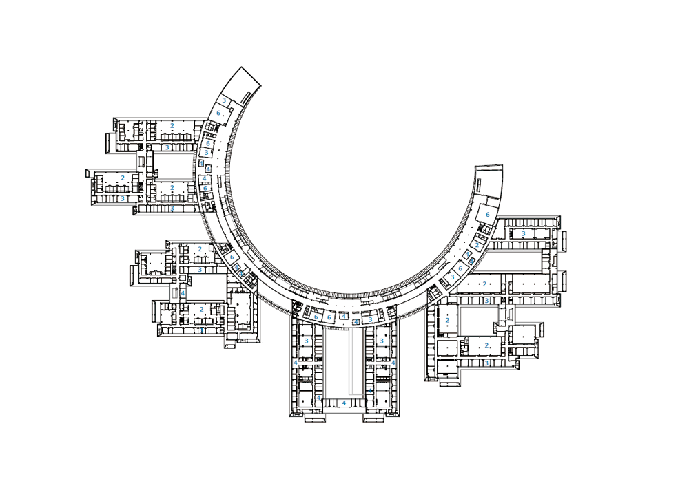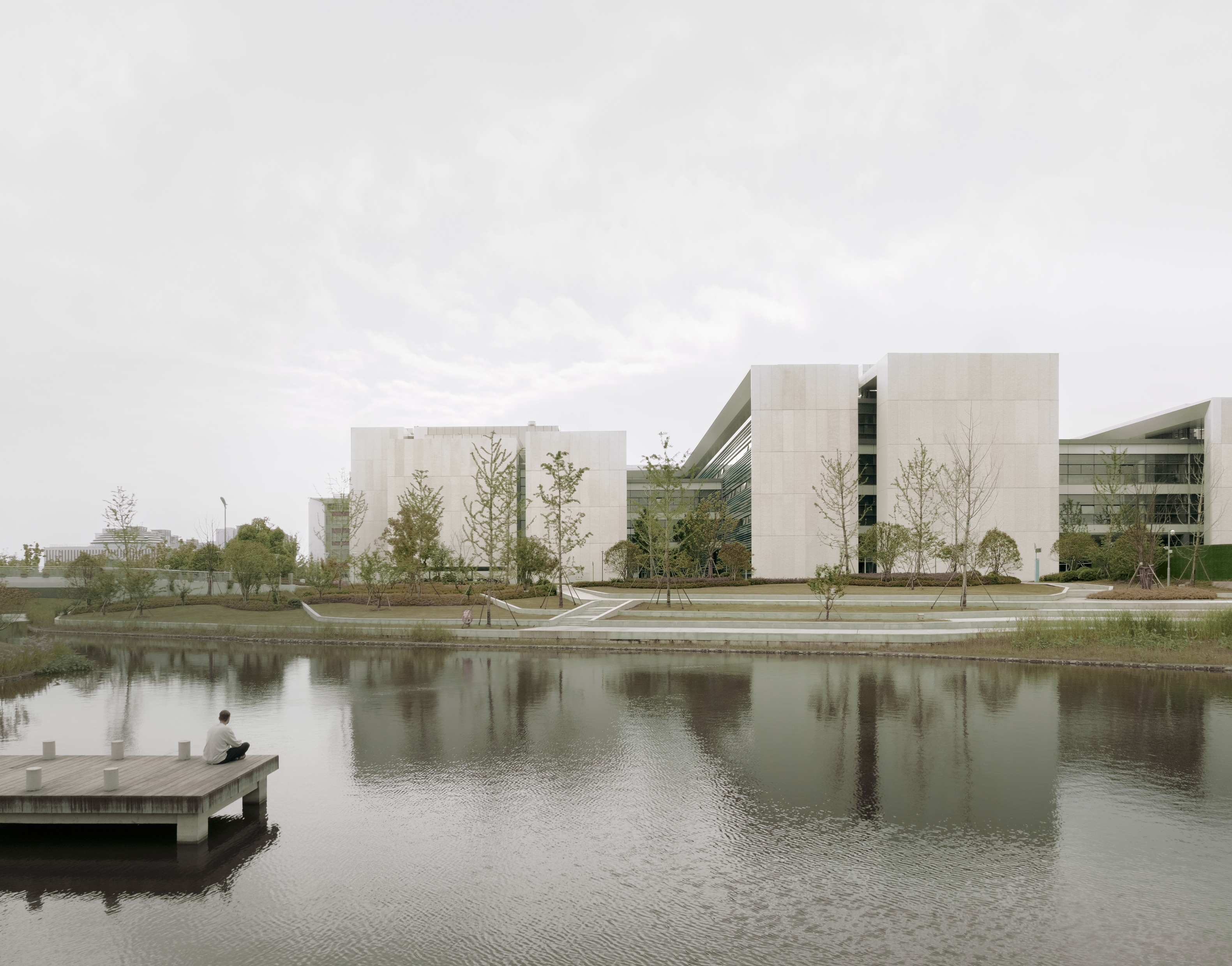 건물은 프리캐스트 콘크리트 틀로 엇갈린 직사각형 유리로 구성되어 다채로운 분위기와 맞춤형 프로그램으로 패턴을 이루고 있다. 안쪽에 위치한 건물들은 연결과 학제 간 교류를 촉진하기 위해 학술적인 순환을 이루는데, 이는 대학 내의 지적이고 긴밀한 사회를 형성하는 핵심이 된다. 역동적인 3층 높이의 공간은 연결된 건물들을 통해 안팎으로 파노라마 뷰를 제공한다. 건물의 원형 형태는 많은 수의 공동 공간, 회의 공간, 세미나실, 실험실을 포함하고 있다. 이 원형의 중심에는 사회적인 교류를 지원하는 아름다운 중앙 정원이 마련되어 있다. 캠퍼스 건물은 고요한 수로로 둘러싸여 있으며, 수로에 놓인 12개의 다리는 학생과 교직원을 위한 독립적인 기숙사로 이어지게 한다. 캠퍼스의 외부를 이루는 생활 고리는 상점, 매점, 스포츠 시설 등이 둘러싸고 있어 캠퍼스를 하나의 도시처럼 변화시킨다.
