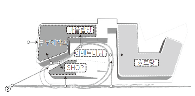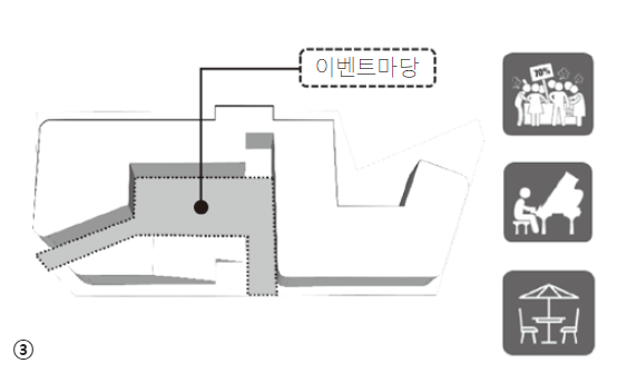 ③ 마을을 향해 개방된 다목적 이벤트 마당 조성