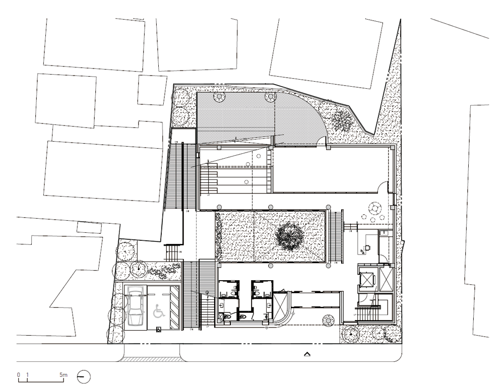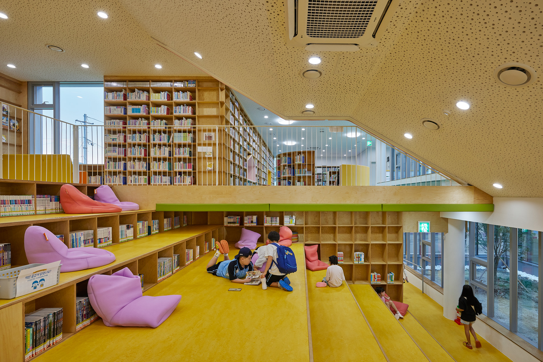 유기적인 공간 구성의 흐름을 바탕으로 설정된 ‘커뮤니티 루프’라는 개념은 도서관을 순환적 공간으로, 하나의 건축 안에서 유기적으로 활동이 이어질 수 있는 공간으로 만들었다. 남해의 지리적 특징인 다랭이논을 재해석하여 만들어진 다양한 레벨의 공간은 남해 화전 어린이도서관만의 정체성을 보여준다.