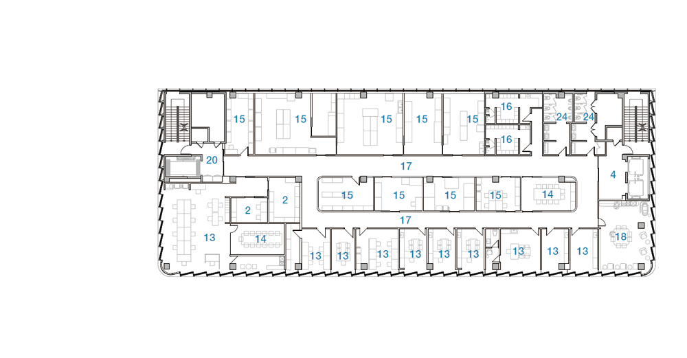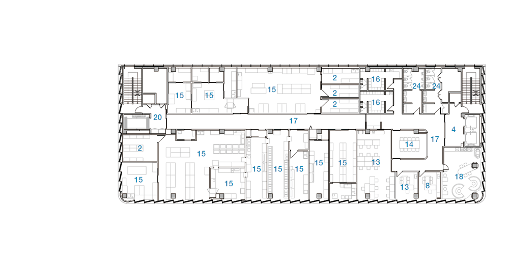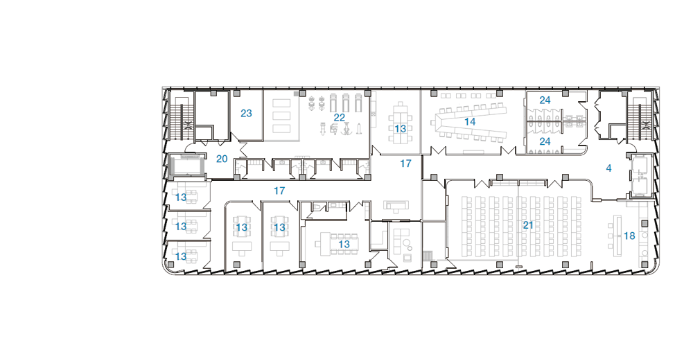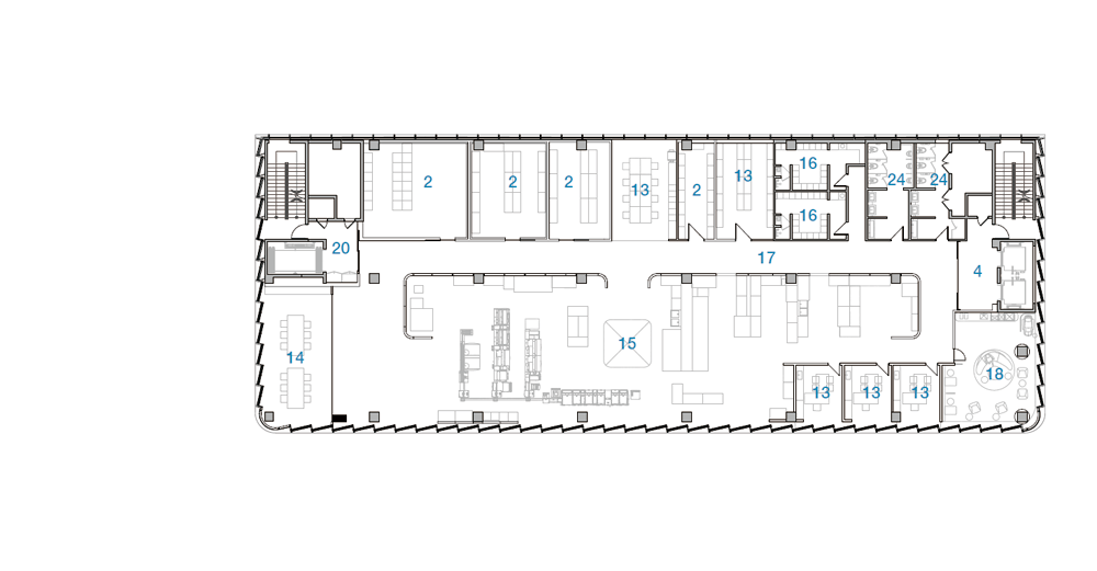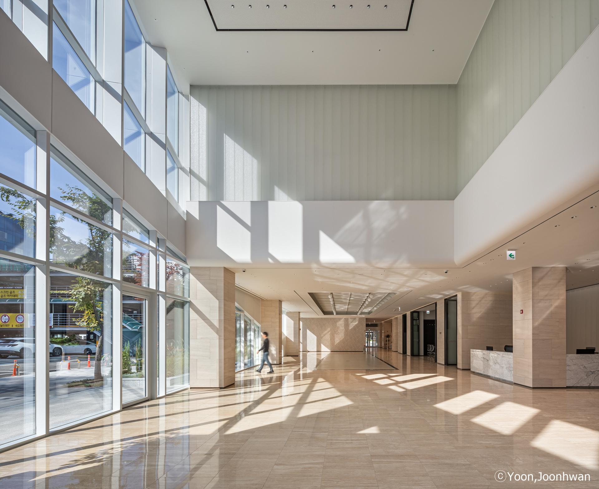 준공된 사옥의 두 가지 외부 재료는 백색 알루미늄 시트와 유리이다. 공공 보행 통로를 중심으로 유동 인구가 많고 접근성이 좋은 코너를 오픈하여 인지도를 높이고 자연스럽고 편안한 동선을 유도하였다. 내부 진입시 경험하는 개방된 로비 공간은 기존 슬라브와 보를 철거하여 개방된 공간을 확보하였고, 극적으로 대면하는 기업의 첫인상을 제공한다. 또한, 남·서·북측으로 사선 커튼 월과 곡면 유리, 경관 조명 적용하여 주·야간으로 다양한 도시 경관을 고려하였다. 사선 커튼 월을 설치하기 위한 과정에서 건축 한계선을 지키기 위해 기존 캔틸러버 보와 수벽, 슬라브 등 돌출 부분을 50cm 철거하고 개방감 있는 유리 커튼 월 방식의 새로운 파사드를 적용하였다.