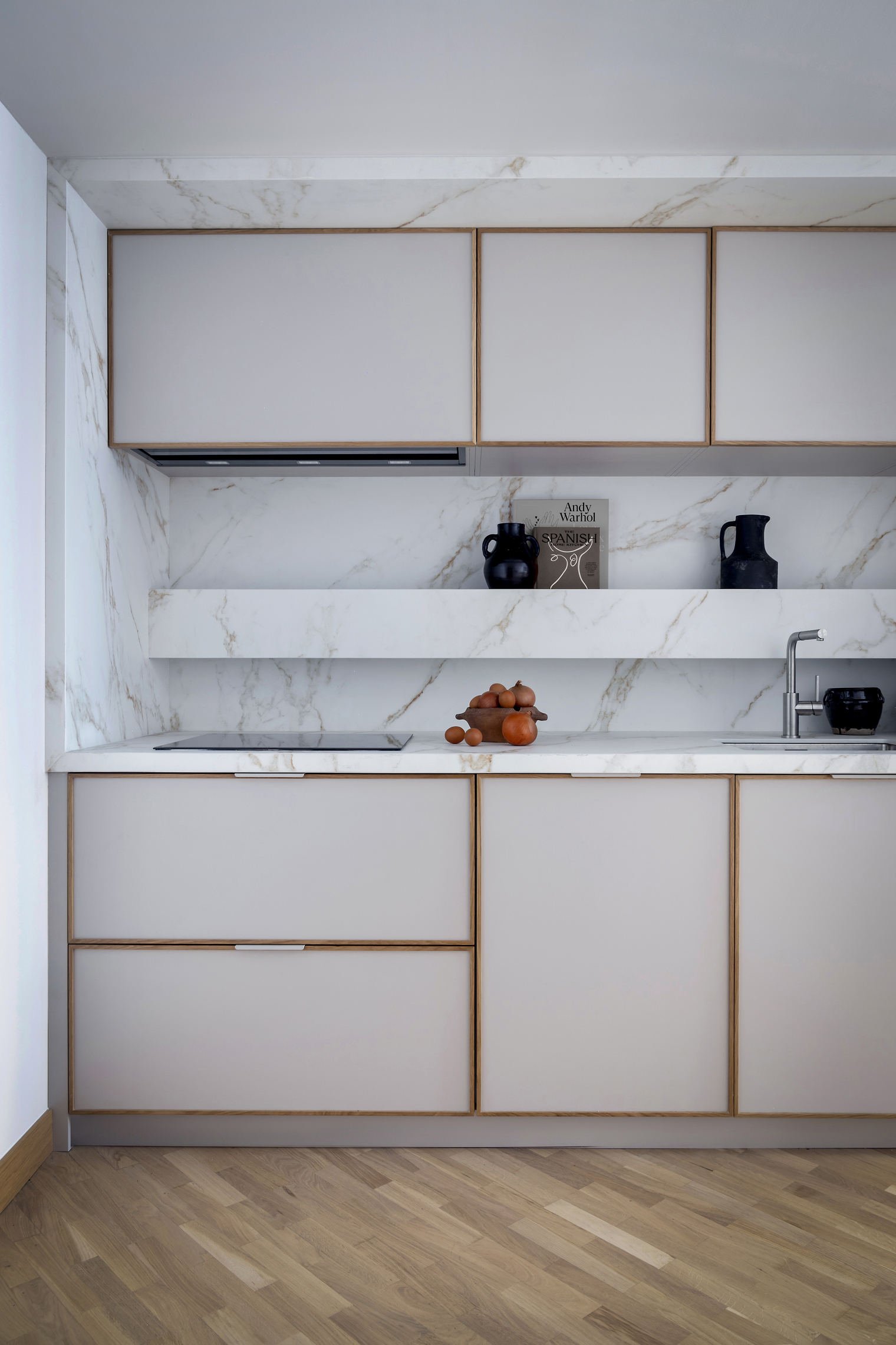 Valencian architecture and interior design studio Viruta Lab has infused its essence into the restoration and the redesign of a small 55.80 m2 apartment in the Salesas district of Madrid, drawing inspiration from the verses of José Bergamín. In his poem 'Anocheció Madrid,' the 20th-century Madrid-born author pays homage to the city's nocturnal facet. This influence has been captured by Viruta Lab's founders bringing it to life in every corner of this 1980s-built apartment. Originally, this compact space retained the characteristic dimness of the fragmented and partitioned homes of its time. Its natural wooden floors echoed with the nostalgic creaking of the past. Viruta Lab has removed opaque partitions, inviting natural light to envelop the interior. Additionally, the studio has crafted a transparent glass filter, reminiscent of 1950s private clubs, not only dividing the resting area but also expanding views and enhancing overall luminosity. Bergamín's verses are palpable in the ice urn and black velvet diamond, elements vividly described in his poem.