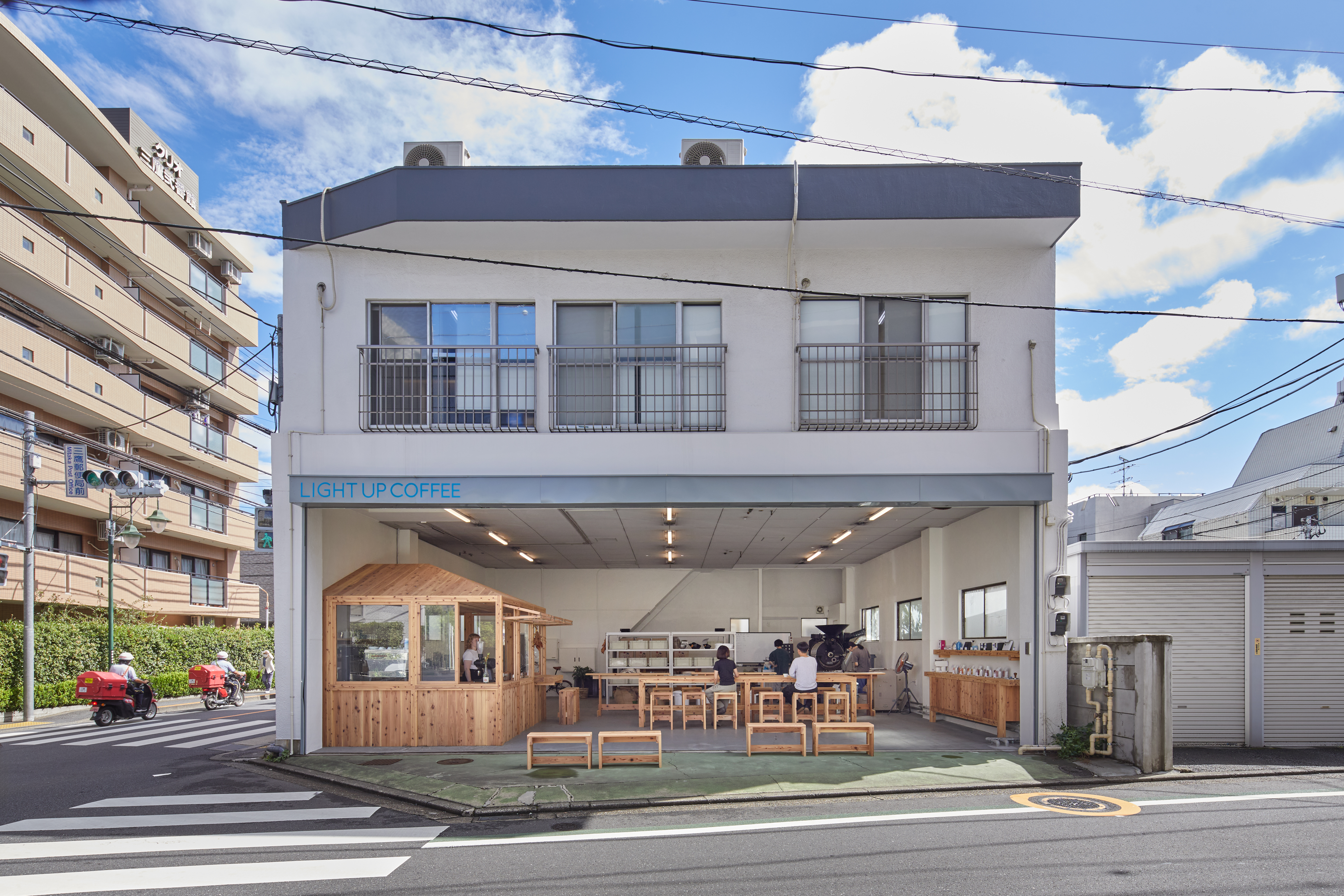 LIGHT UP COFFEE 가게는 오래된 자동차 정비소를 로스터리로 사용할 수 있게 리모델링 한 것이다. 1층은 로스팅 공간 겸 카페로 앉아서 커피를 즐기거나 진열된 원두를 둘러볼 수 있는 공간이 넉넉하게 자리잡고 있다. 건물 2층은 포장이나 배송, 제품 관리를 위한 공간으로 사용된다. 처음에 LIGHT UP COFFEE의 카와노 씨가 1960년대 빈티지 독일산 로스팅 머신 'Probat UG22'를 구입했다고 연락이 왔다. 커피에 대한 관심과 이에 어울리는 공간을 만들고 싶다는 그의 말에서 낭만이 느껴졌다. 로스팅 공간과 카페 사이에 벽을 두지 않아 생원두부터 로스팅 작업 및 커피가 내려지기까지의 모든 과정을 지켜볼 수 있다.