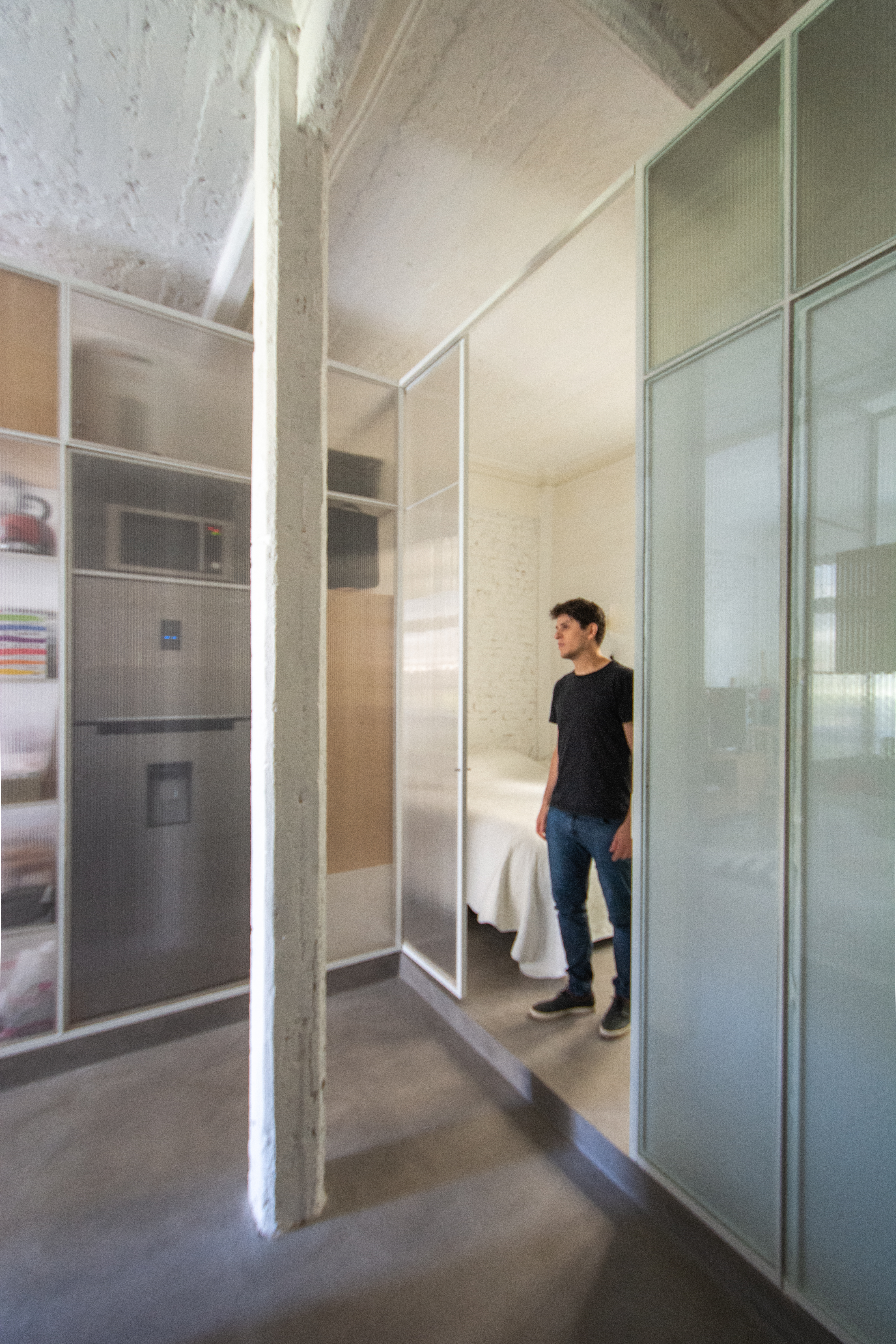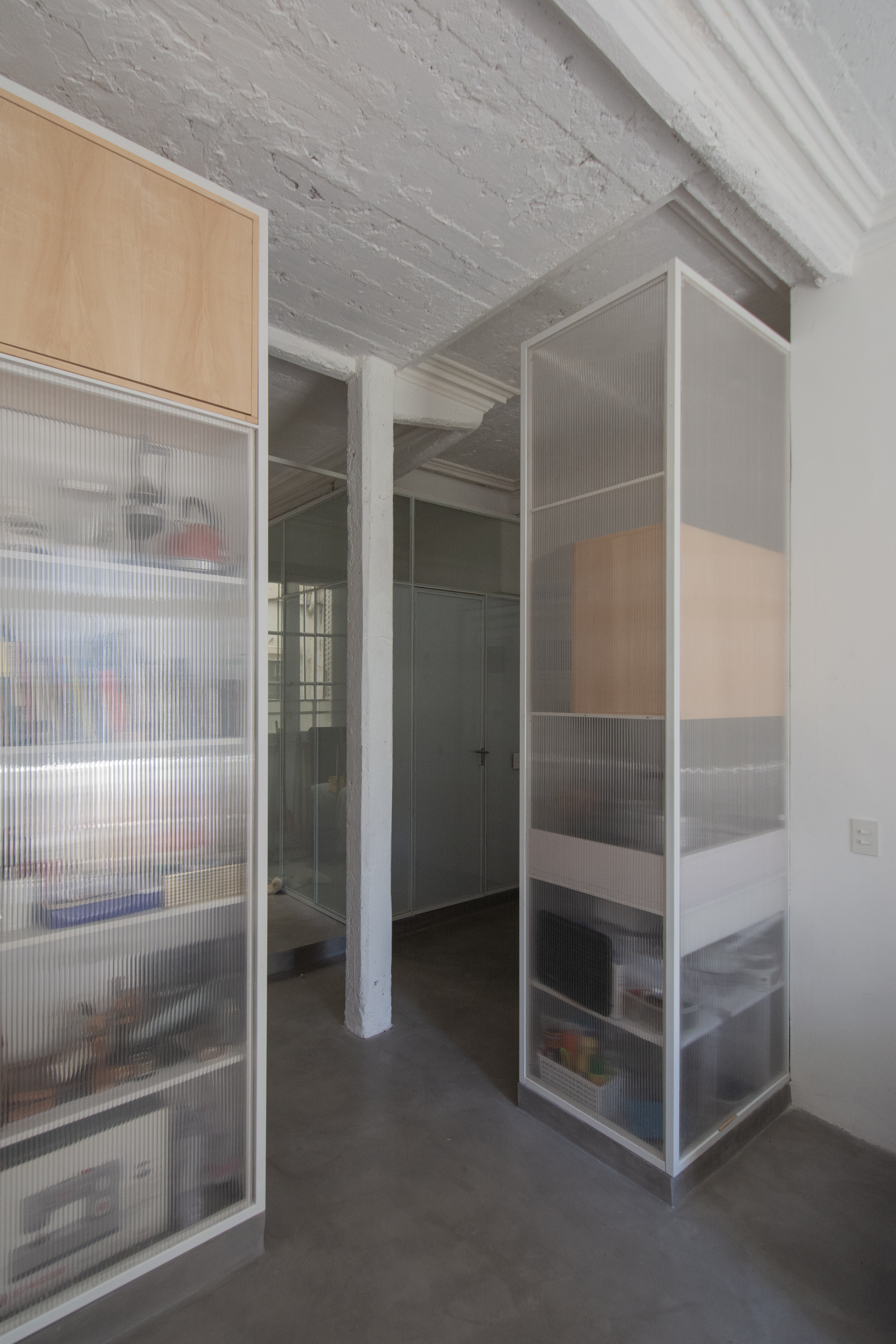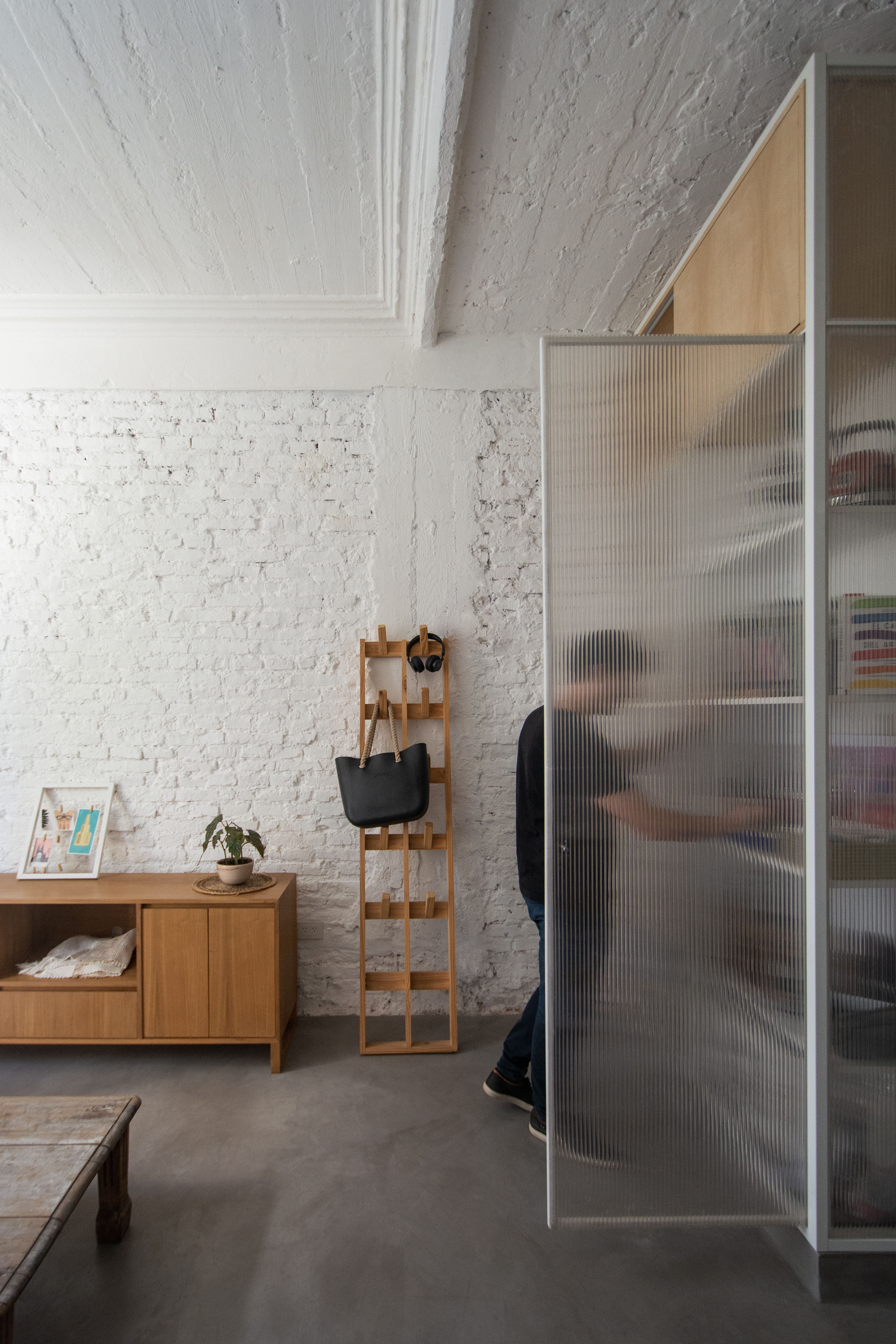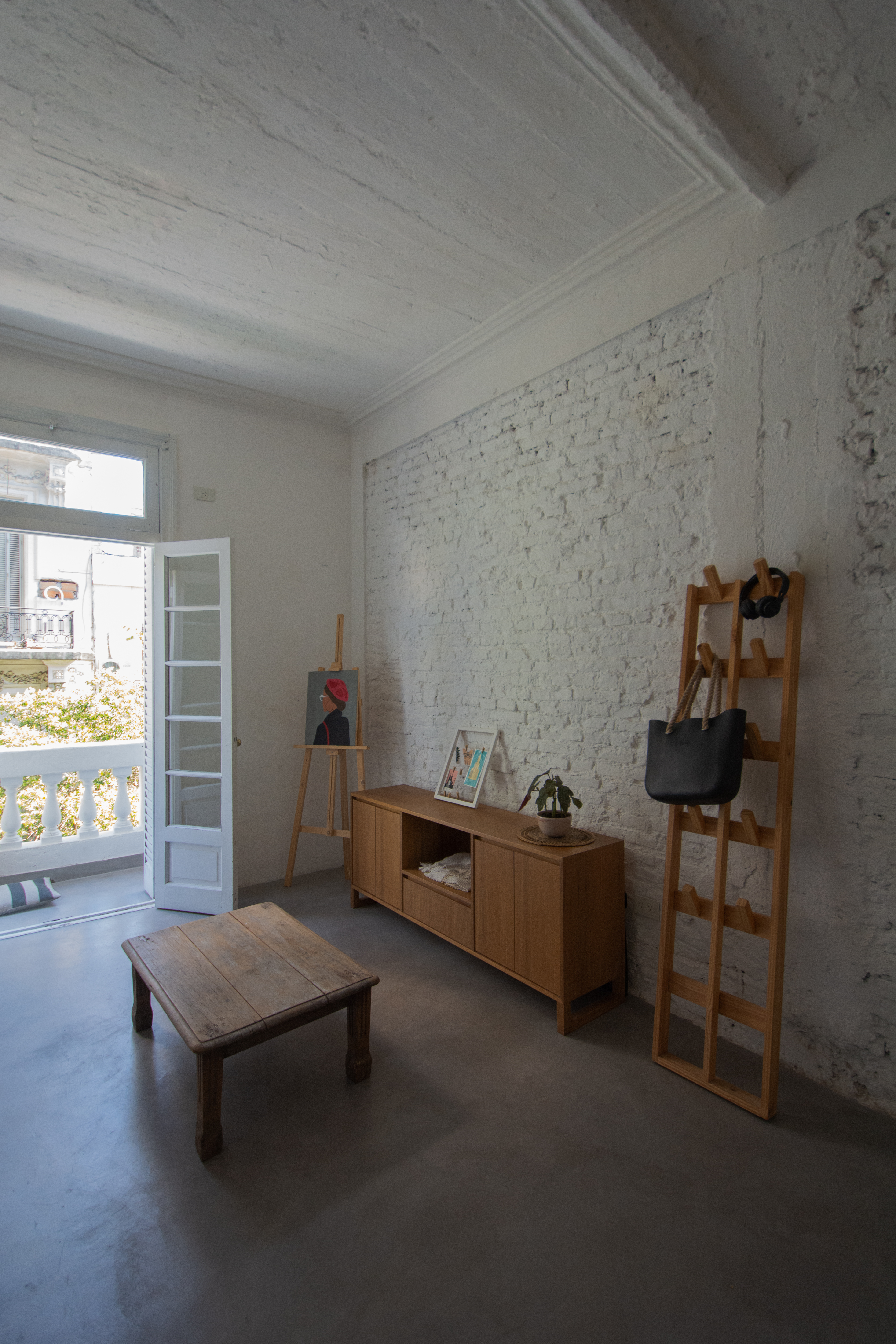 The intervention is carried out in a 32m2 apartment in a heritage-listed building from the 1930s in the Balvanera neighborhood, in the Autonomous City of Buenos Aires. The preexisting organization of the unit presented a series of poorly articulated rooms, so work was done with the objective of maximizing the entry of natural light throughout the unit and recovering the footprint of the original project, while adapting to the modes of contemporary living, like living and working in the same space.
