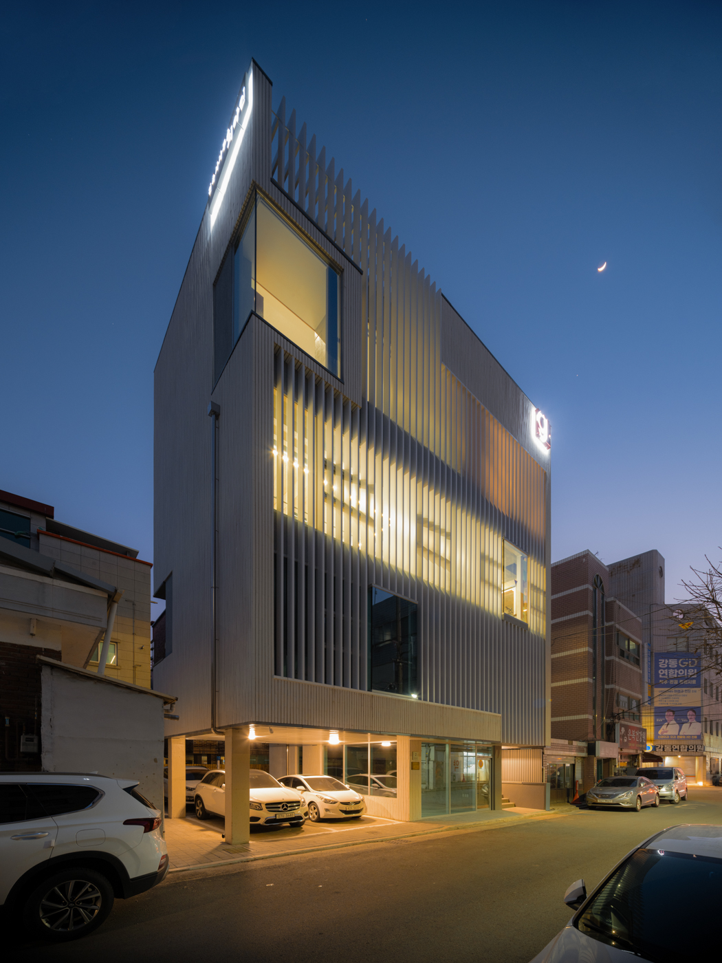 대지는 대구 반야월의 구도심에 위치한다. 이 지역은 한때 2차 산업의 호황으로 양적 개발이 있었으나 현재는 공항 인근 고도 제한과 난개발, 고령화와 인구 유입 감소 등의 문제로 수십년 동안 도시적 성장이 더딘 지역 중의 하나이다. 폭 8m의 작은 가로변은 낙후된 상가주택, 다가구주택, 근생 등이 무질서하게 혼재되어 오랫동안 피로가 쌓이면서 지치고 무기력해진 지역이었다. 이렇게 생명력이 약해진 가로 분위기에 작은 활기와 새로운 질서를 불어넣을 수 있는 건축적 해결책을 우선적으로 고민하면서 프로젝트를 진행하였다. 복잡하거나 난해한 매스의 조합보다는 차분한 질서를 잡을 수 있는 단순하고 명쾌한 형태와 틀이 필요했고, 그 질서의 틀 안에 지역 주민들의 흥미를 이끌어 내면서 건축물의 개성을 표출하는 요소가 필요하다고 판단했다.