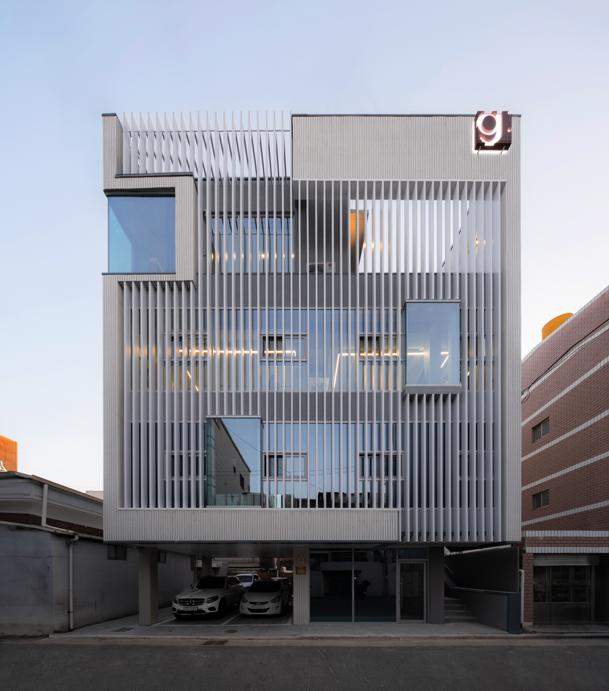 건물의 정면은 북측도로를 향해있으나 남측창은 일조량이 부족하지 않도록 충분한 면적을 확보하였으며 동, 서측면은 이사와 환기 기능 외에는 개구부를 최소화하였다. 주용도인 사무소로서 균일한 채광을 위해 북측면은 전체 면을 창으로 계획하였고 그 위에 금속 루버를 설치하여 업무상 프라이버시와 더불어 주변 주택들과의 과한 시각적 간섭을 피할 수 있게 하였다. 이는 건물의 정면성을 강조하면서 지나가는 보행자로 하여금 관심을 유발하며 건물의 독특한 이미지를 각인시켜주는 역할을 하고 있다. 또한 하루중 시간의 경과에 따른 빛의 양과 루버를 통해 투과되는 빛의 질감에 따라 다양한 내·외부 경관을 연출하고 있다. 야간에도 내부 조명이 루버를 통해 부드럽게 필터링되면서 가로경관을 풍요롭게 한다.