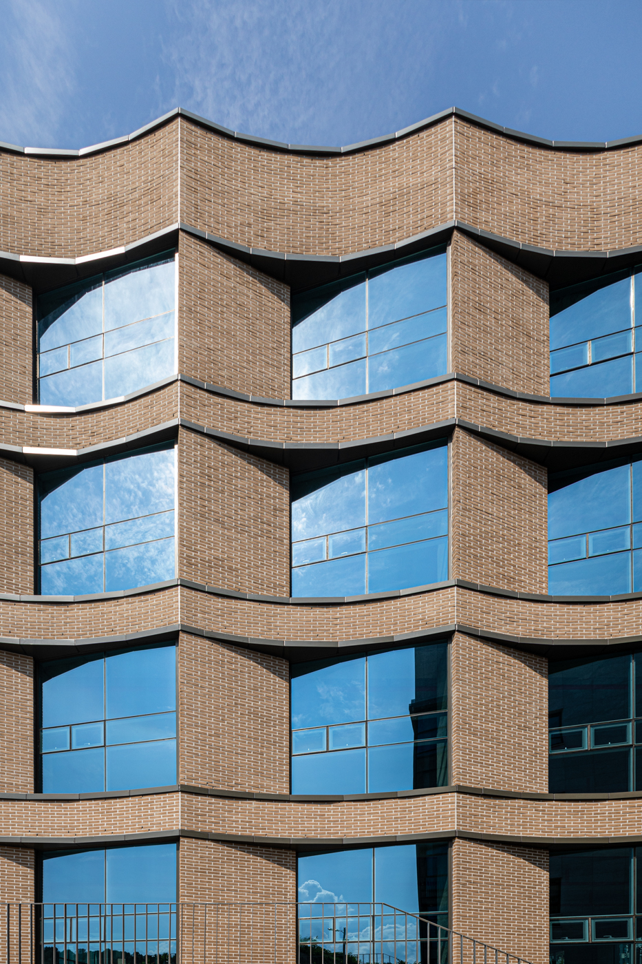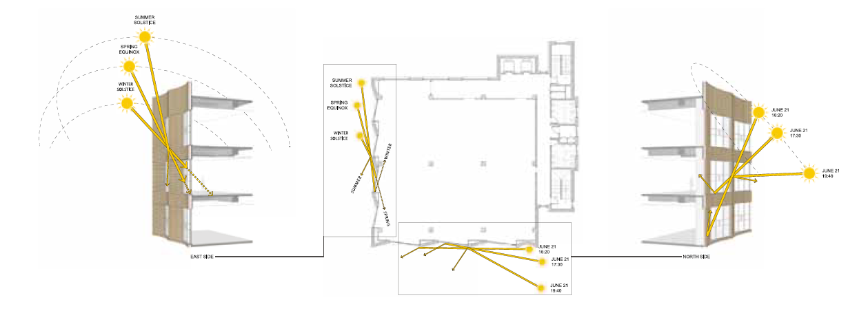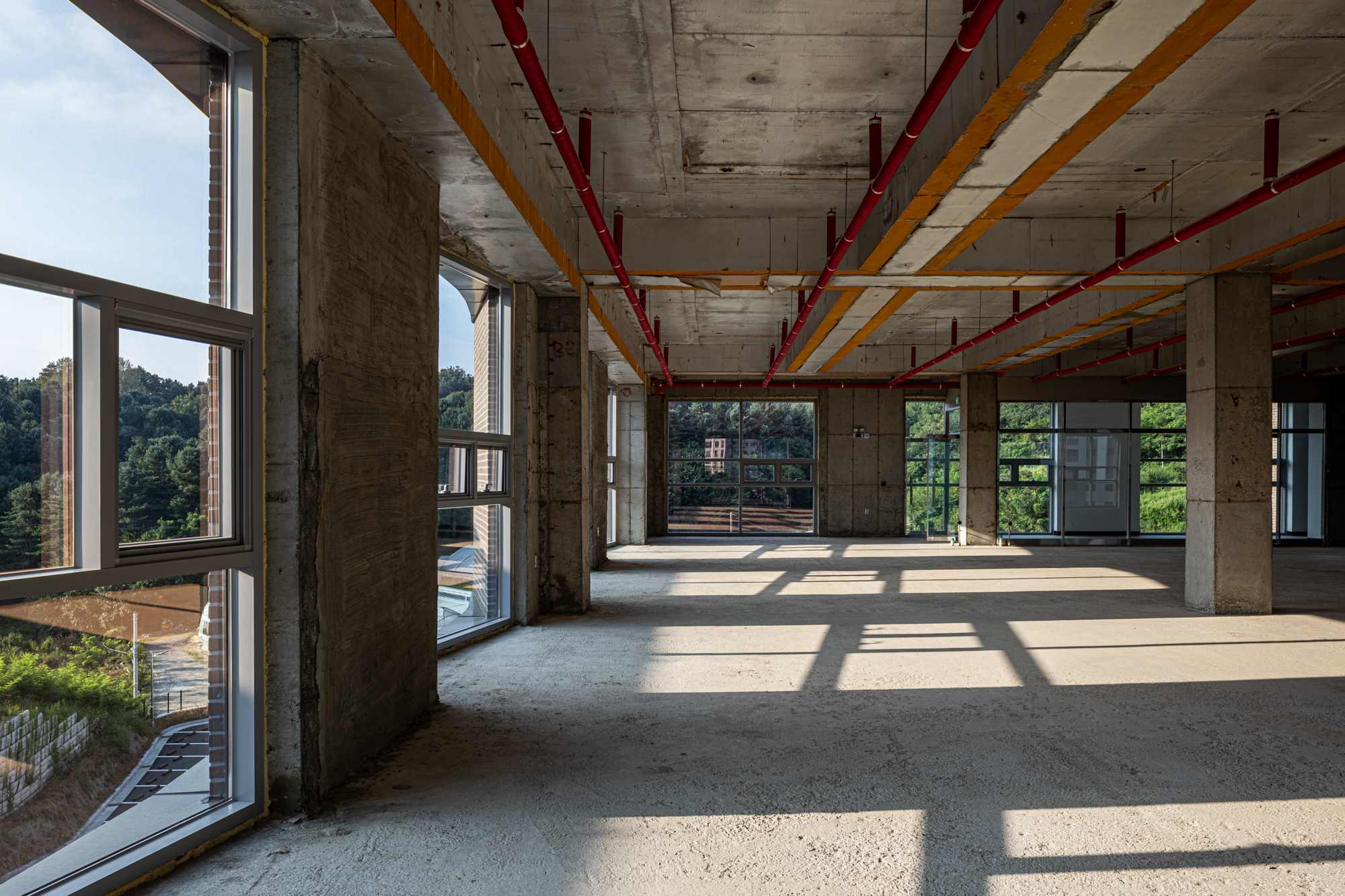 마지막으로 이 모든 과정에서 지속적으로 자연채광과 에너지 효율을 고려하였다. 채광 시뮬레이션을 통해 입체적인 입면의 구성을 최적화하고, 이를 통해 연간 직사광량을 최대 21% 감소시켜 냉방 부하를 줄였다. 또한 자연 채광의 경우, 계절의 특성을 고려하여 여름철에는 눈부심을 줄이고 겨울철에는 자연광을 이용하여 실내 조도를 높일 수 있도록 하였다. 입체적인 입면은 외부에서는 건물의 인상을 만들고, 내부에서는 밖을 더 적극적으로 조망할 수 있게 만드는 한편, 환경과 공간을 조율하는 역할도 한다. 내외부를 엮어내는 호와 사선의 작동으로 이 근린생활시설 건물이 오래도록 건강한 생명력을 유지할 수 있기를 바란다.