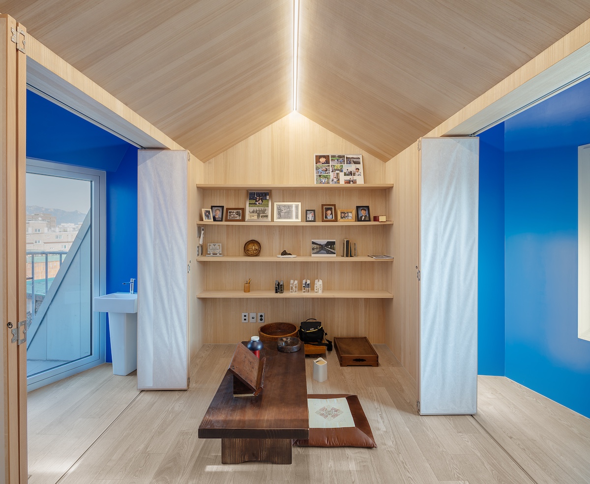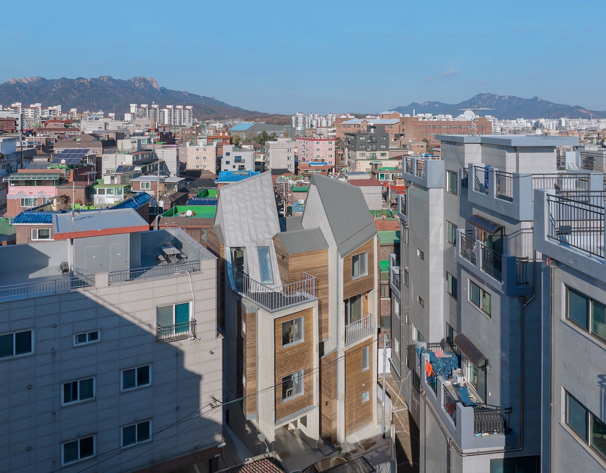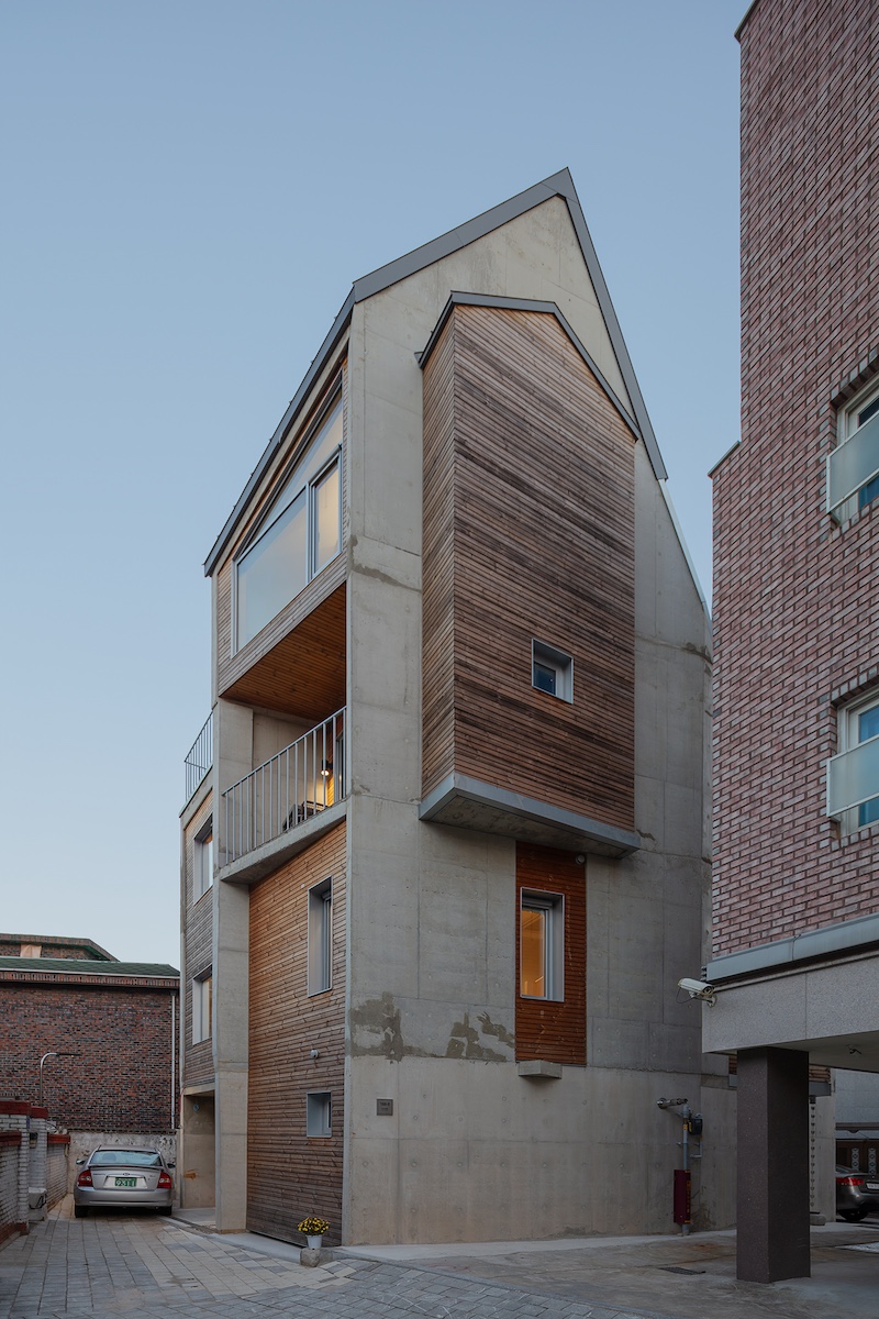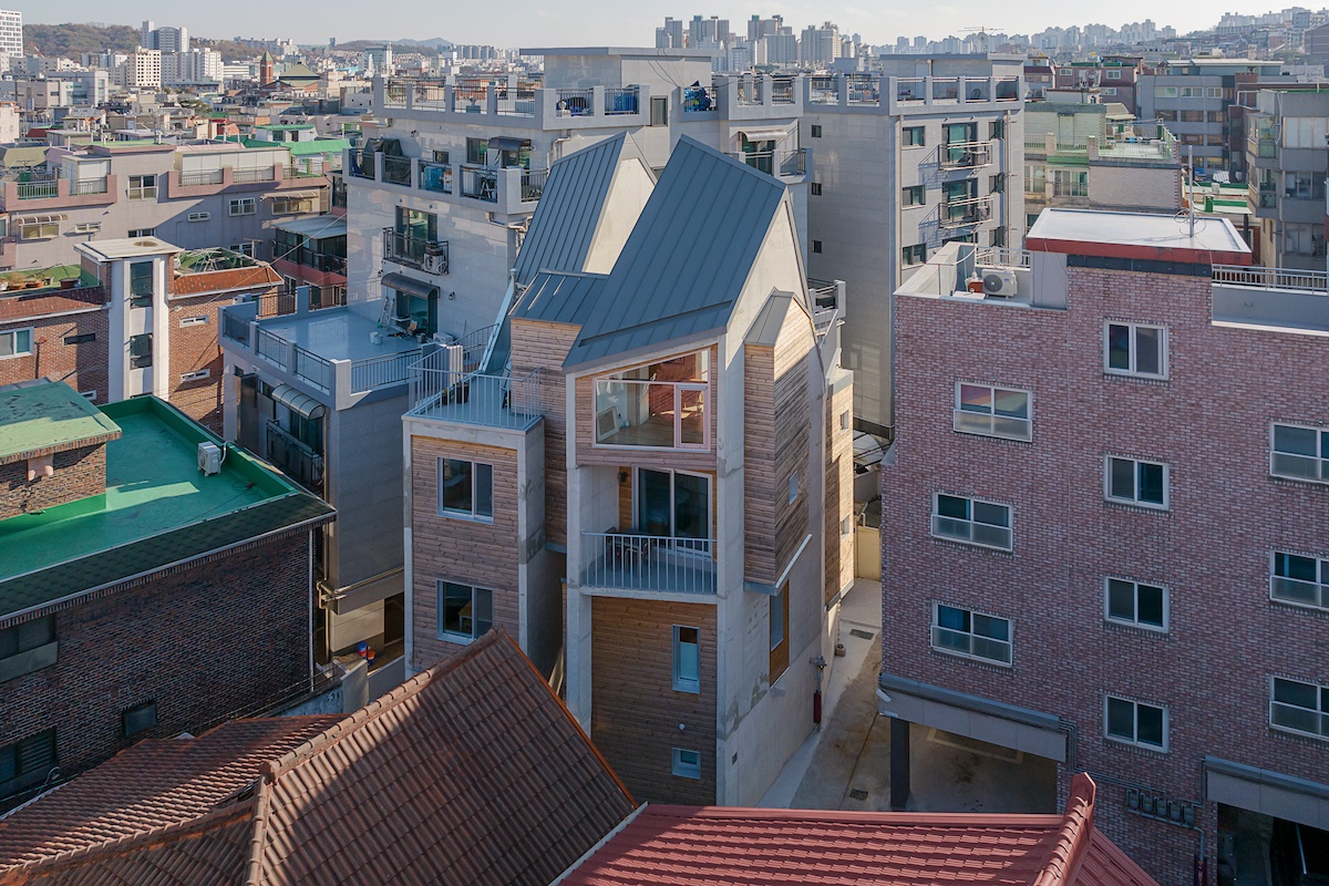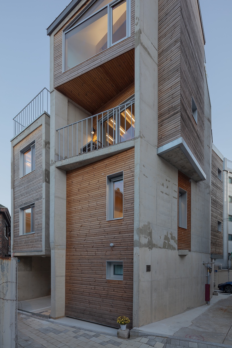 기존의 아파트 방식의 건설과 도시 주택 구성 관행에서 벗어나, 수직으로 같은 유닛이 적층되는 방식과는 다른 수직 구성을 도입하는 것을 목표했다. 건축가는 건축 법규를 창의적으로 재해석하고 작업자들의 장인 정신을 최적화하여 같이 사는 주거의 수직 통합 뿐만 아니라 목재와 콘크리트의 조합에서 나오는 예기치 않은 우연적 상황에 주목했다. 각 동의 상호 침투로 인한 도시 주택의 공간적 조직을 재정의하는 한편, 두 동이 완전히 분리됐지만 긴밀하게 통합된 연결을 이루도록 했다.여기서 ‘통합’과 ‘독립’이라는 용어가 모순된 것처럼 들릴 수 있지만, 한국의 전통적인 ‘방’을 목재 큐브와 박공지붕으로 전환한 가장 단순한 유형을 채택하고, 콘크리트가 지상 인프라 역할을 하면서 개방형 뼈대로 이를 지지하는 철근 콘크리트와 혼합된 목조 주택의 다른 형식을 선보였다.