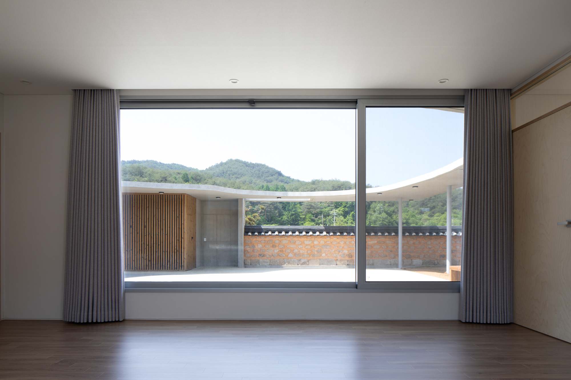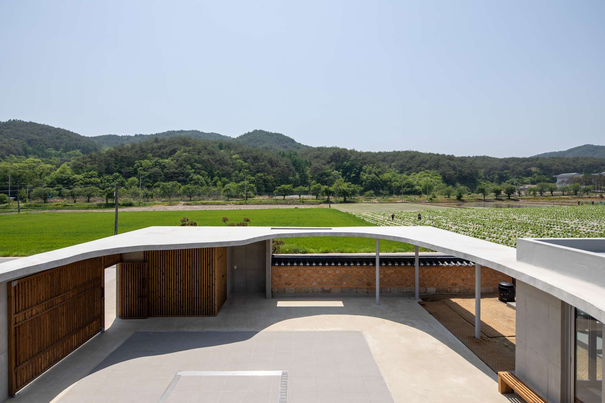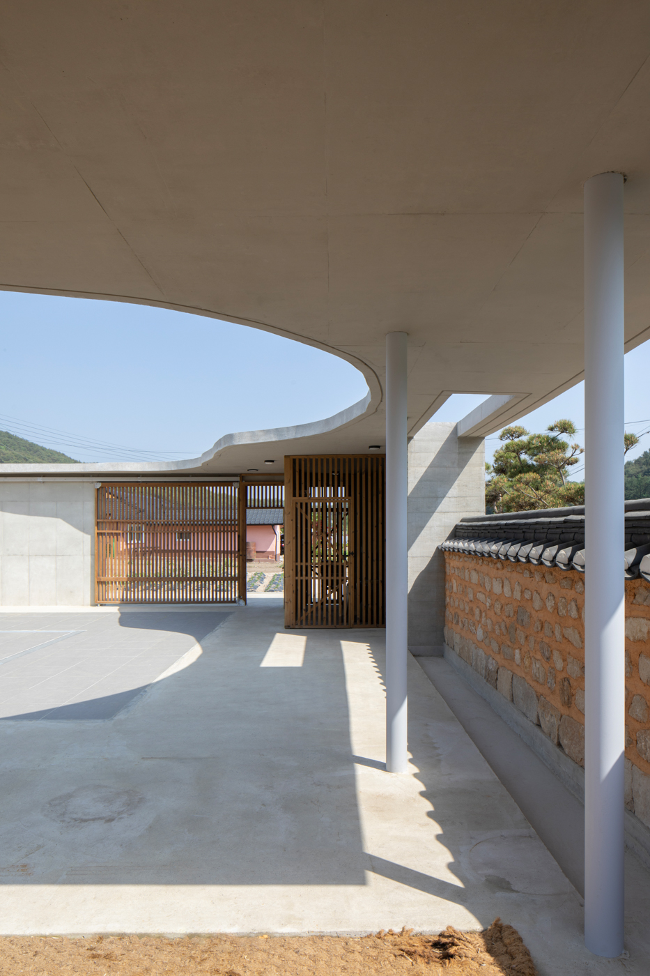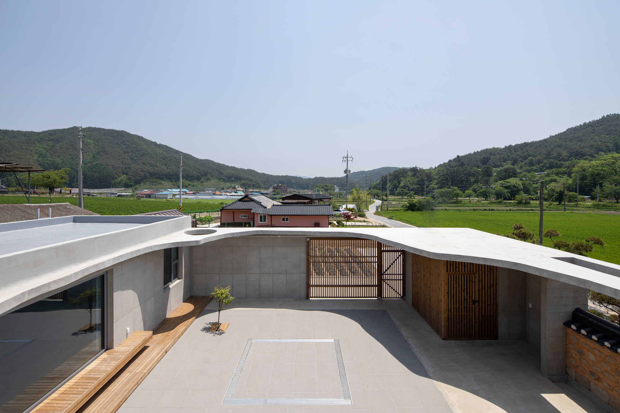 마당을 에워싸고 있는 지붕은 환경과의 상호작용을 통해 시간과 공간의 움직임을 드러내어 느끼게 만든다. 지붕은 주변 마을을 구성하고 있는 한옥에서 찾을 수 있는 마당과 마루 그리고 처마와 연관된 개인적인 경험과 감정을 지속하게 하는 공간이 된다. 마당에서 바라본 하늘은 가위로 오려낸 것 같은 지붕을 따라 즉흥적이며 자유분방하게 움직인다. 지붕과 하늘이 만나며 그려진 선은 시간에 따라 변화하는 장소의 고유한 풍경을 드러내는 장치가 된다. 자연과 시간의 변화에 대해 지각하고 마당의 앉아서 응시하거나 걸어 다니는 감각적 경험과 운동성은 오랜 시간 한 장소에서 머물러 살아가는 정주적 시간 속에서 현재의 ‘나’를 지각하며 생동적으로 들어내고자 하는 것에 있다.